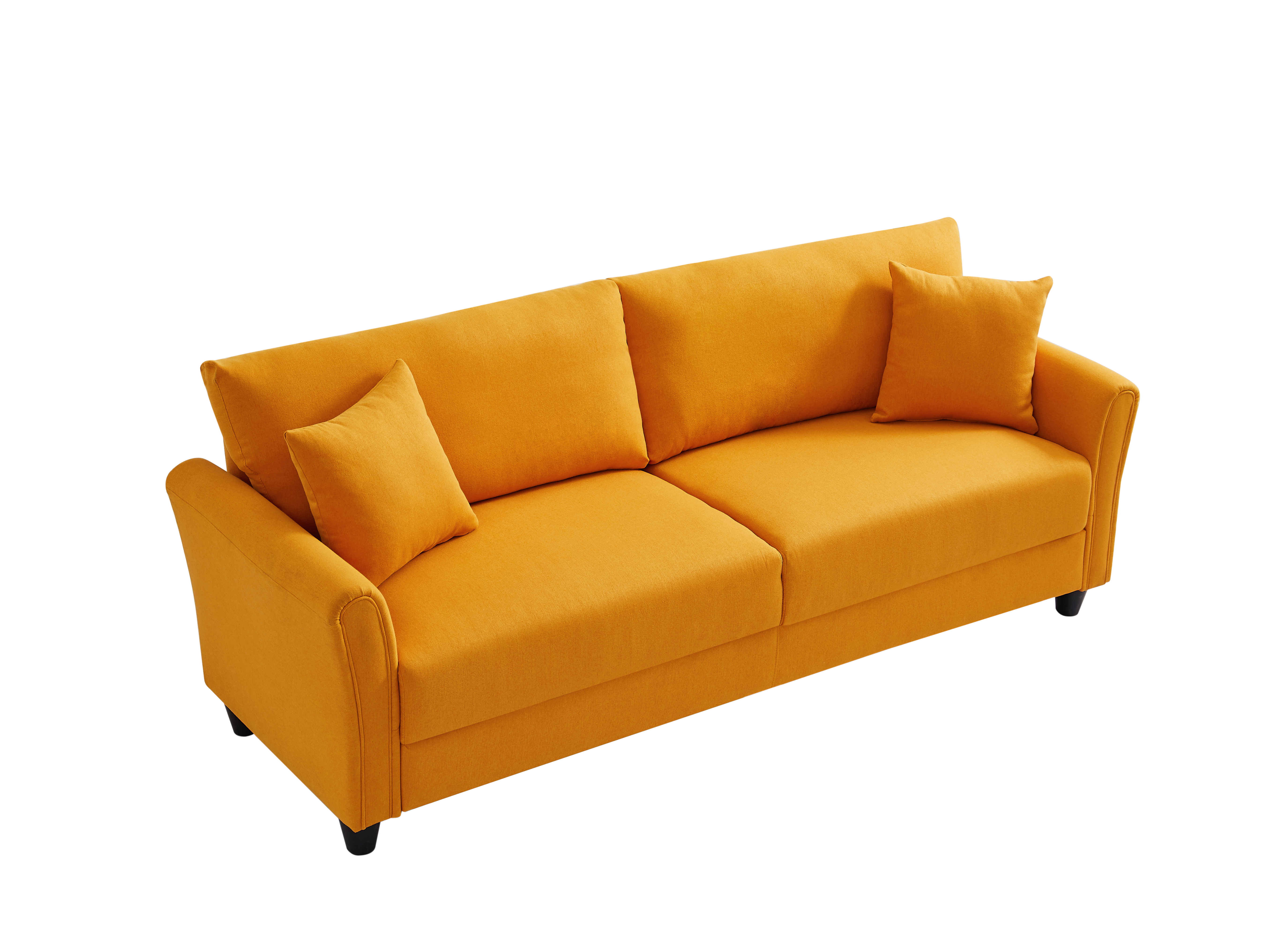 A marriage of comfort and contemporary allure, this eye-catching sofa is sure to lend style to your living room look.Founded atop four round feet,its clean-lined frame is crafted from Eucalyptus and is covered in velvet upholstery. While a solid hue makes it a stylish stage for plush patterned pillows and faux fur blankets, it's equally elegant all on its thanks to square arms, tufted seat & back cushion.Material:Fabric: 100%polyesterWooden frame: EucalyptusFeet: plastic feetPacking size: 72.44’’*25.78’’*16.91’’ Gross weight: 112.00 poundsWeight bearing: 500lbsA bag
