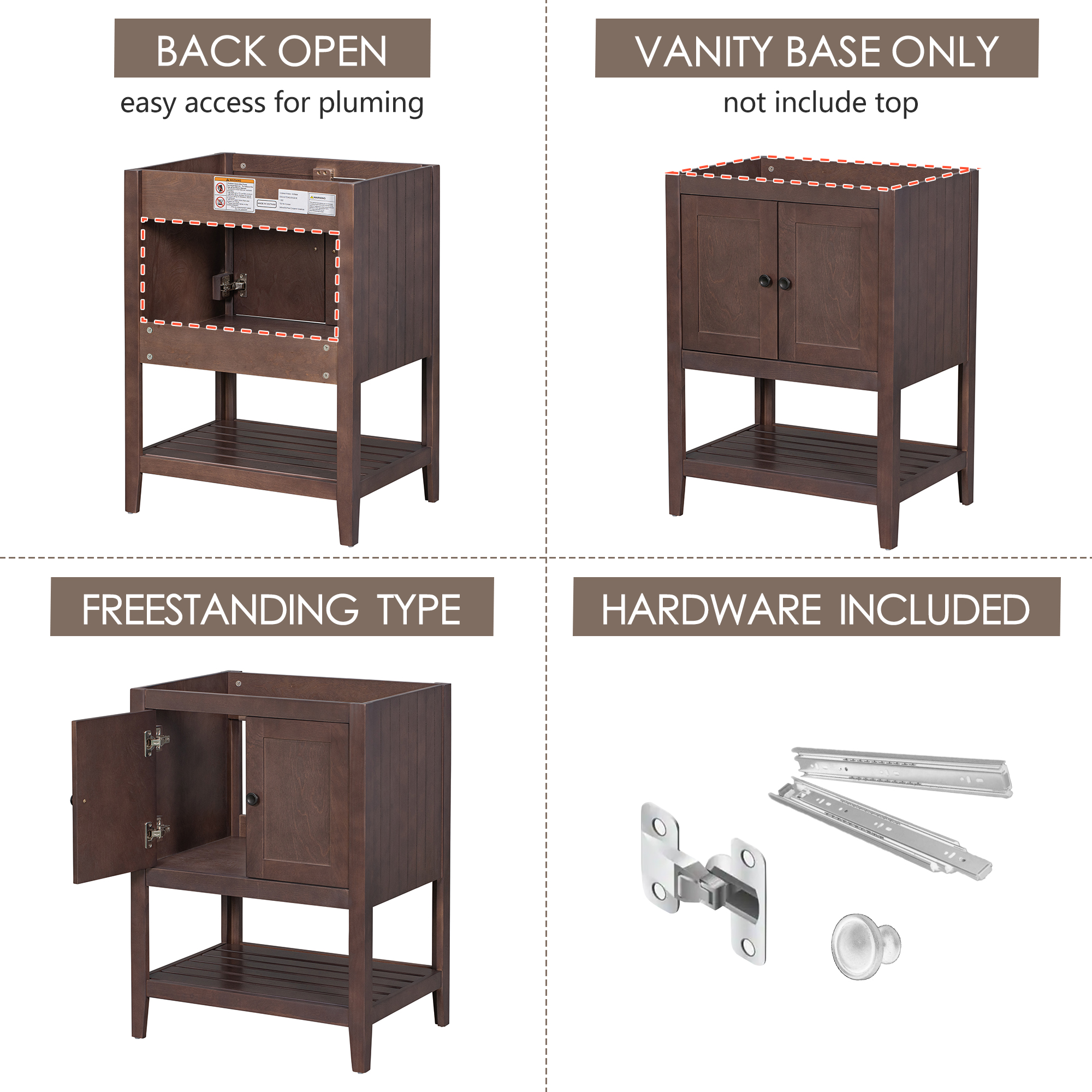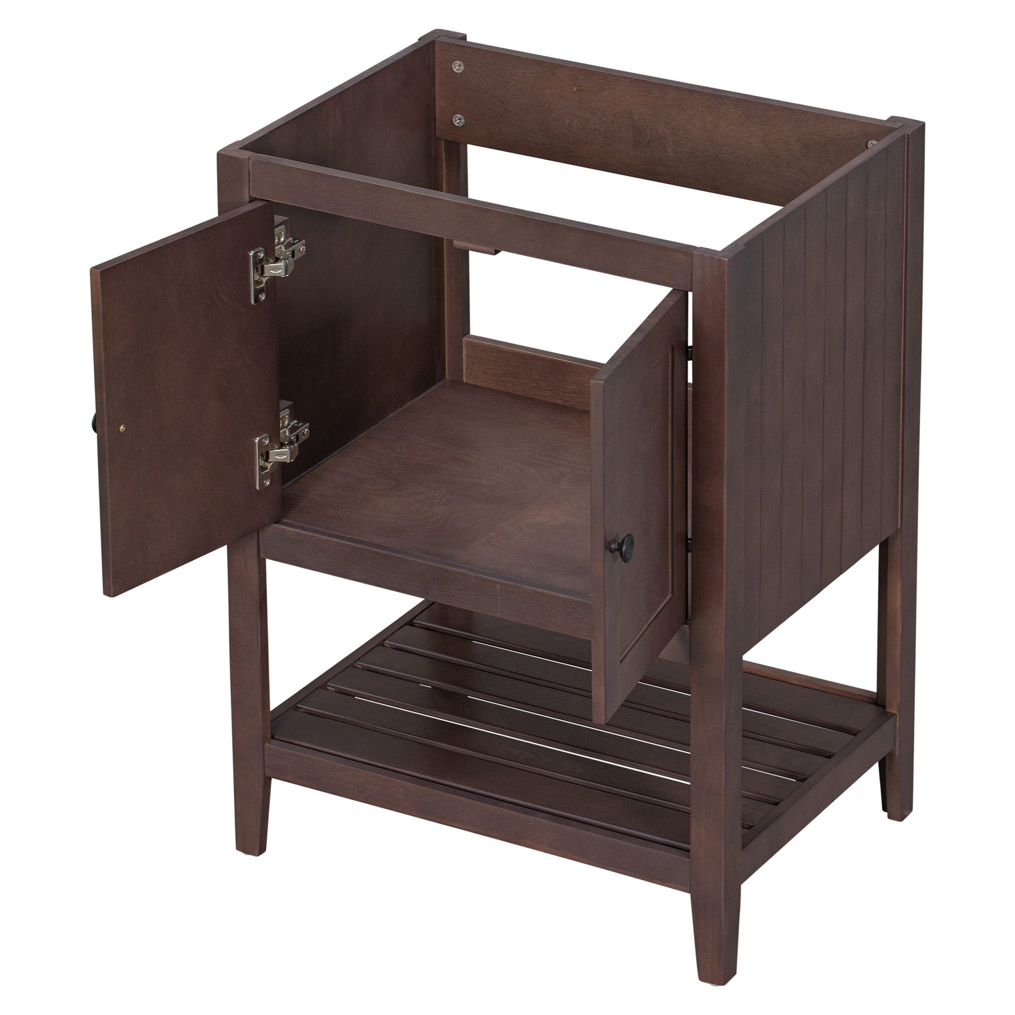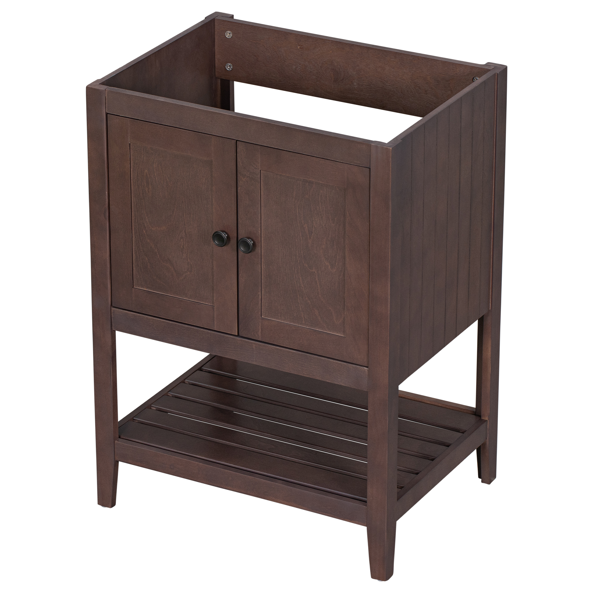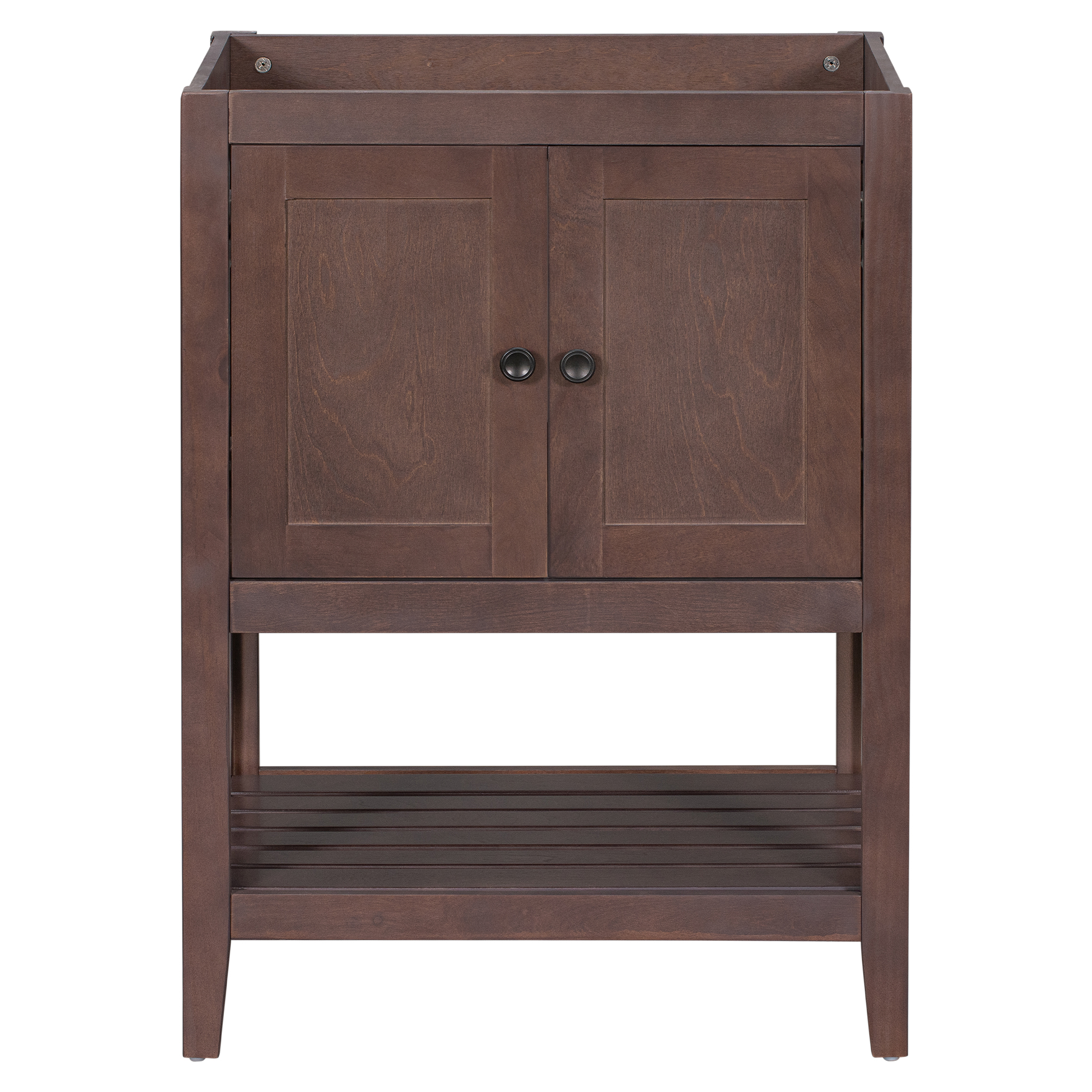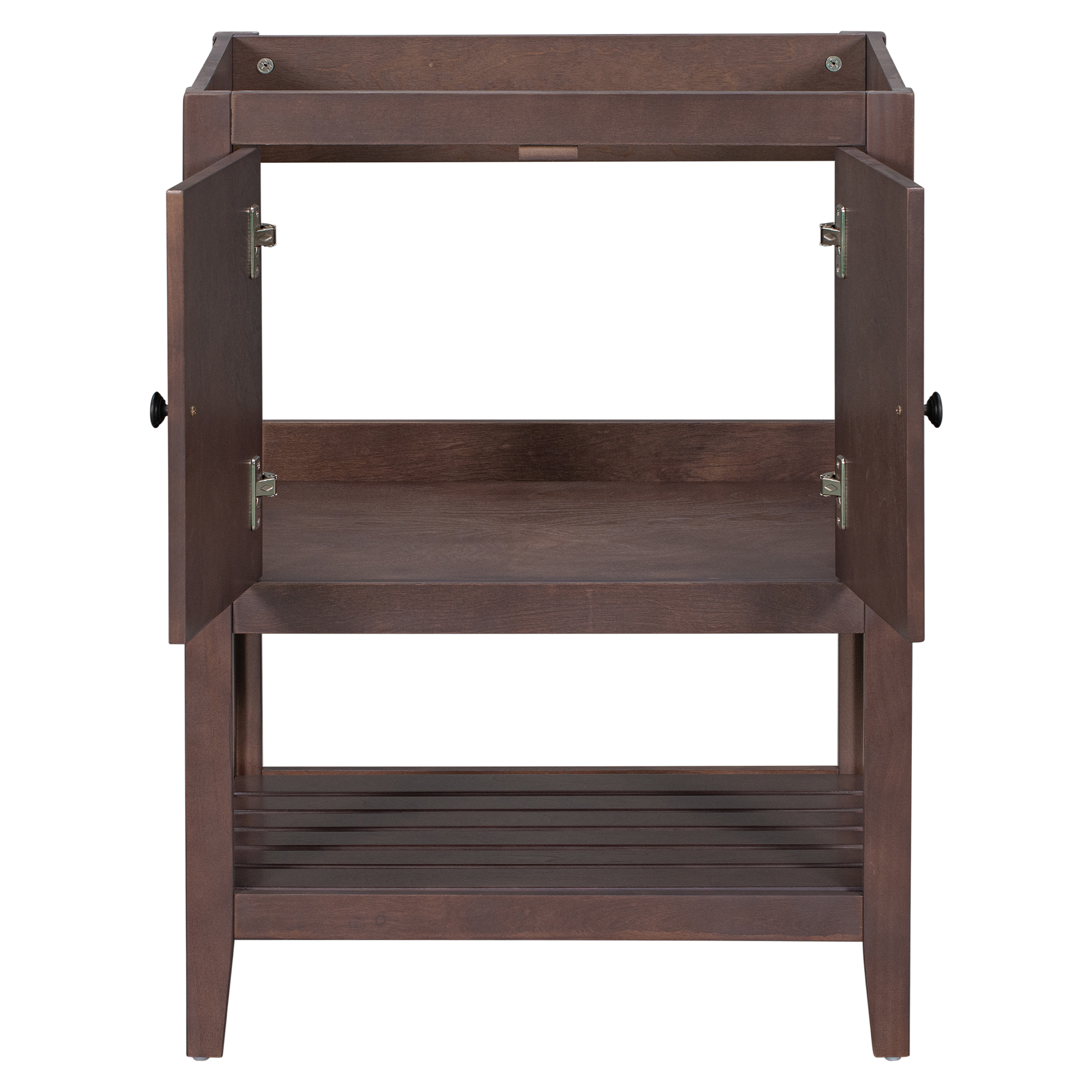 24" Bathroom Vanity Base Only, Solid Wood Frame, Bathroom Storage Cabinet with Doors and Open Shelf, Brown