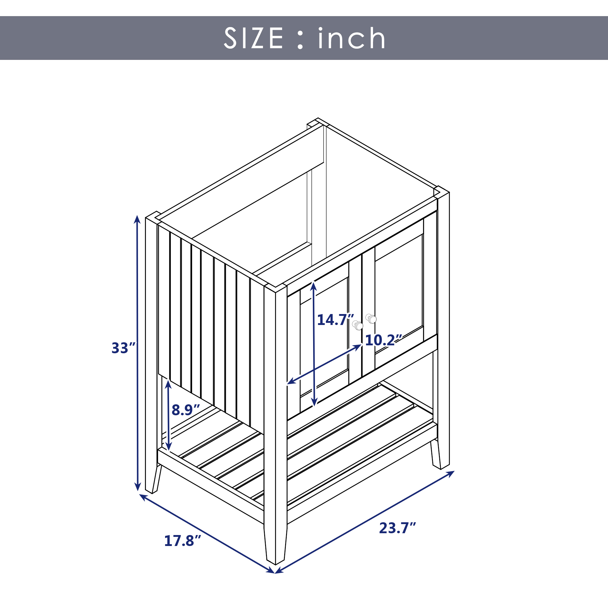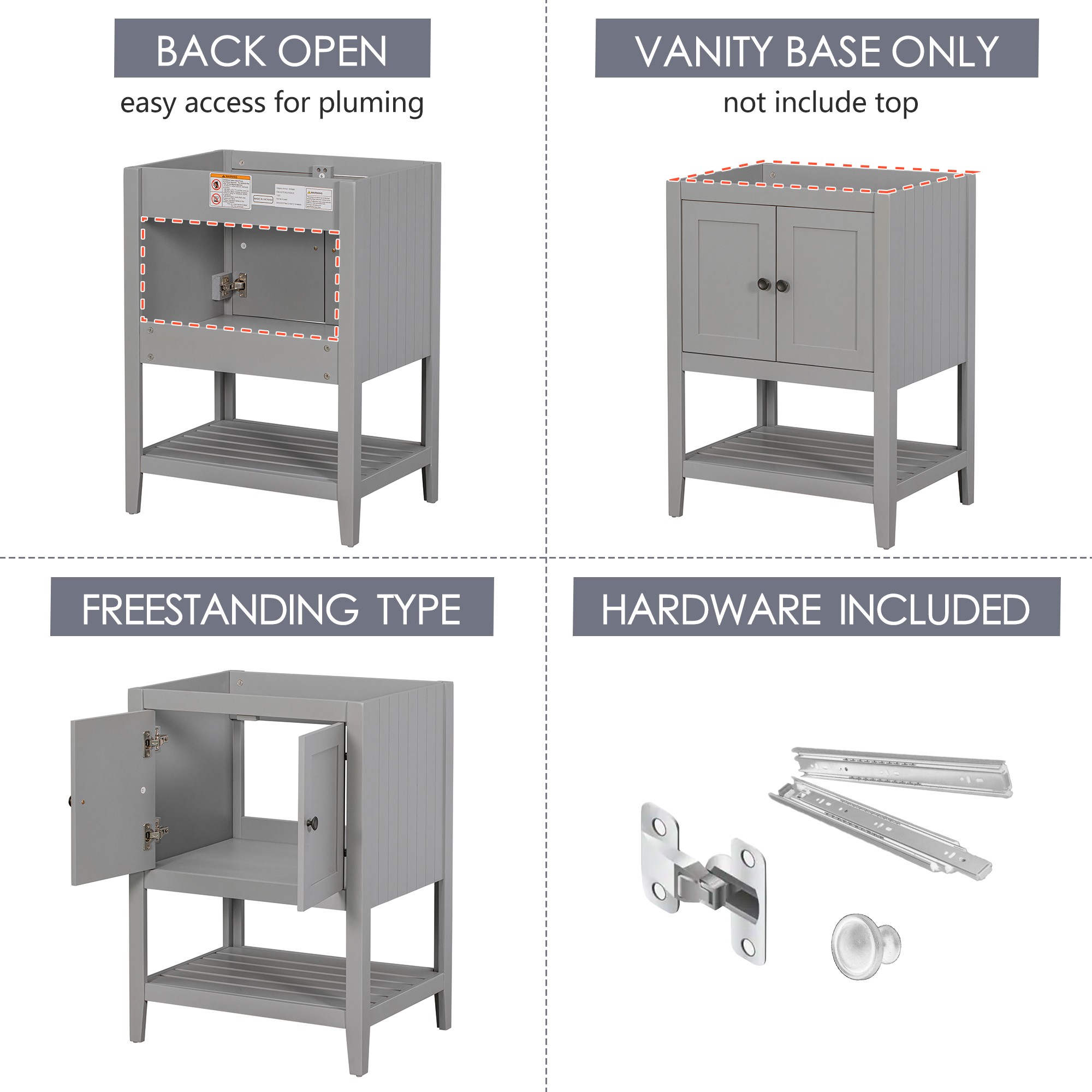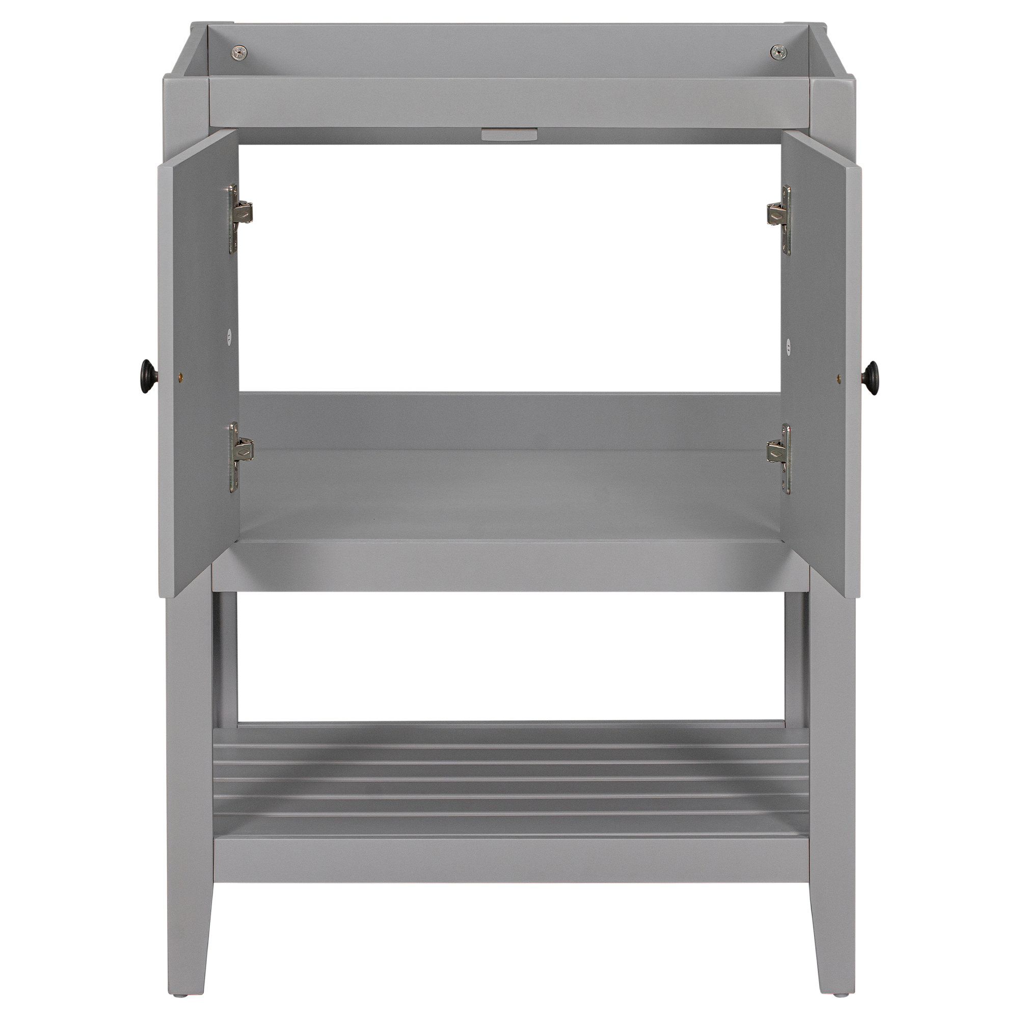 24" Bathroom Vanity Base Only, Solid Wood Frame, Bathroom Storage Cabinet with Doors and Open Shelf, Grey