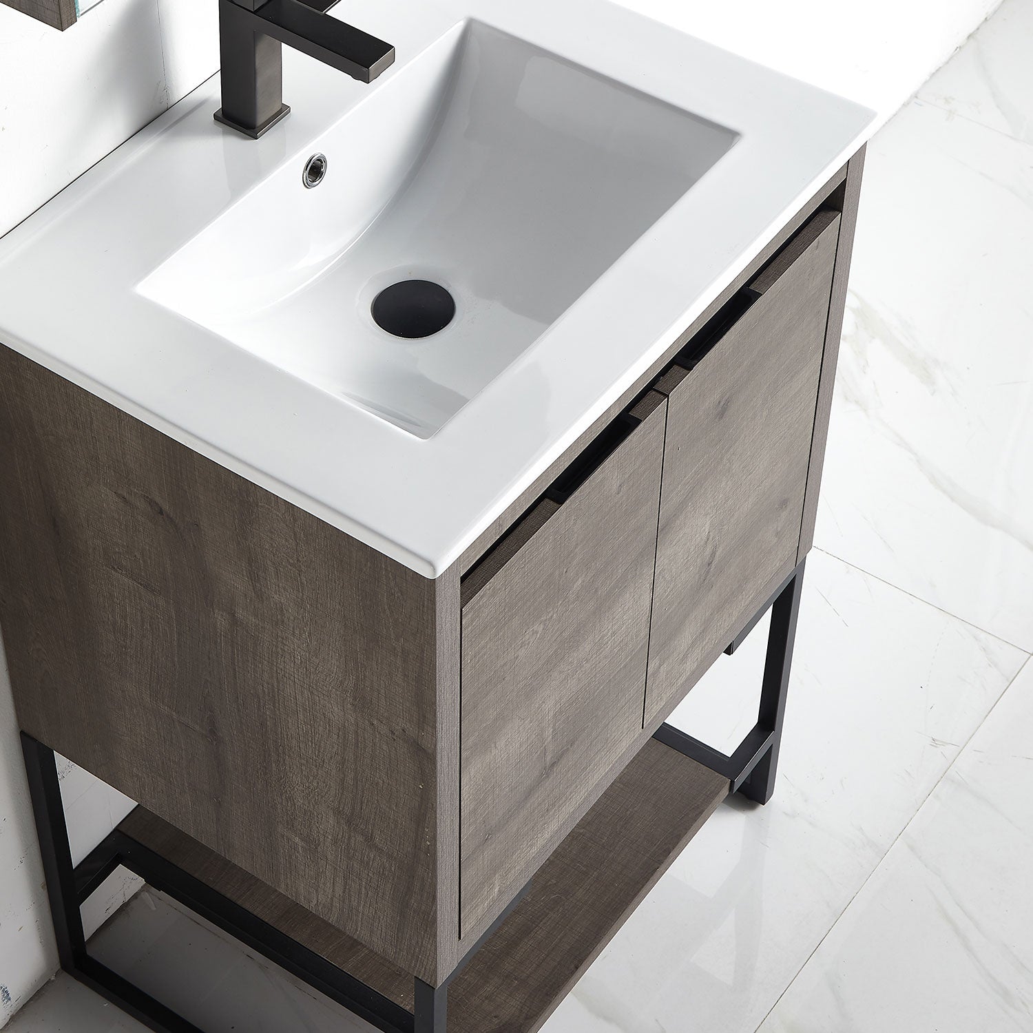 Small depth, the use of integral ceramic basin allows the whole to save space while having a larger use of sinks so that your decoration is more flexible; The use of solid wood and plywood materials makes the product more durable; the production process of high-gloss paint makes the surface form a waterproof layer, and the surface that does not turn yellow allows you to take care of it better; The drawer and cabinet door is equipped with a hinge, which makes daily use more convenient and quieter. Hinges have been tested for millions of times to ensure the service life of the cabinet door and drawer; Simple installation steps, the bathroom cabinet is shipped without installation, which will save you more time.
