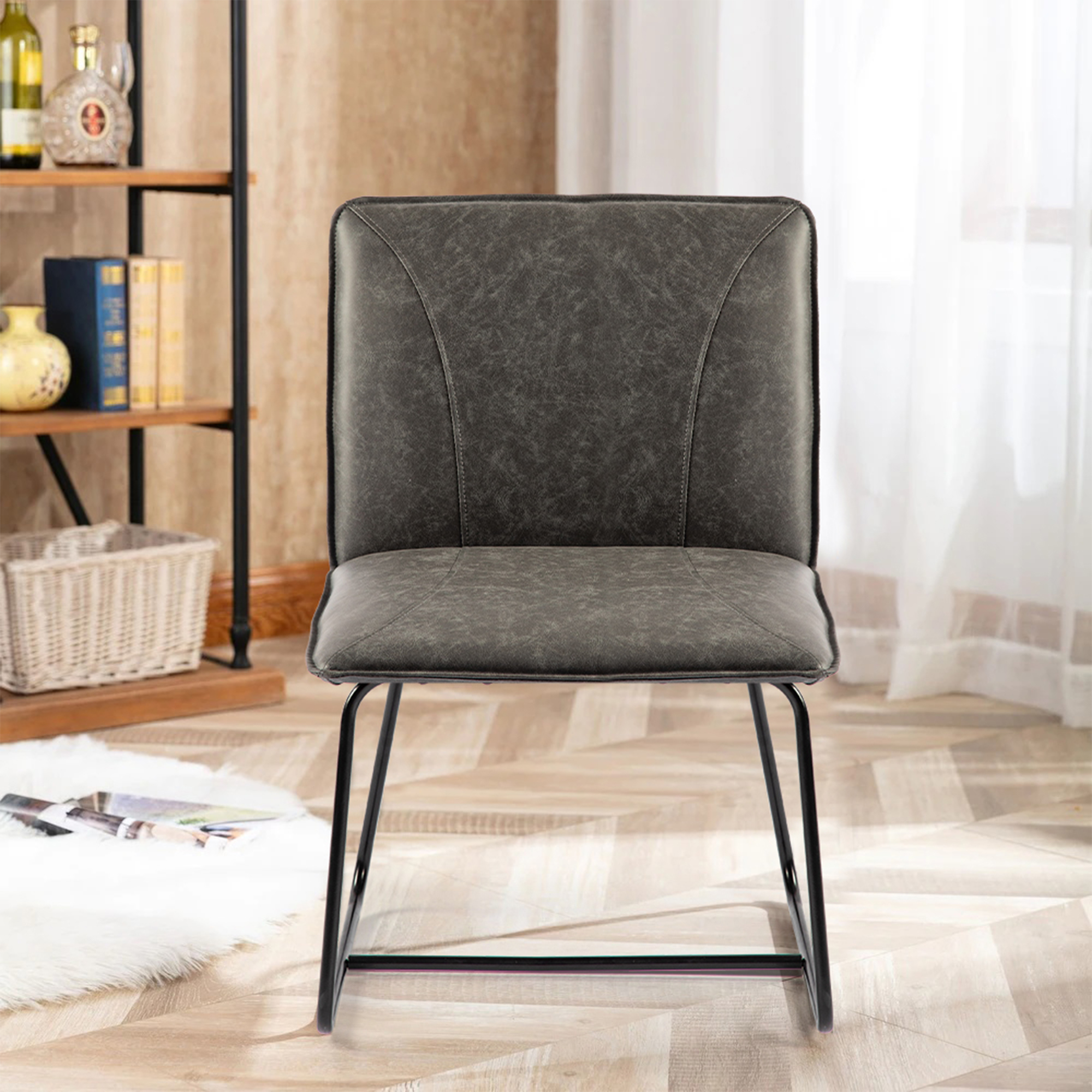 24" Wide Modern Industrial Design Faux Leather Counter Stool with Metal Legs For Dining Room