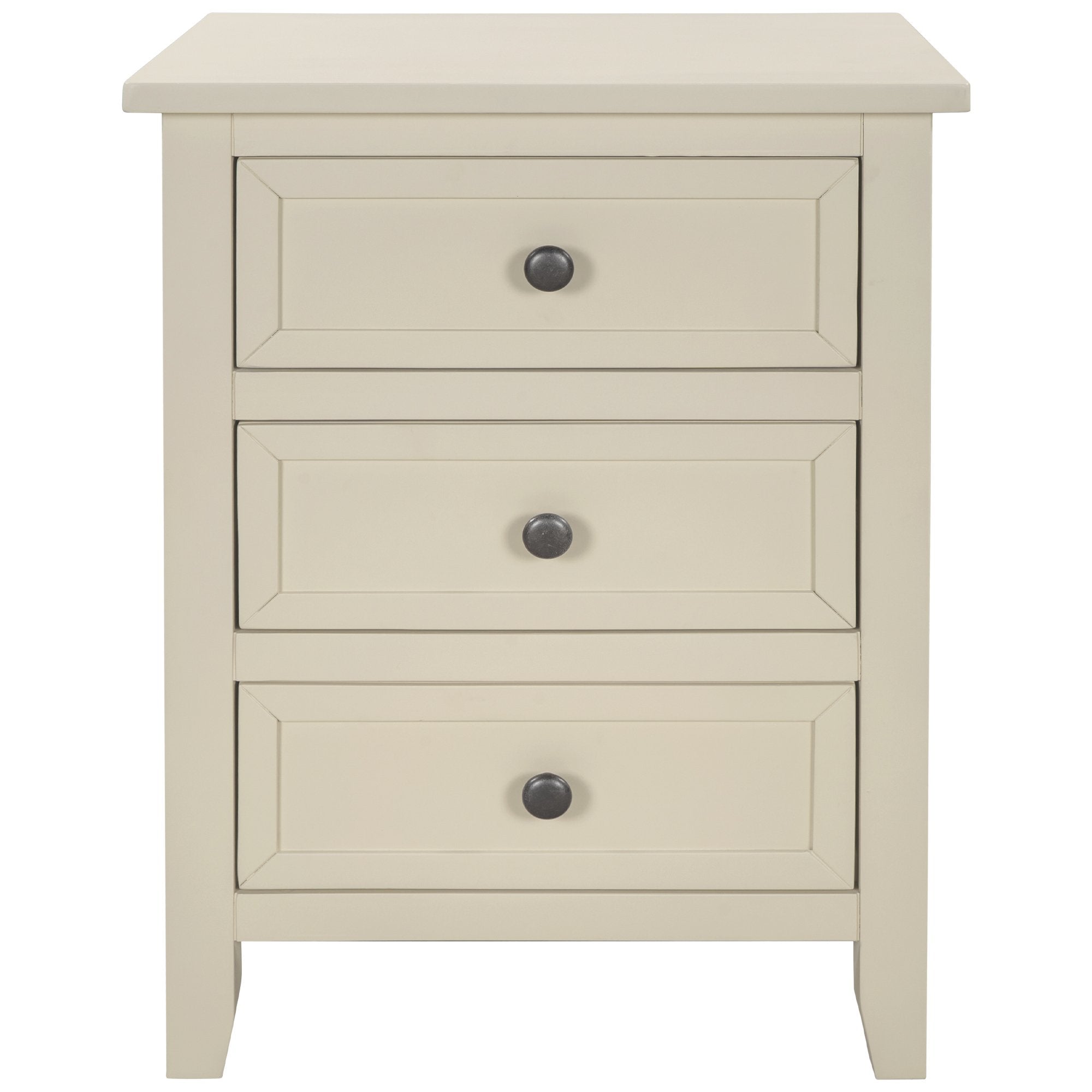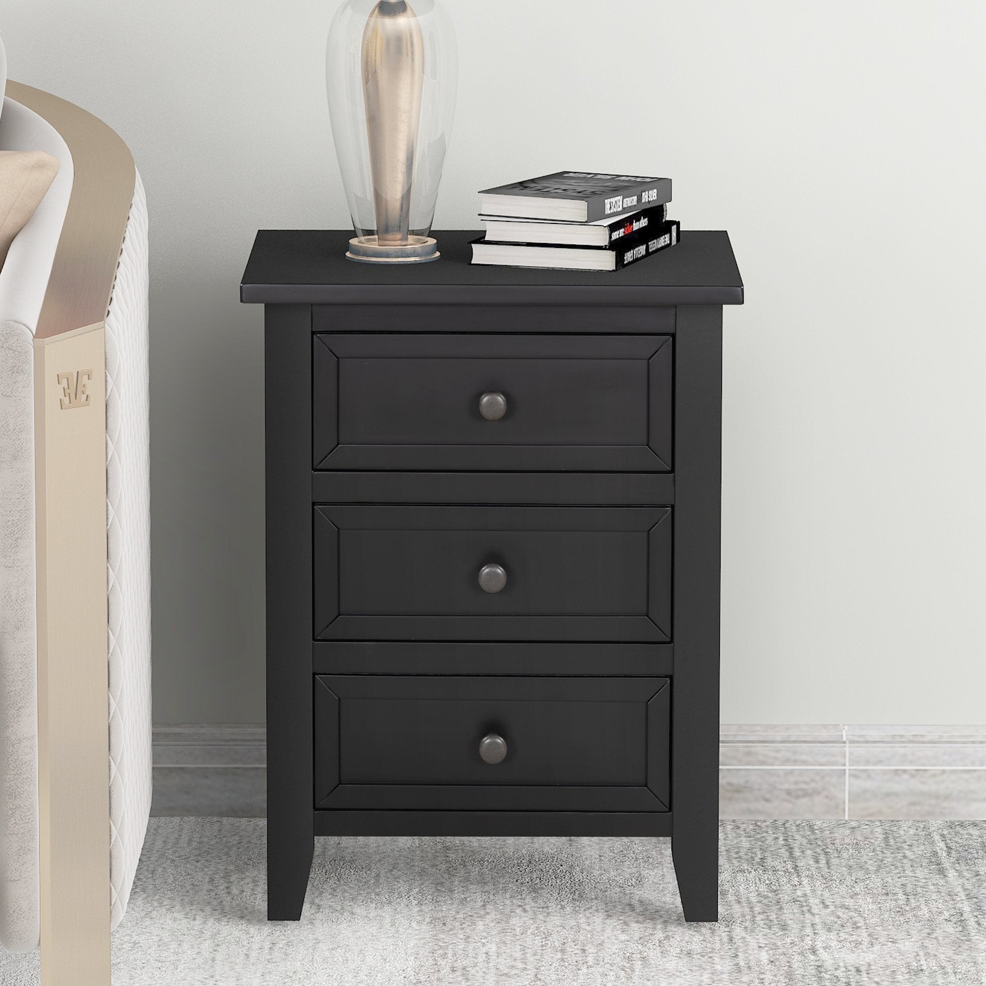 This wooden side table is both modern and functional. This space-saving table gives you three spacious drawers, all perfect for storing the odds and ends of your life out of sight. Circular metal drawer pulls add little mid-century glam touches. Use the sturdy MDF top to pile on your books, alarm clock, lamp and whatever else you like; It's built with a strong wood frame for durability and stability.