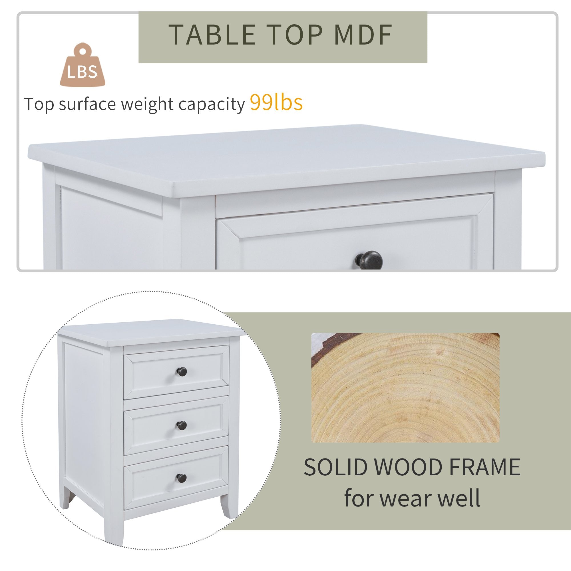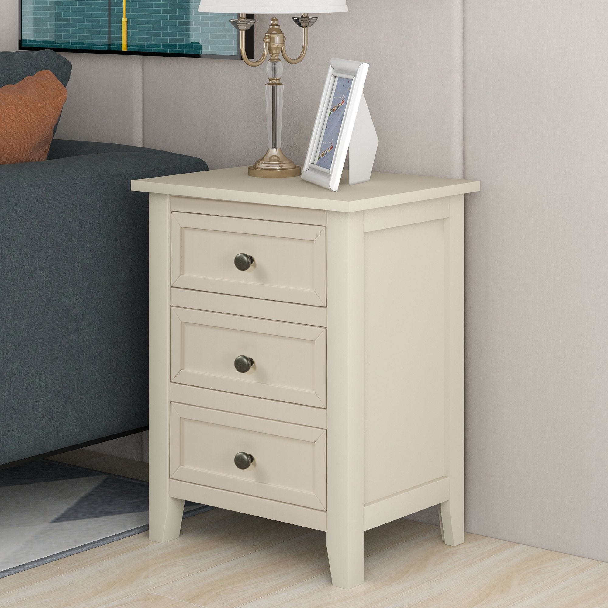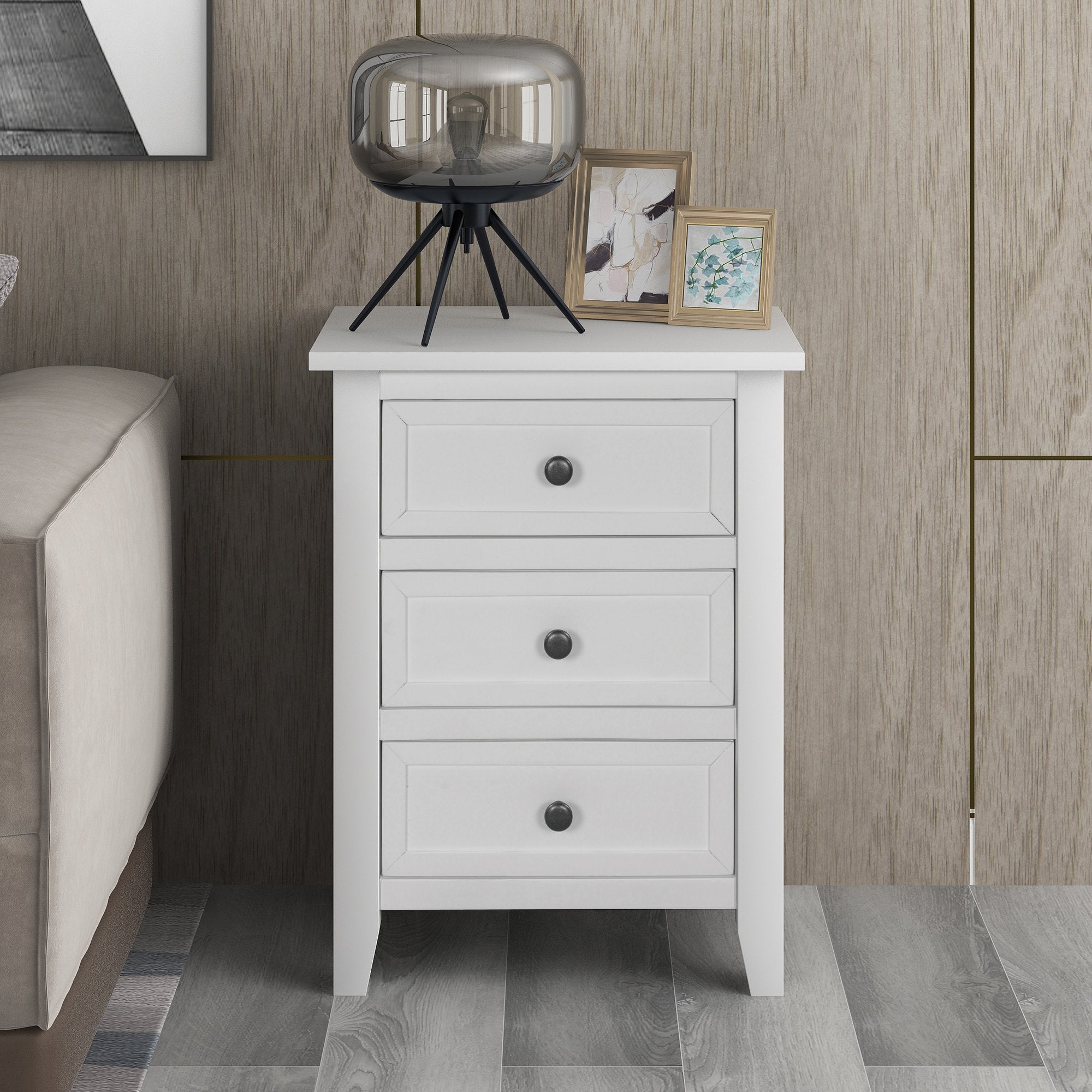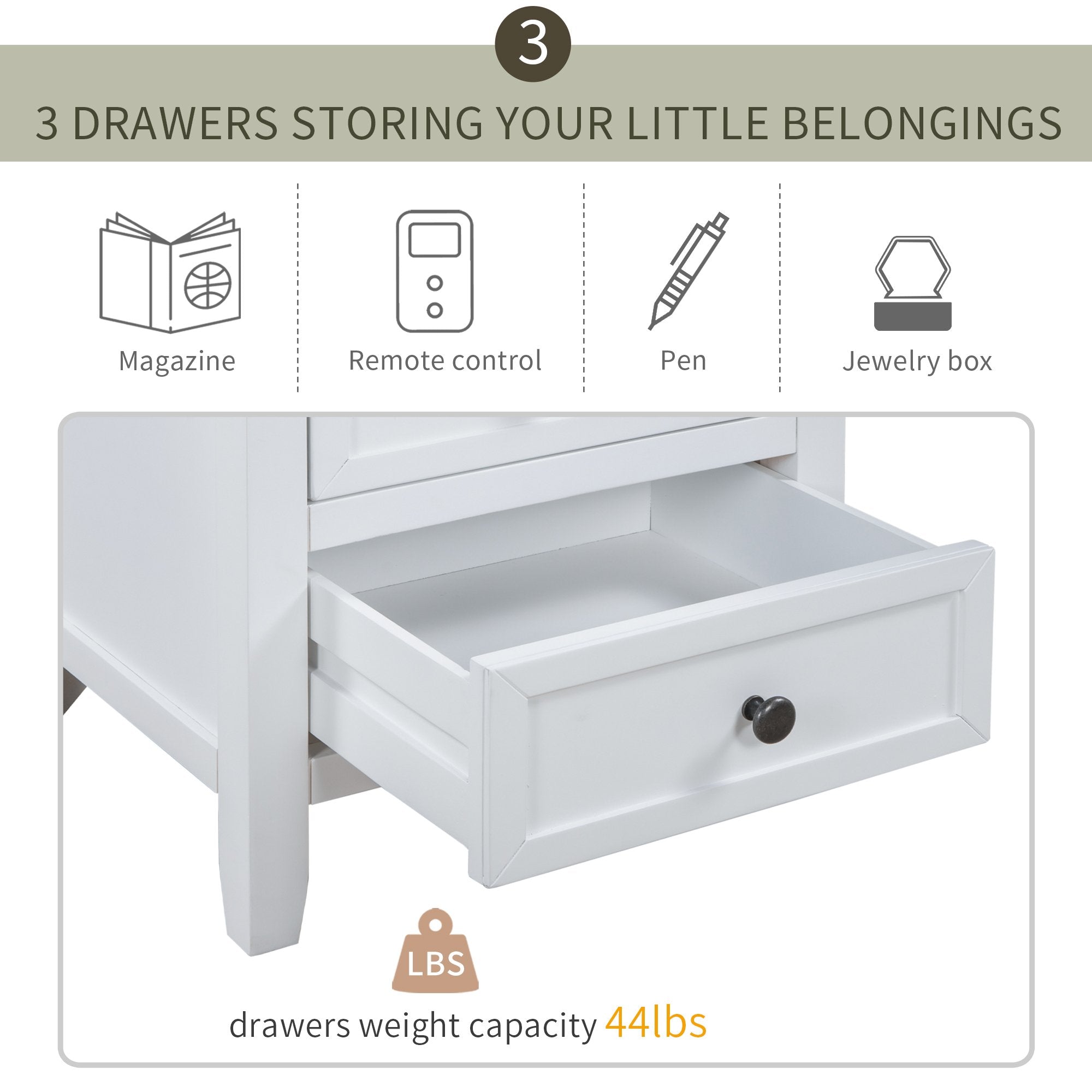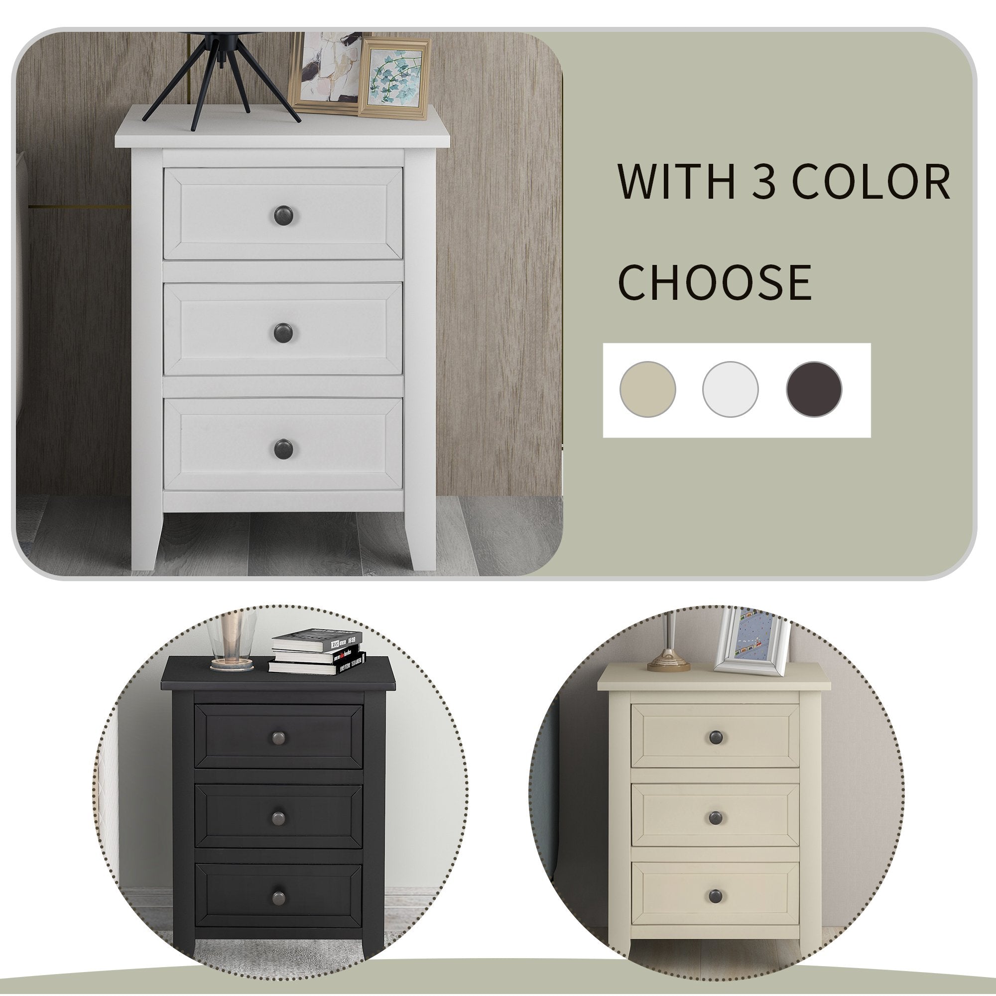 3-Drawer End Table Storage Wood Cabinet, Solid wood frame