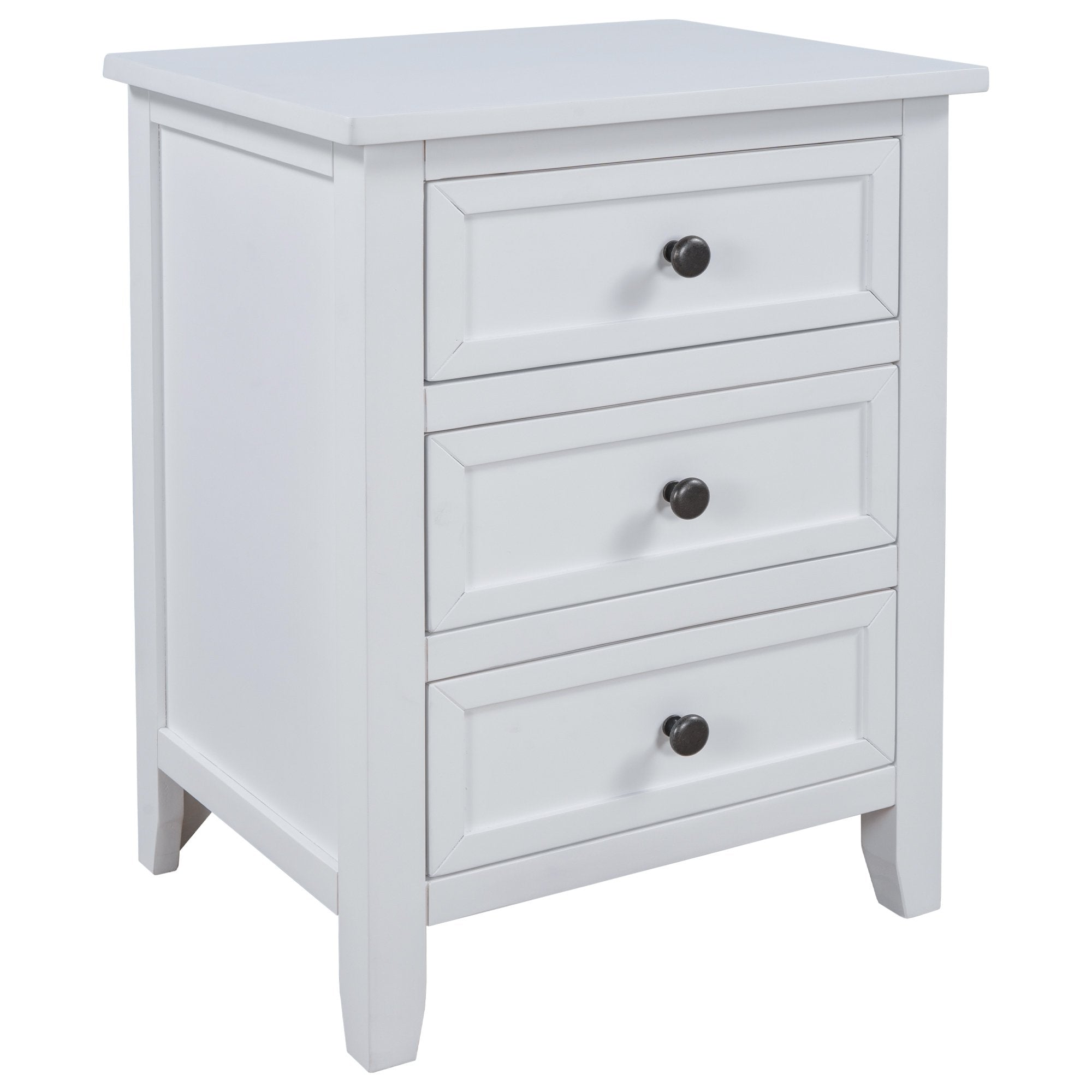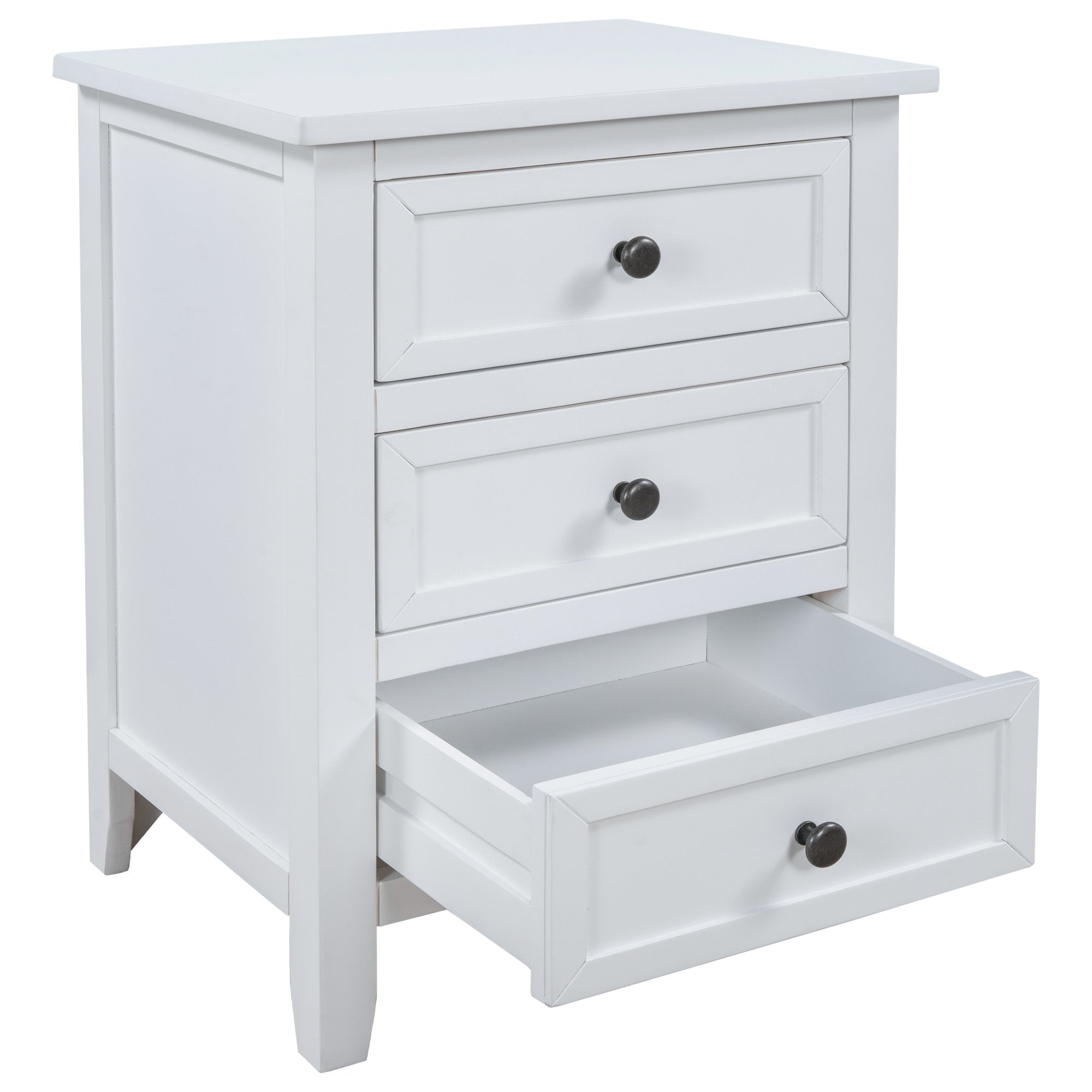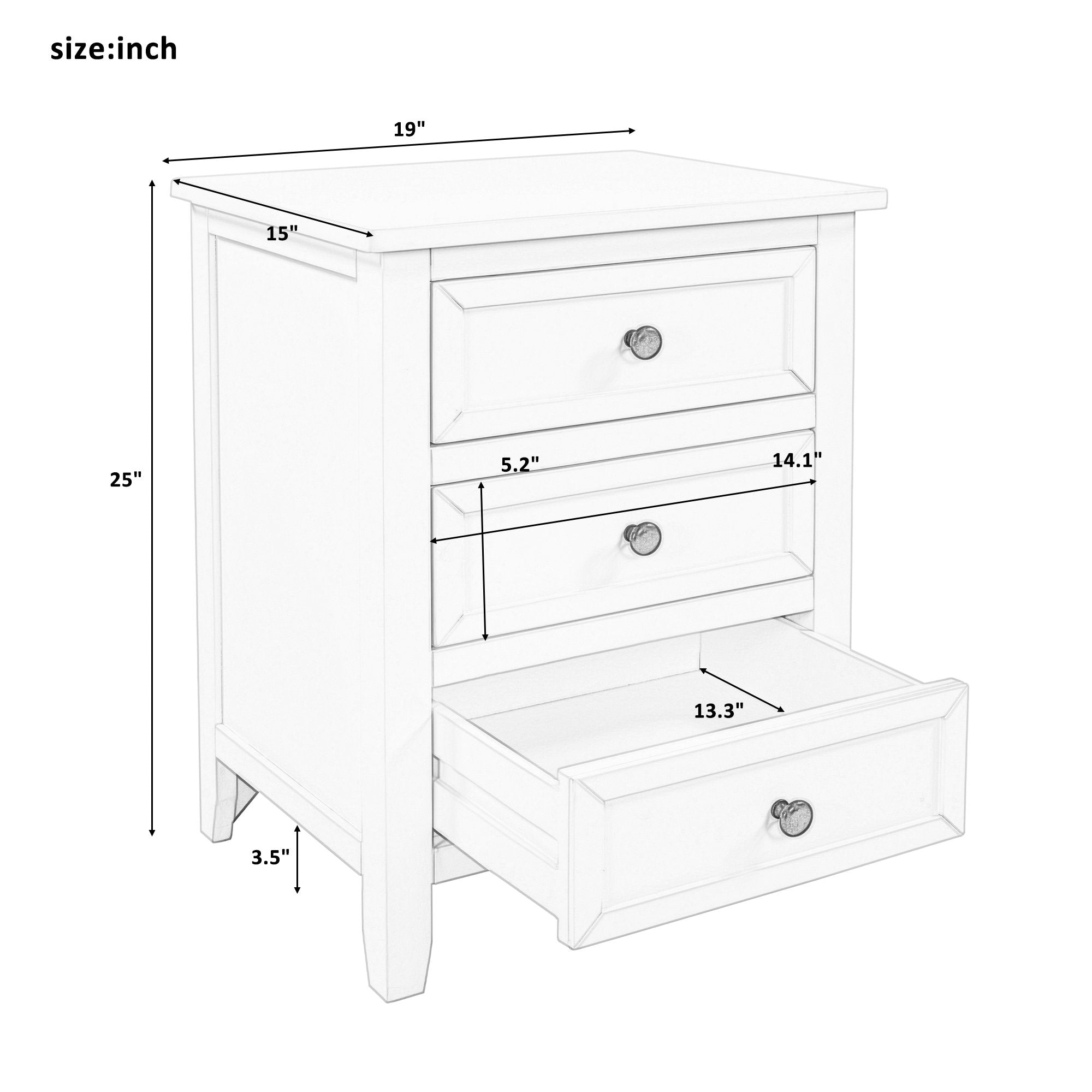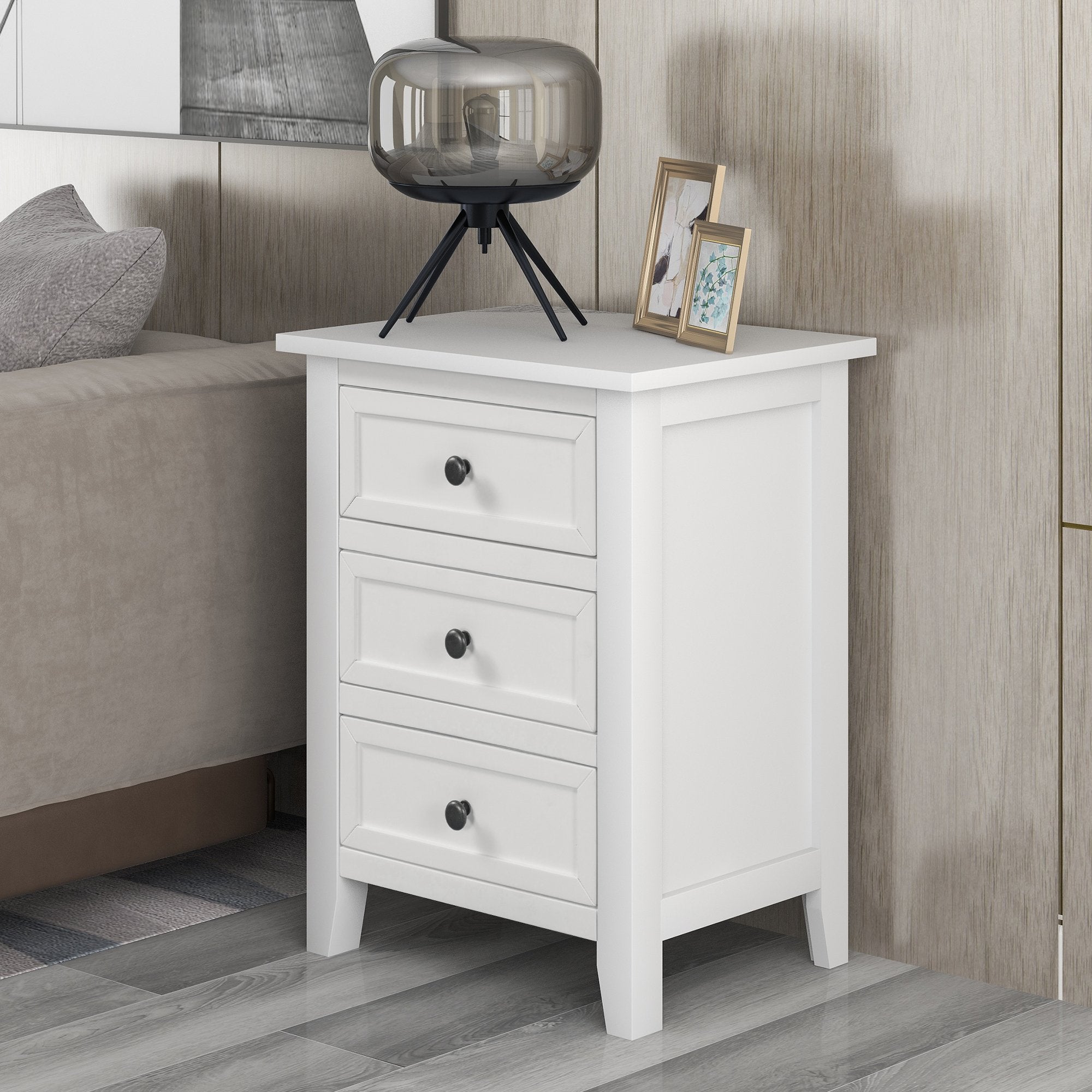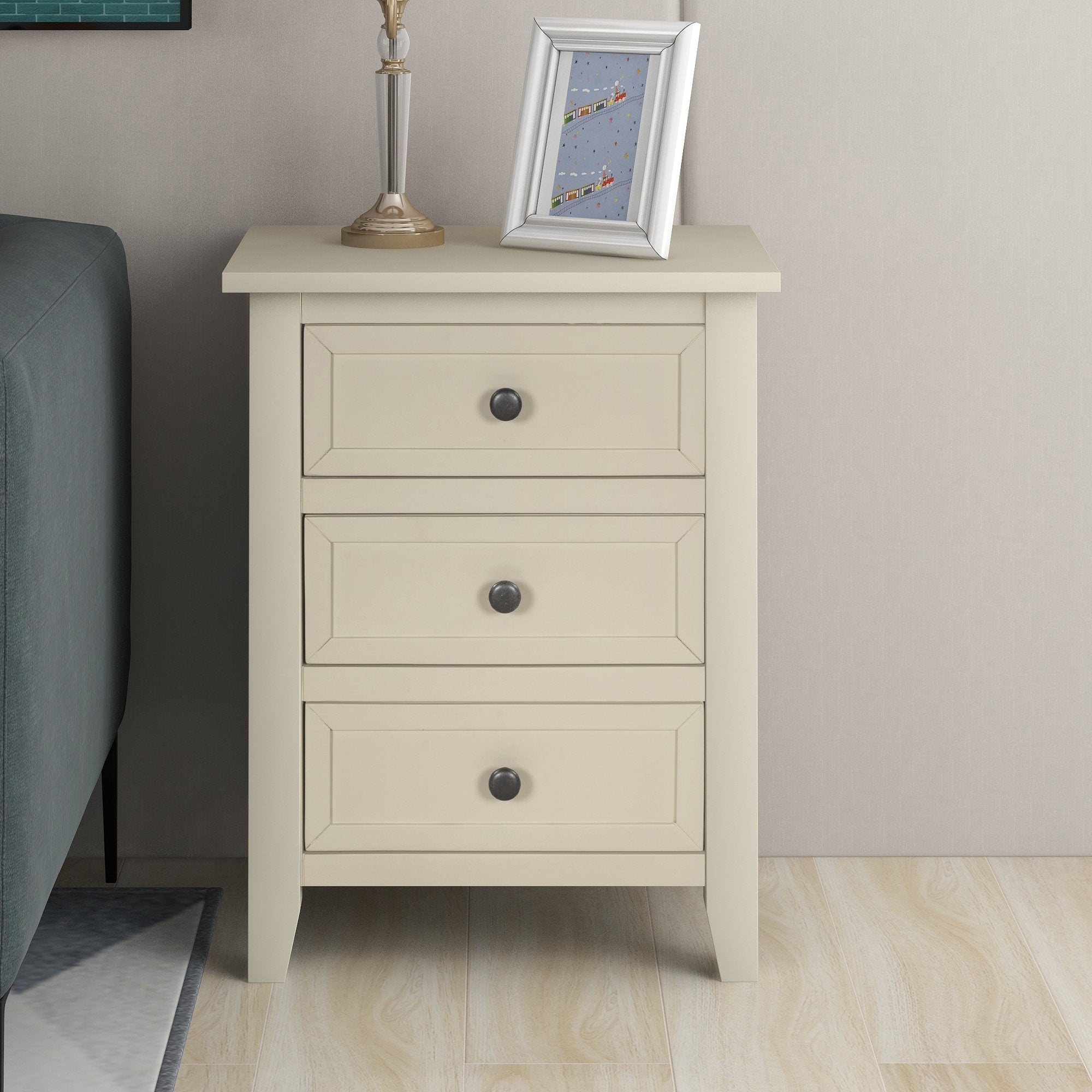 3-Drawer End Table Storage Wood Cabinet, Solid wood frame