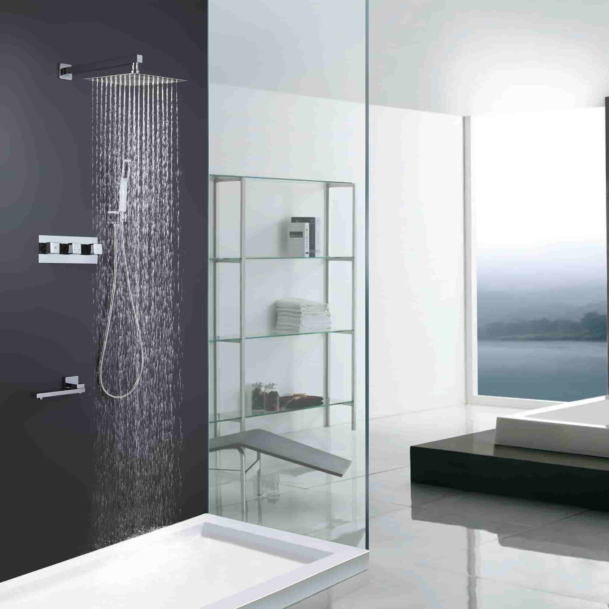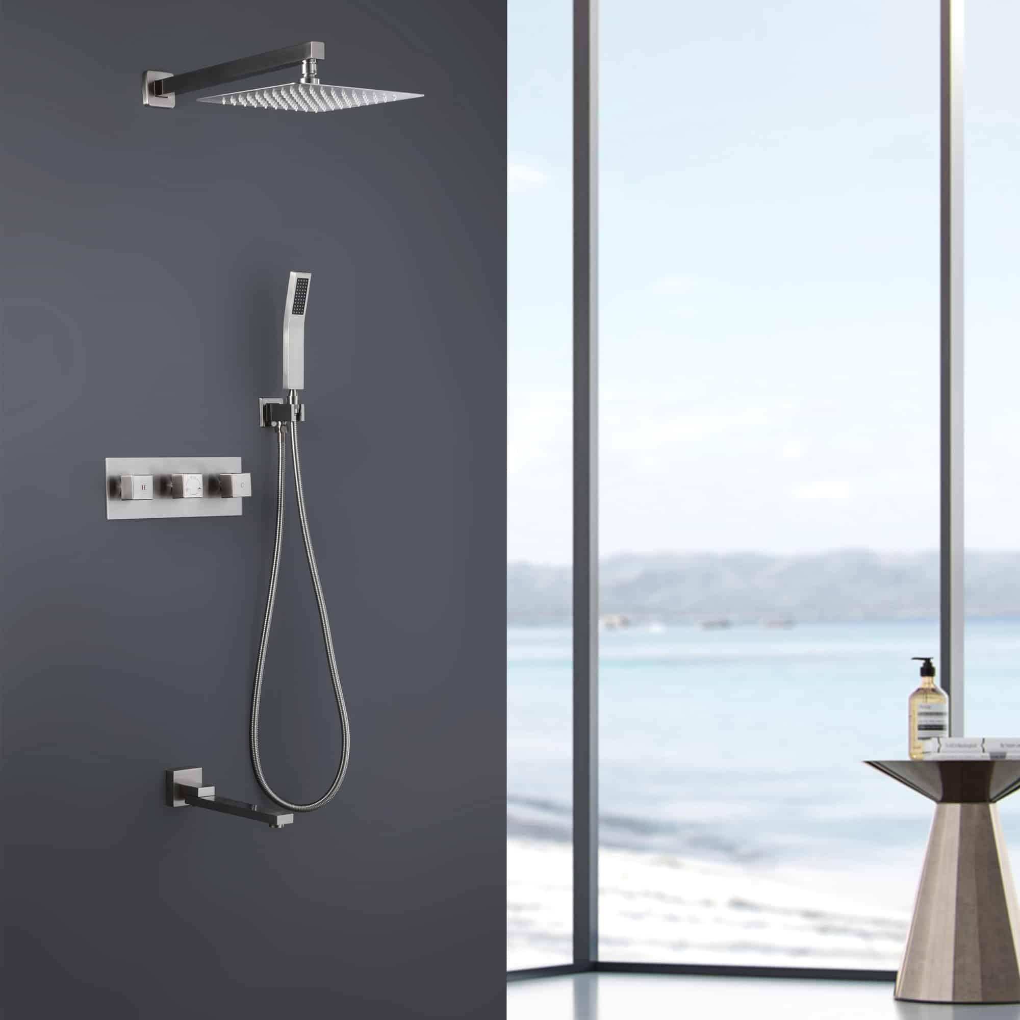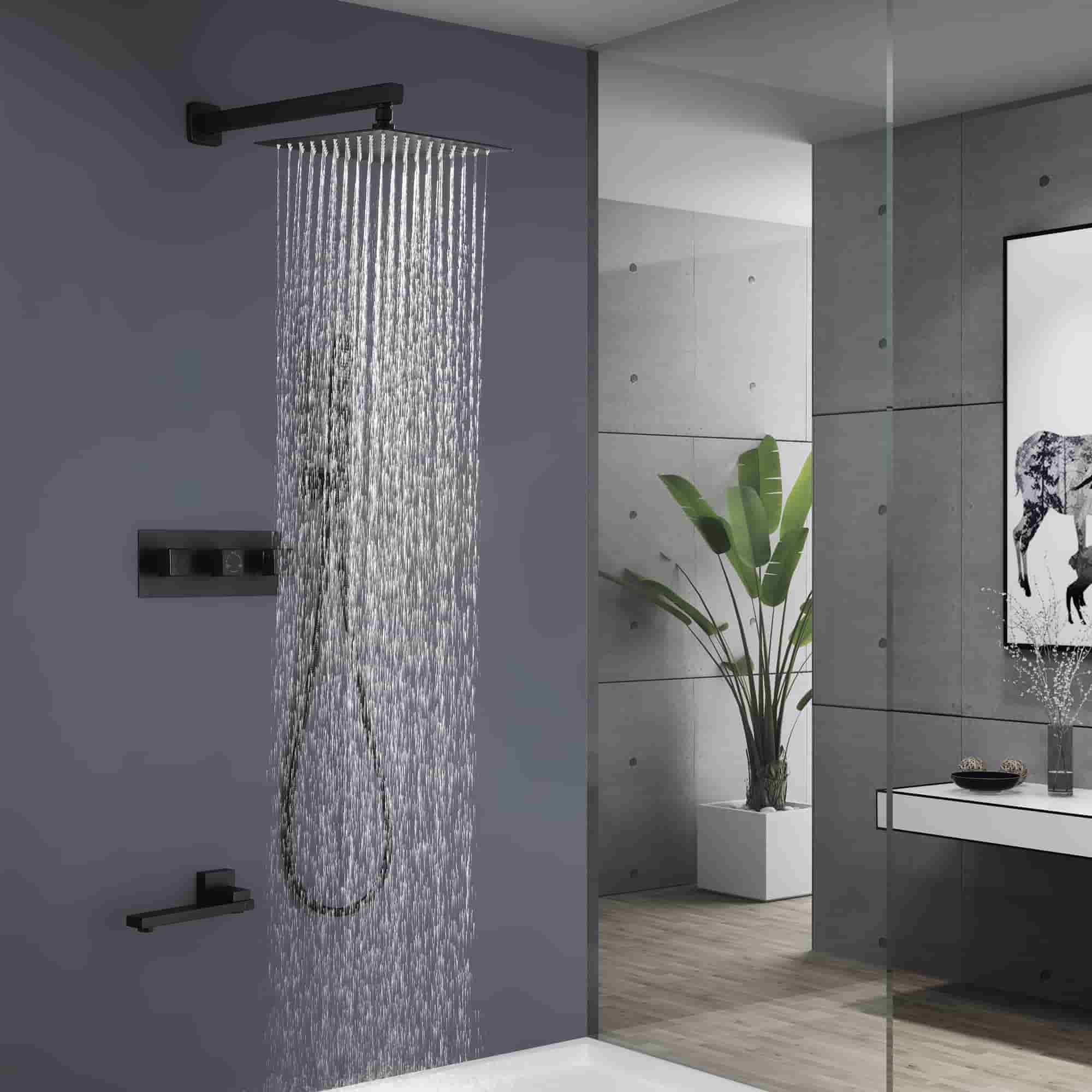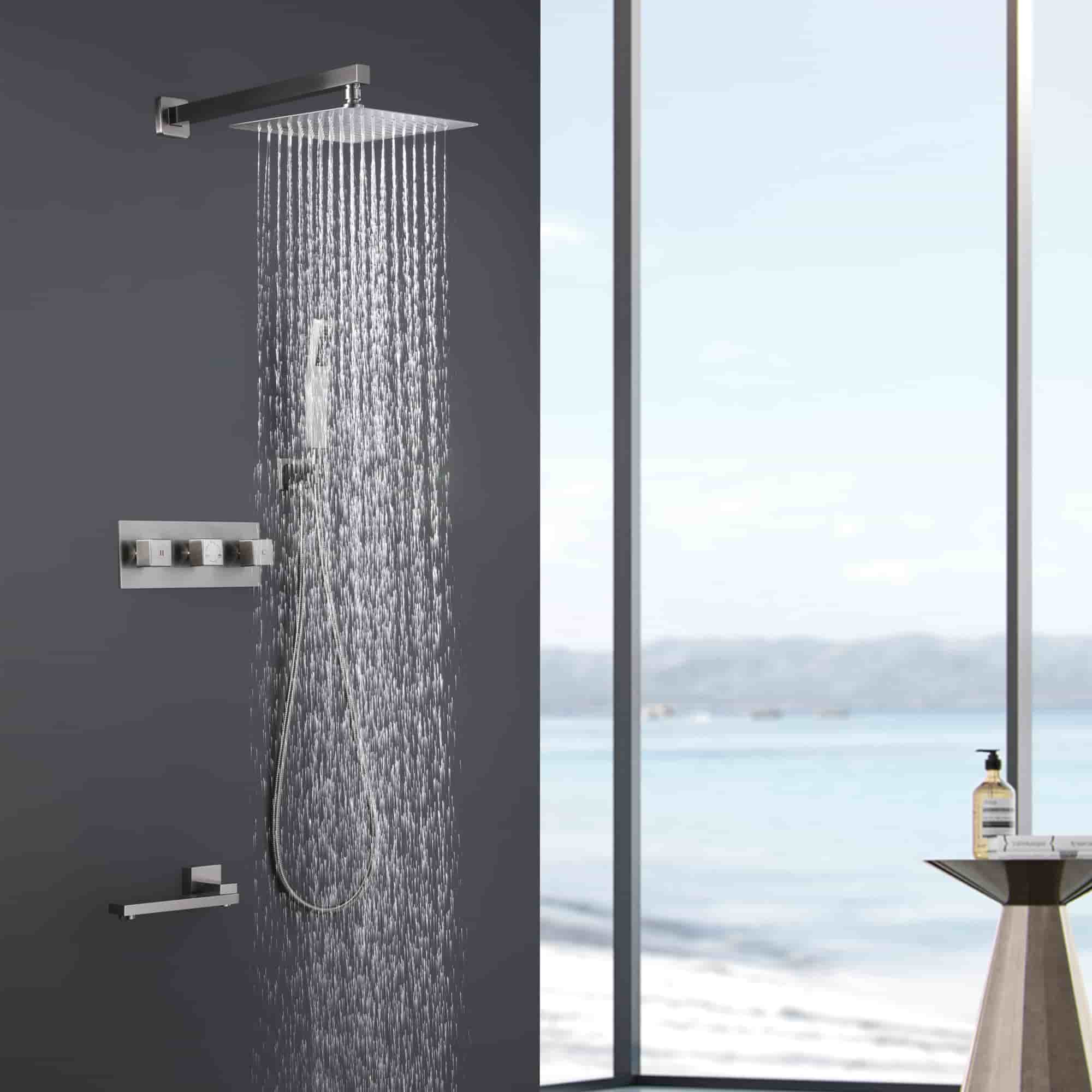 This 3 functions shower system features a 12" by 12" oversized spray area with a nozzle rainfall showerhead, fully covering your body, feel like the whole sky is raining down on you. The horizontally Rotatable Tub Spout makes it easy to use. The bathroom faucet uses brass material for environmental health, makes sure that your domestic water, is away from Lead poisoning, and protects the health of your family.