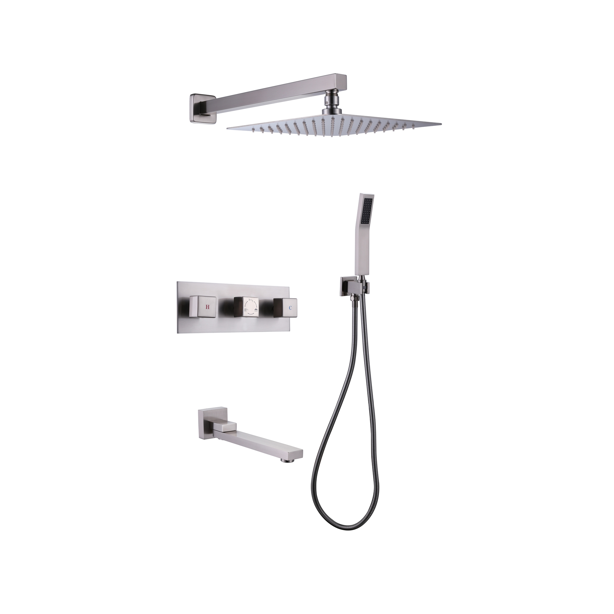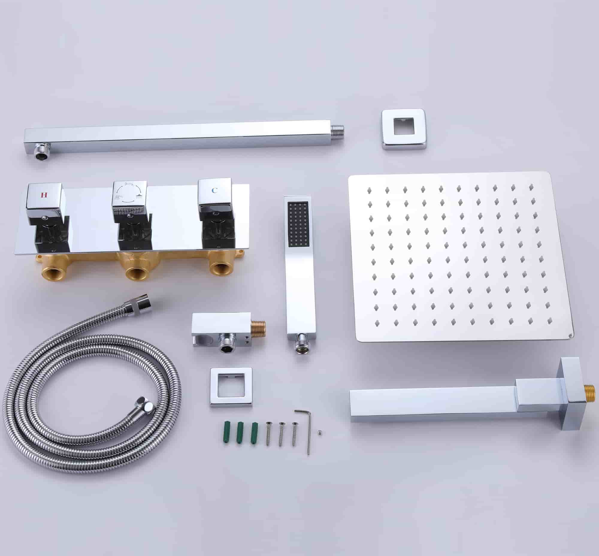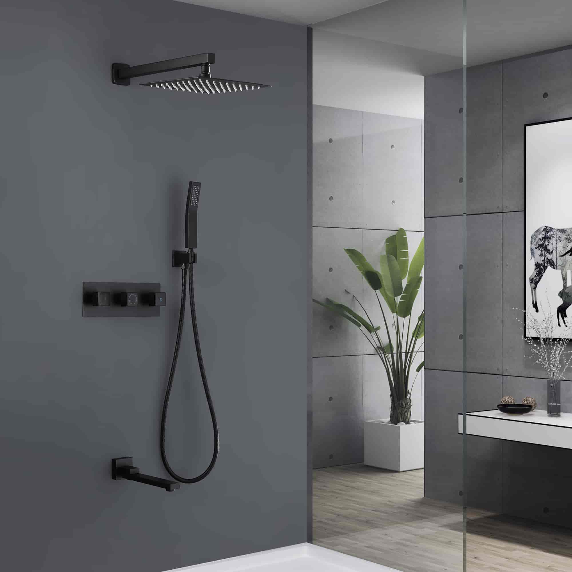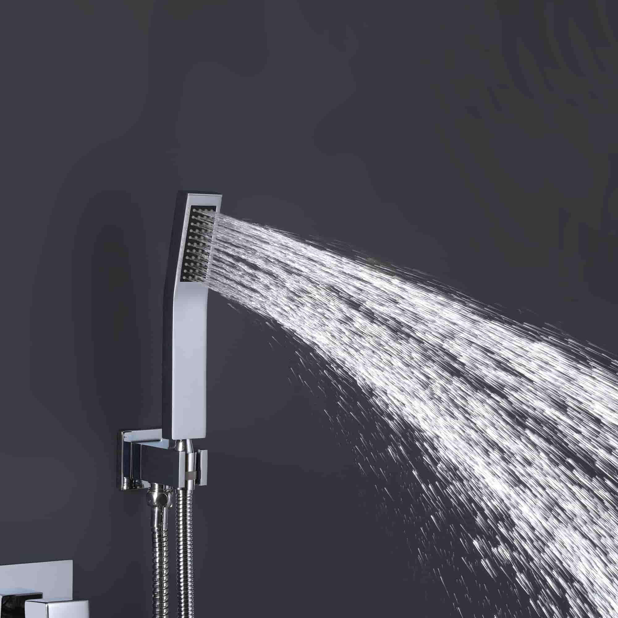 This 3 functions shower system features a 12" by 12" oversized spray area with a nozzle rainfall showerhead, fully covering your body, feel like the whole sky is raining down on you. The horizontally Rotatable Tub Spout makes it easy to use. The bathroom faucet uses brass material for environmental health, makes sure that your domestic water, is away from Lead poisoning, and protects the health of your family.
