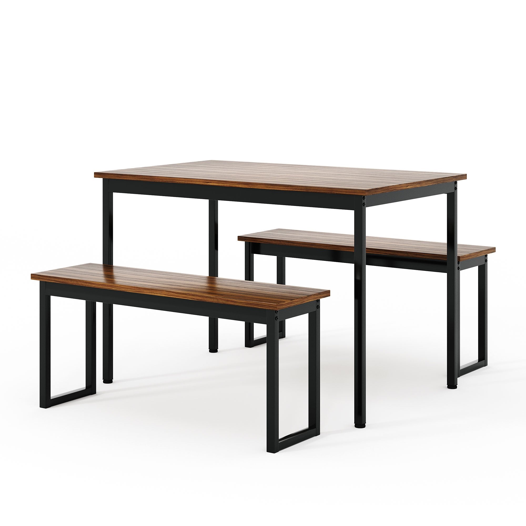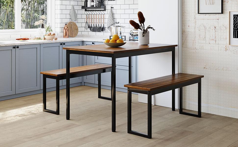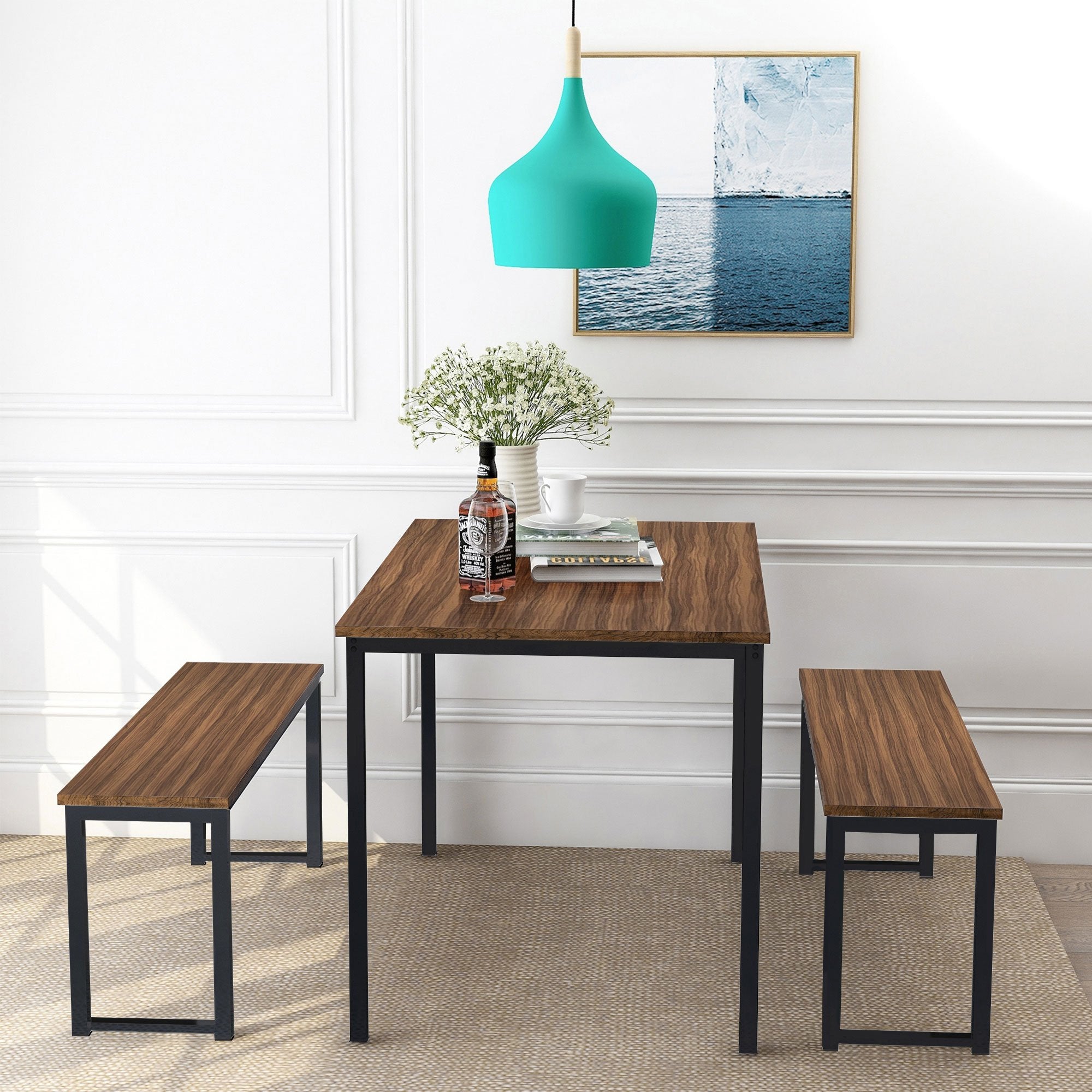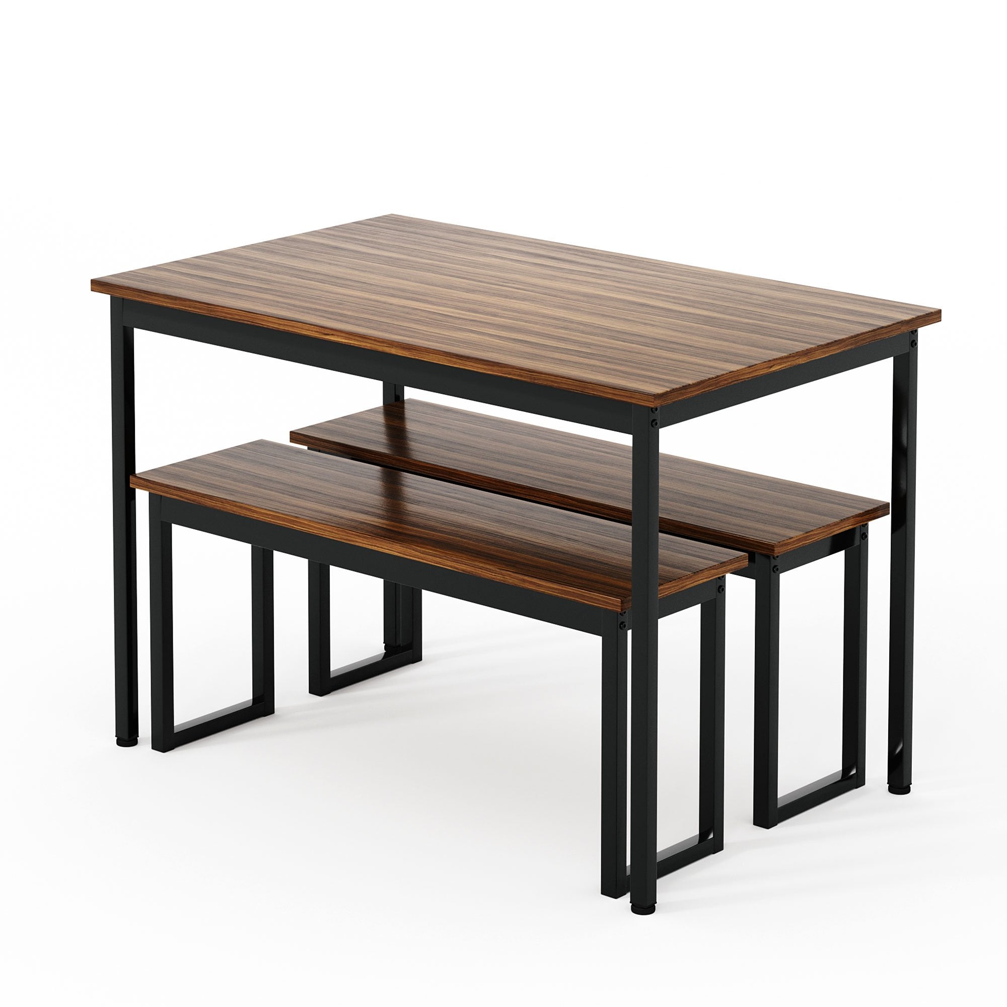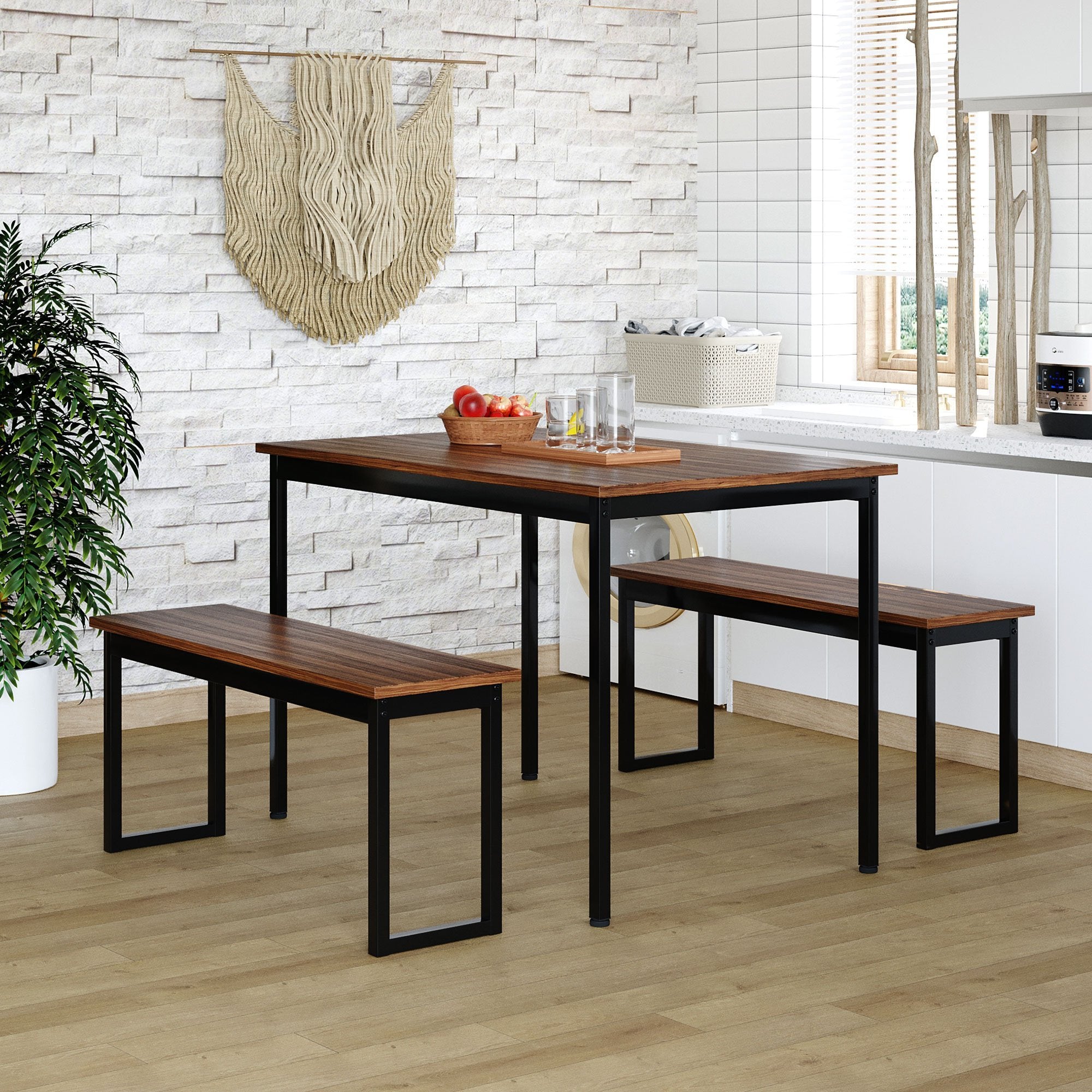 3-Piece Dining Table Set Kitchen Table with Two Benches, Kitchen Contemporary Home Furniture, Brown