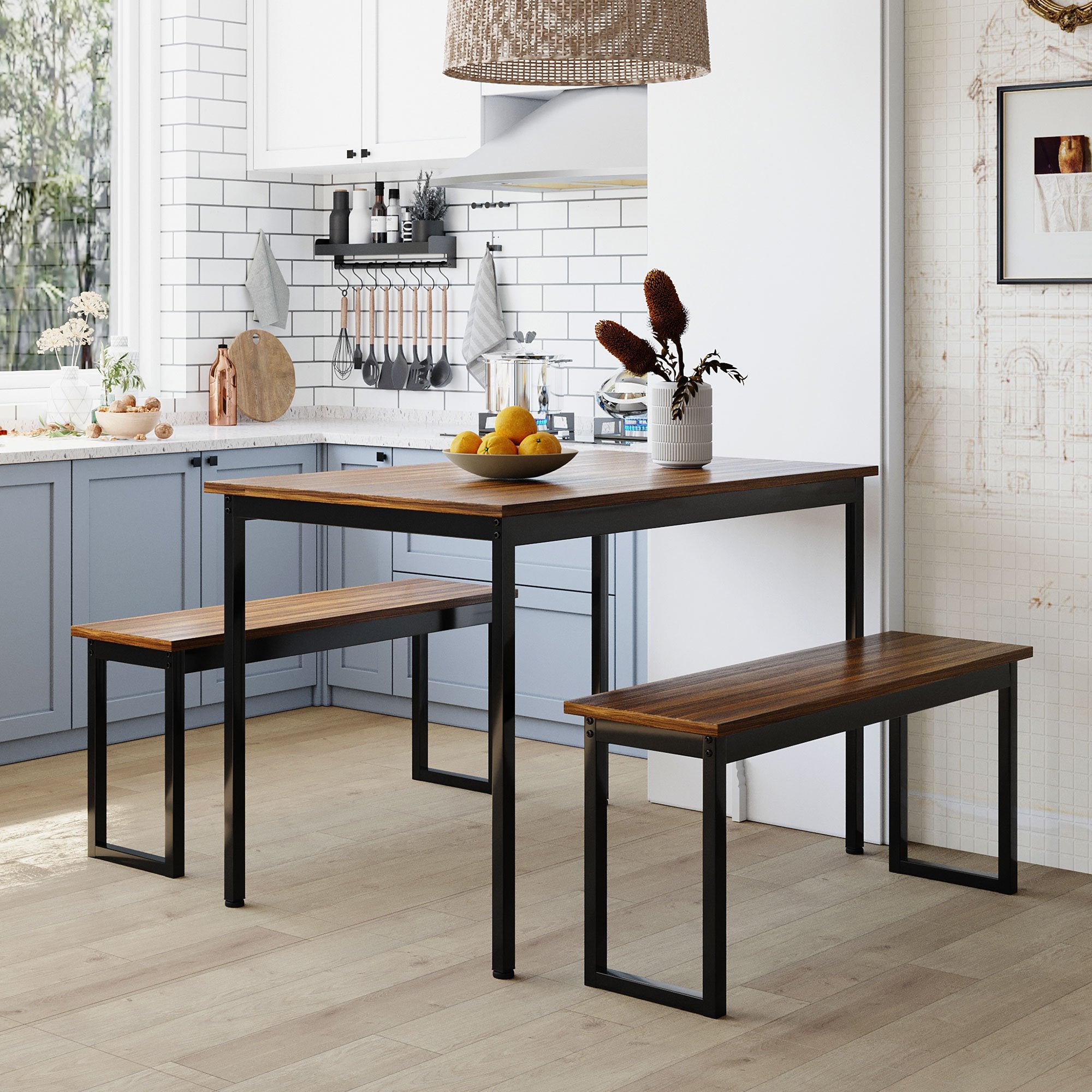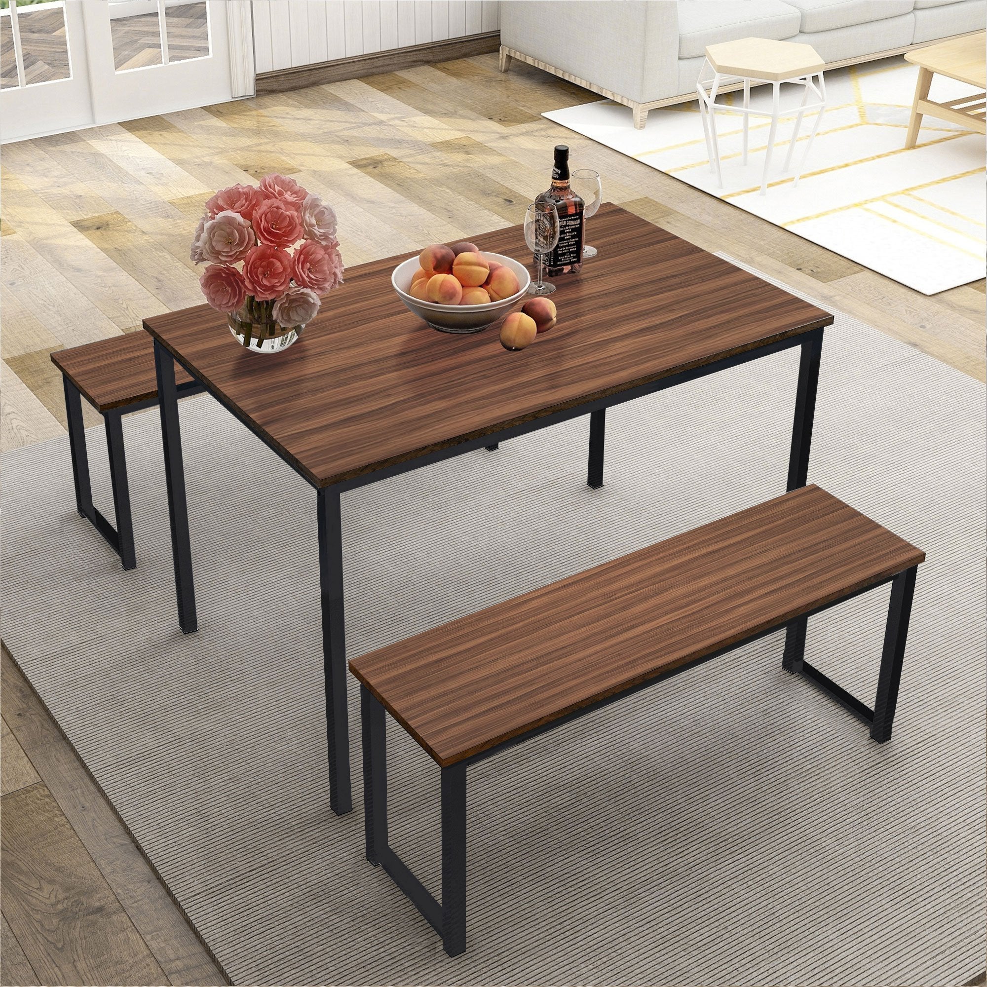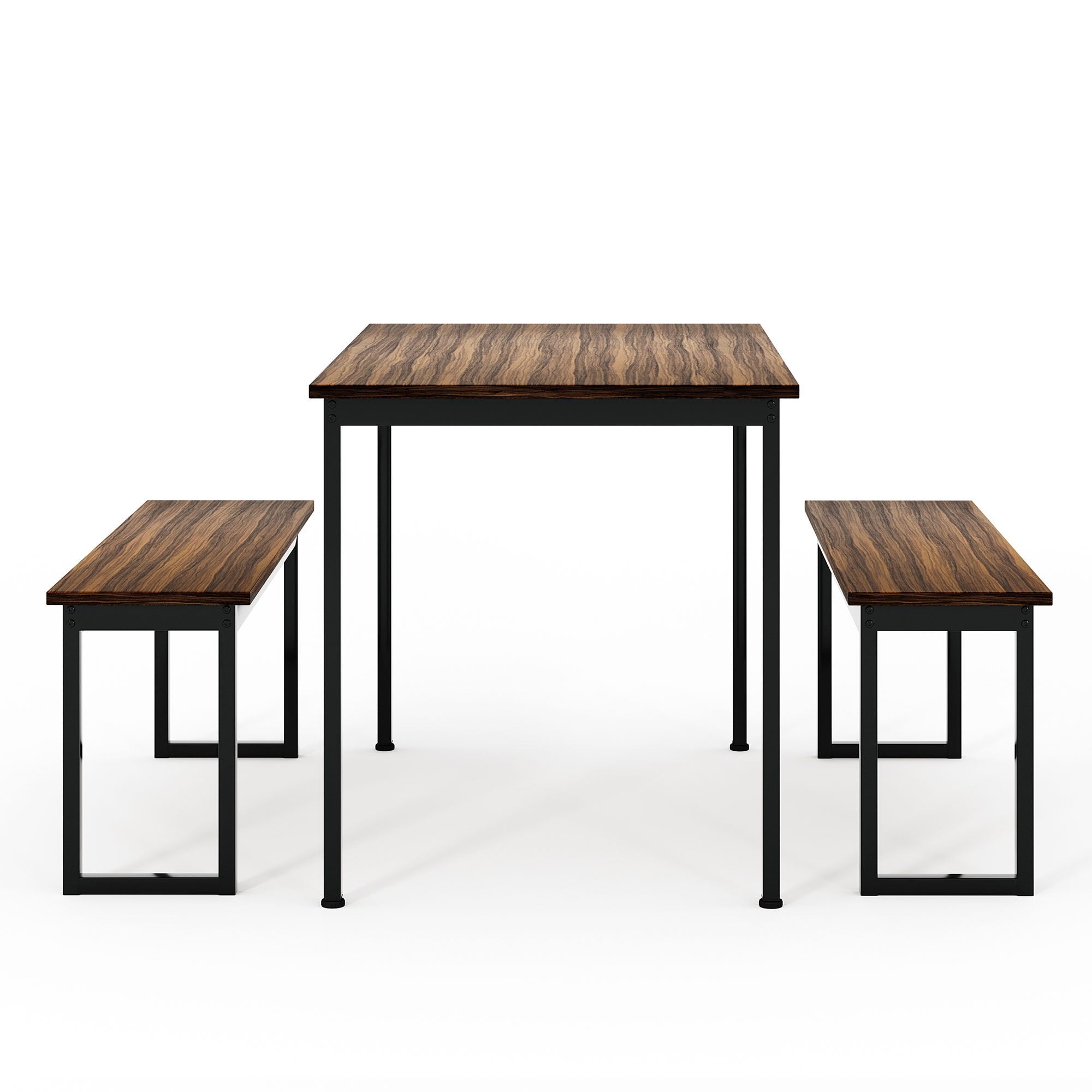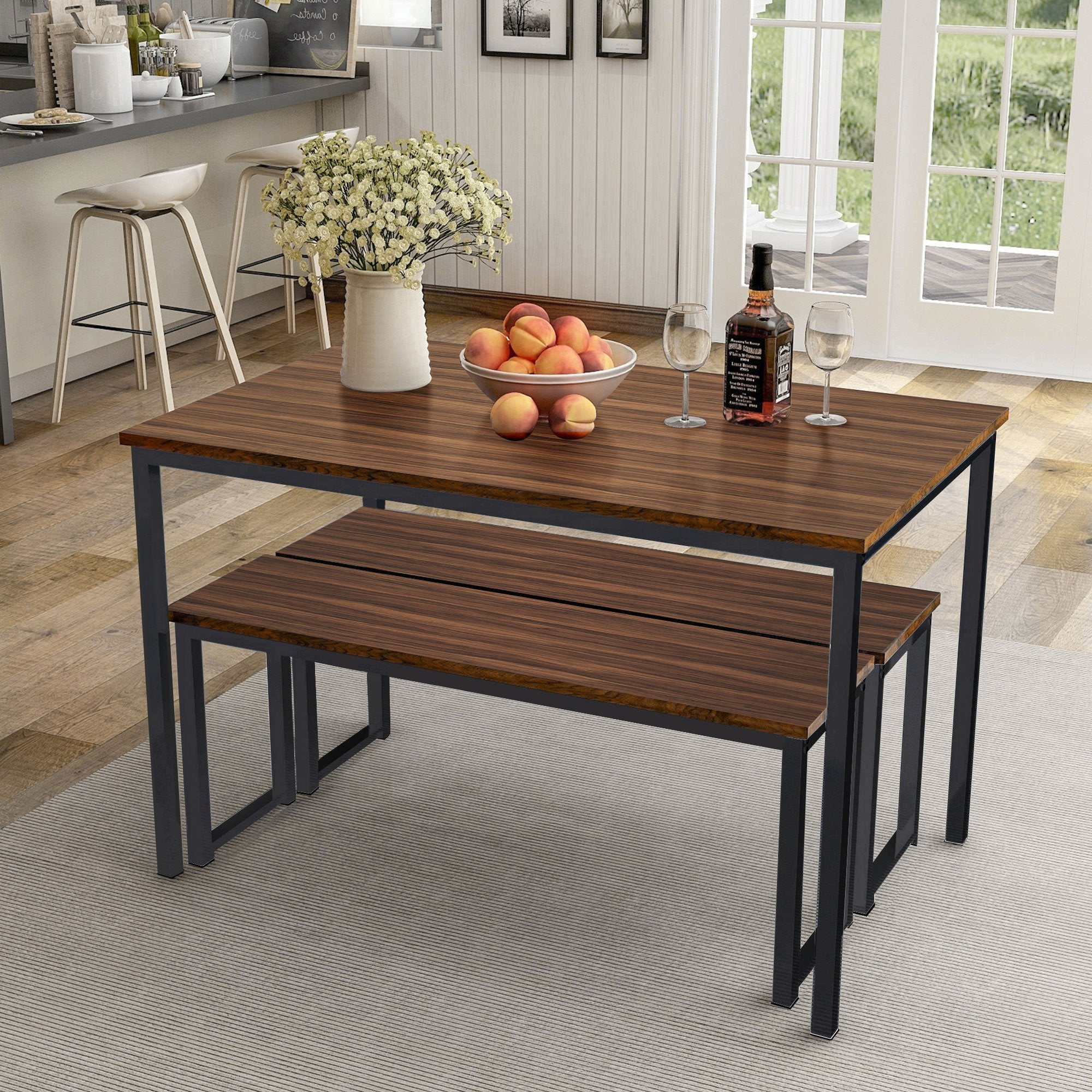 3-Piece Dining Table Set Kitchen Table with Two Benches, Kitchen Contemporary Home Furniture, Brown