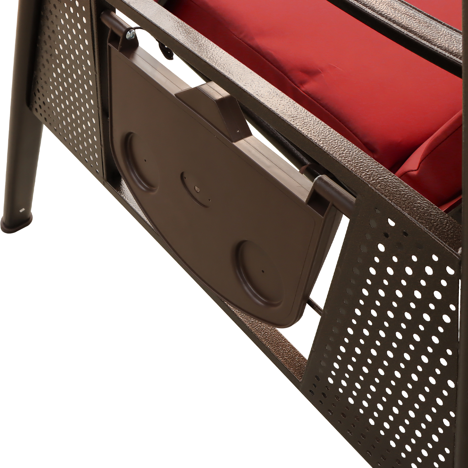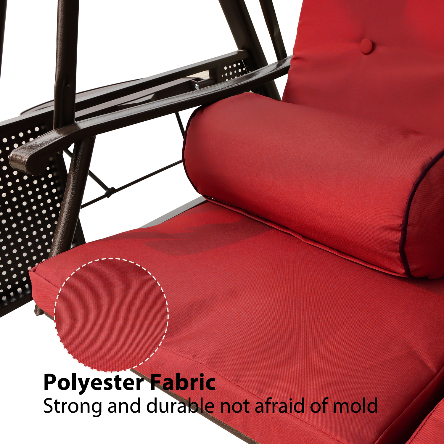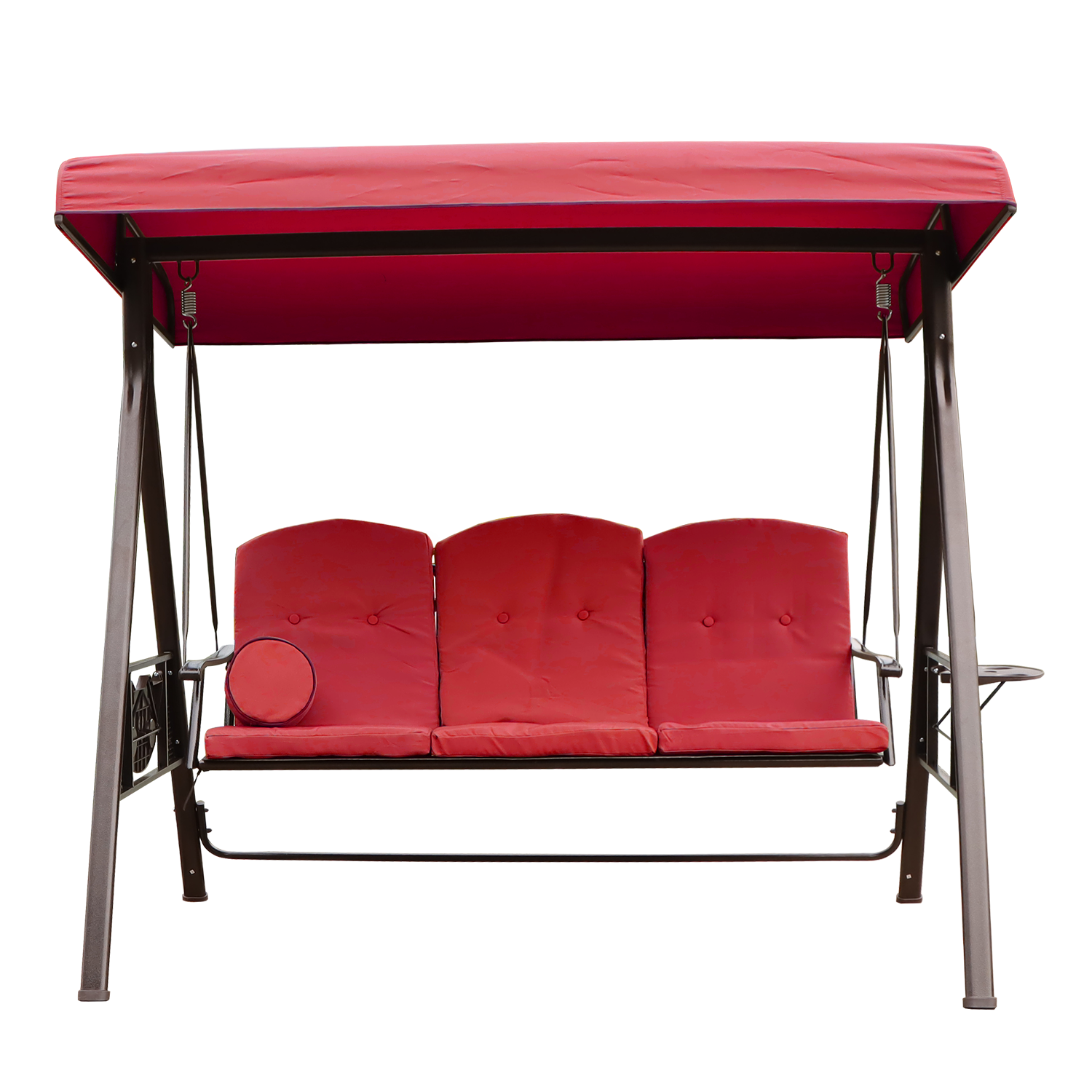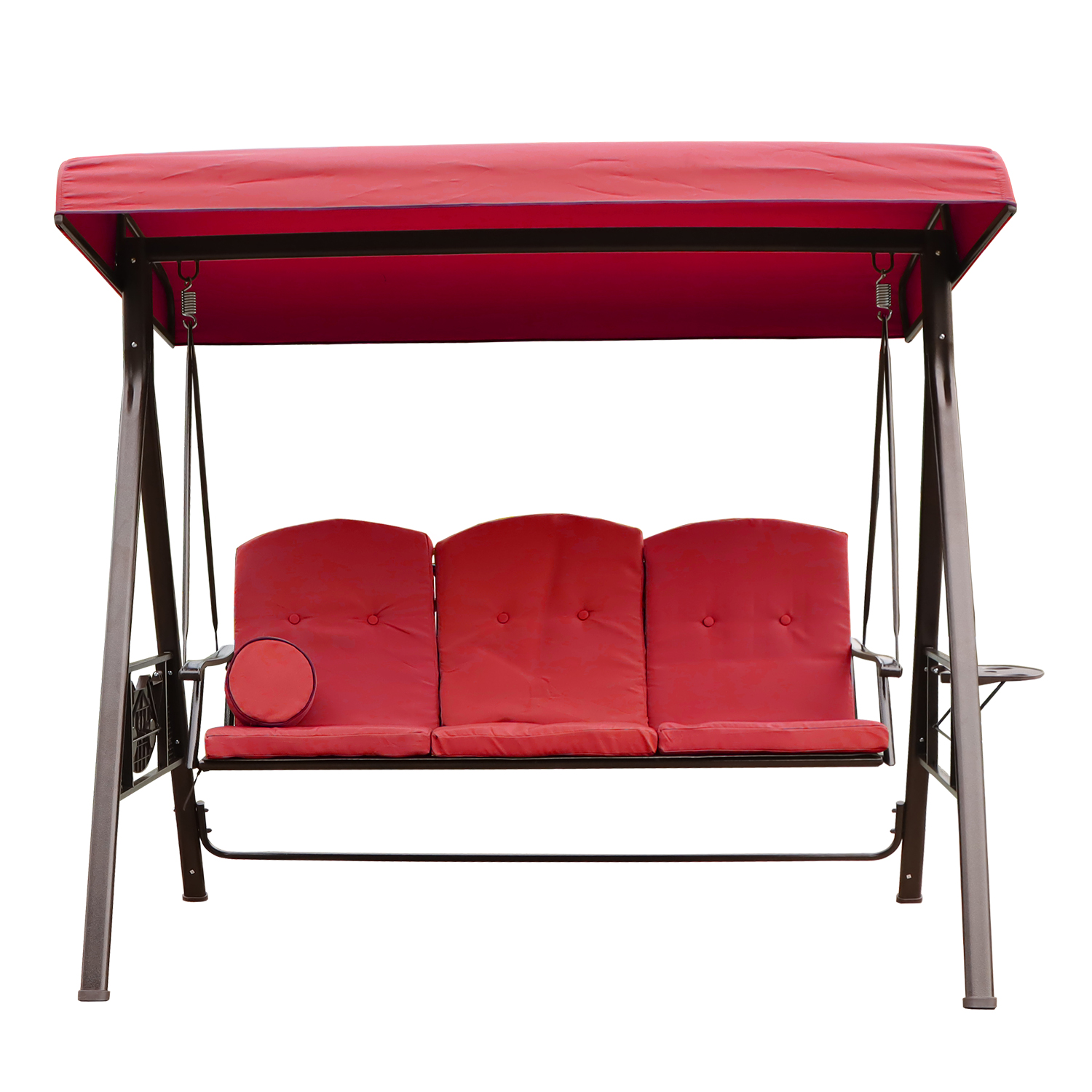 3-Seat Outdoor Patio Porch Swing Chair, Adjustable Canopy Swing Glider with Weather Resistant Steel Frame, Adjustable Tilt Canopy,Removable Cushions and Pillow Included for Backyard,Red