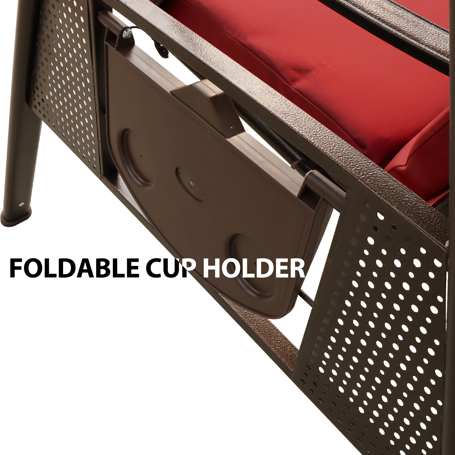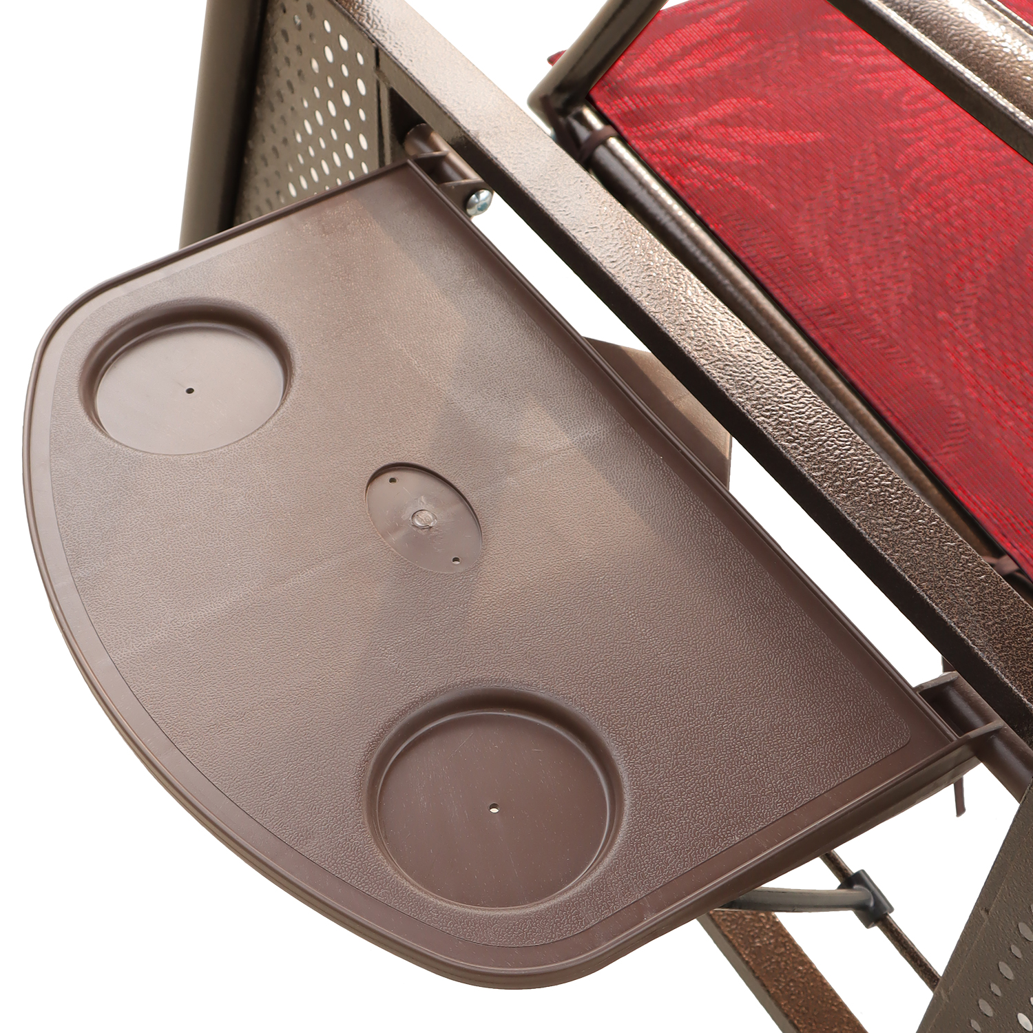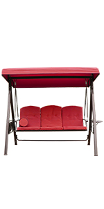 【Tray and Movable cushion】This outdoor swing includes 3 removable cushions and 1 pillow. 2.8 inches thickness of the cushion. Two Tray on both side of the Swing Chair allow you to put your dirnks, phone or snacks on it.
