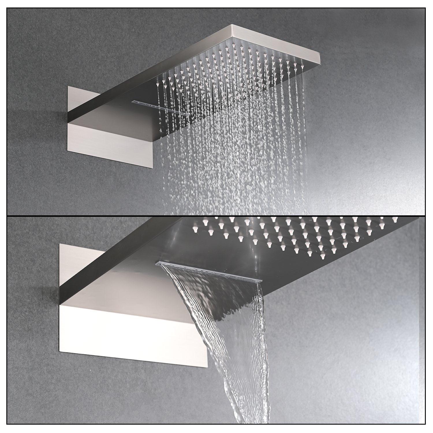 3-Spray Patterns Thermostatic Bathroom Shower Wall Mount Rainfall Dual Shower Heads Brushed Nickle