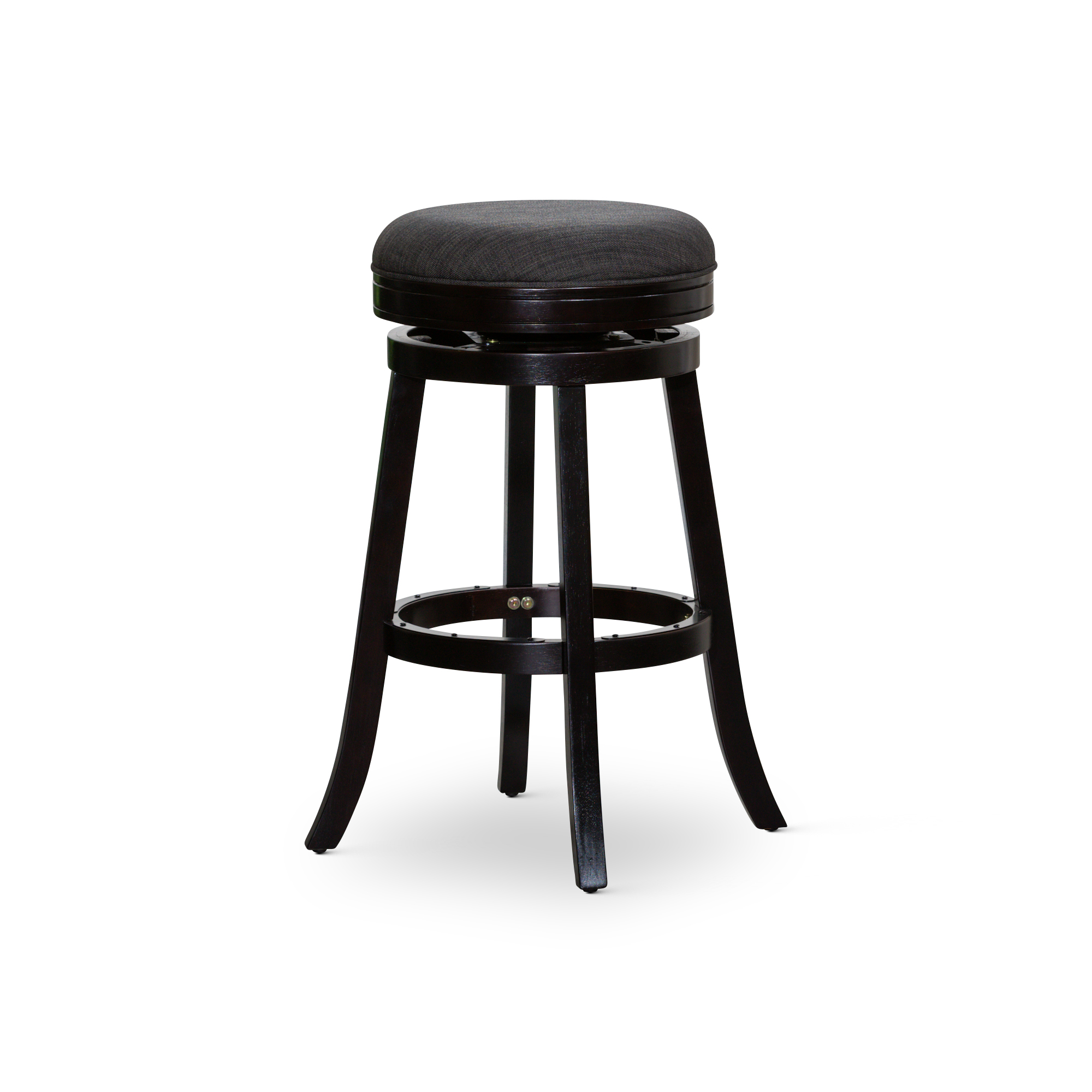 Create a stylish and functional dining or bar space with this backless swivel stool. The classic design and neutral color palette are sure to enhance any décor. The stool is complemented by the padded bonded leather seat and flared leg. These sturdy stools are built with a solid hardwood frame and a round footrest with metal plates to protect the stool from footwear damage. This stool is available in two sizes, four finishes and a variety of bonded leather and fabric colors.