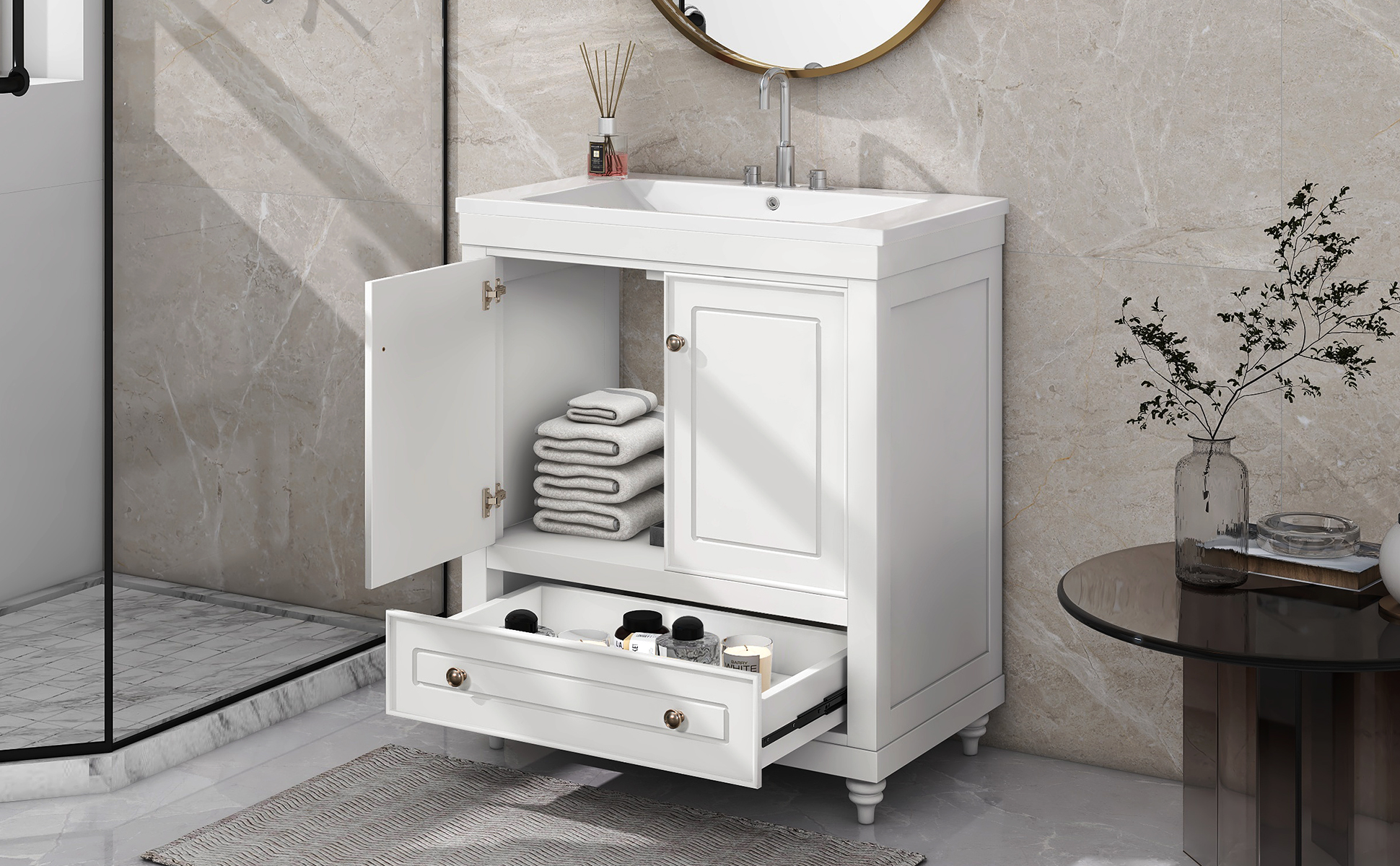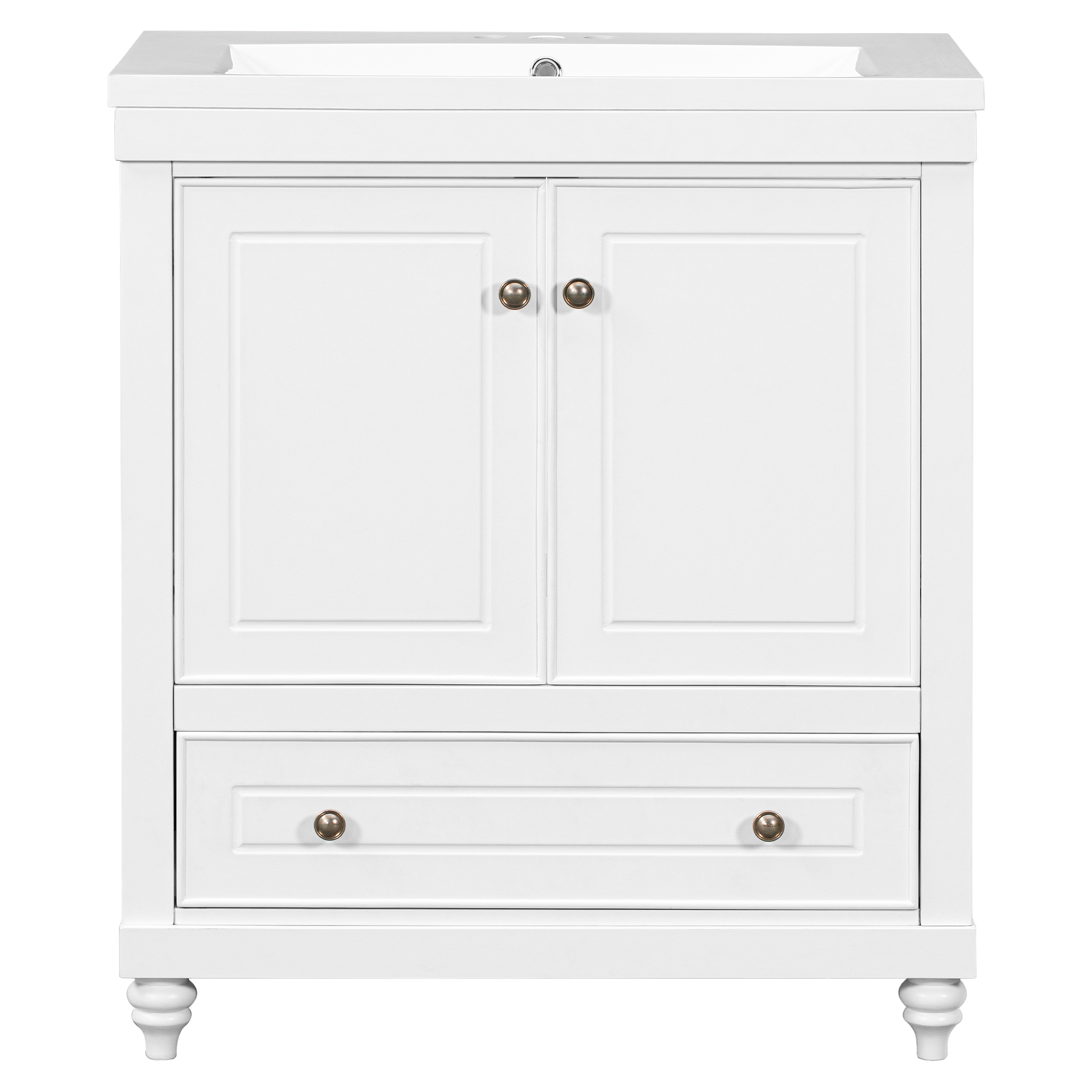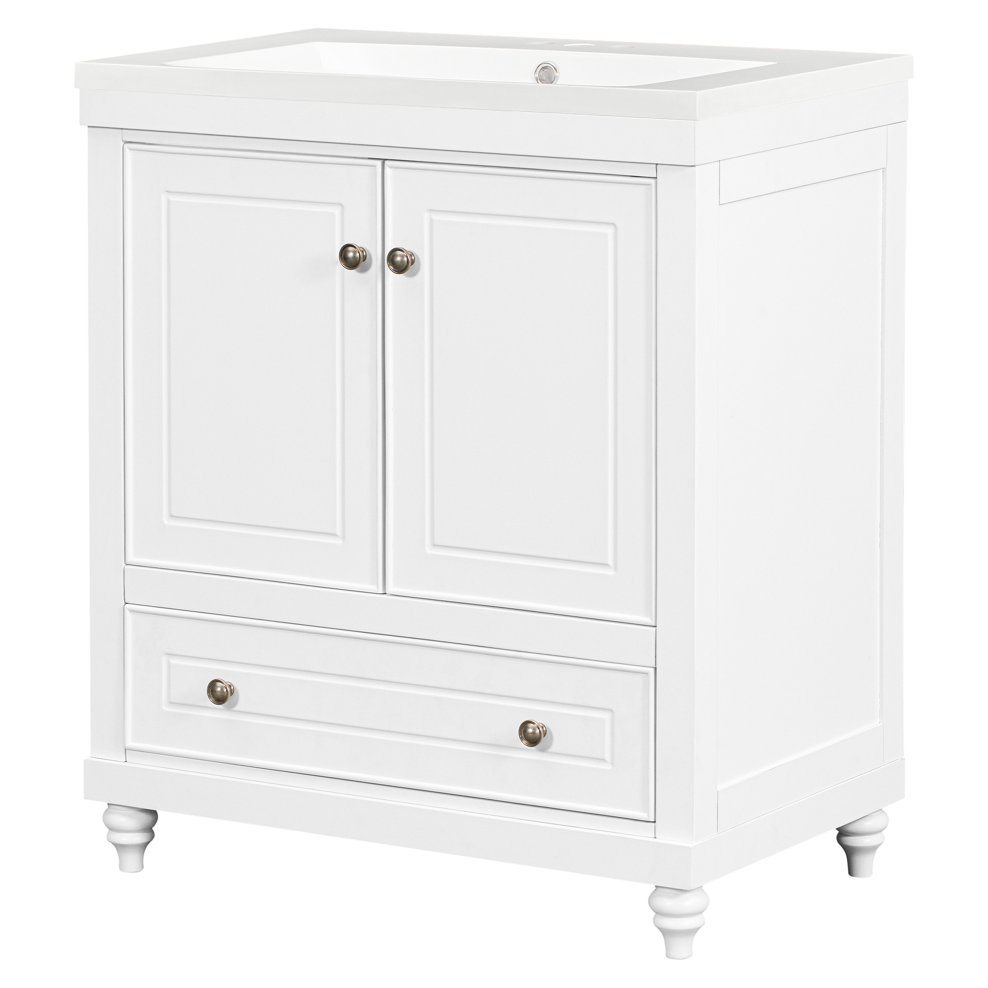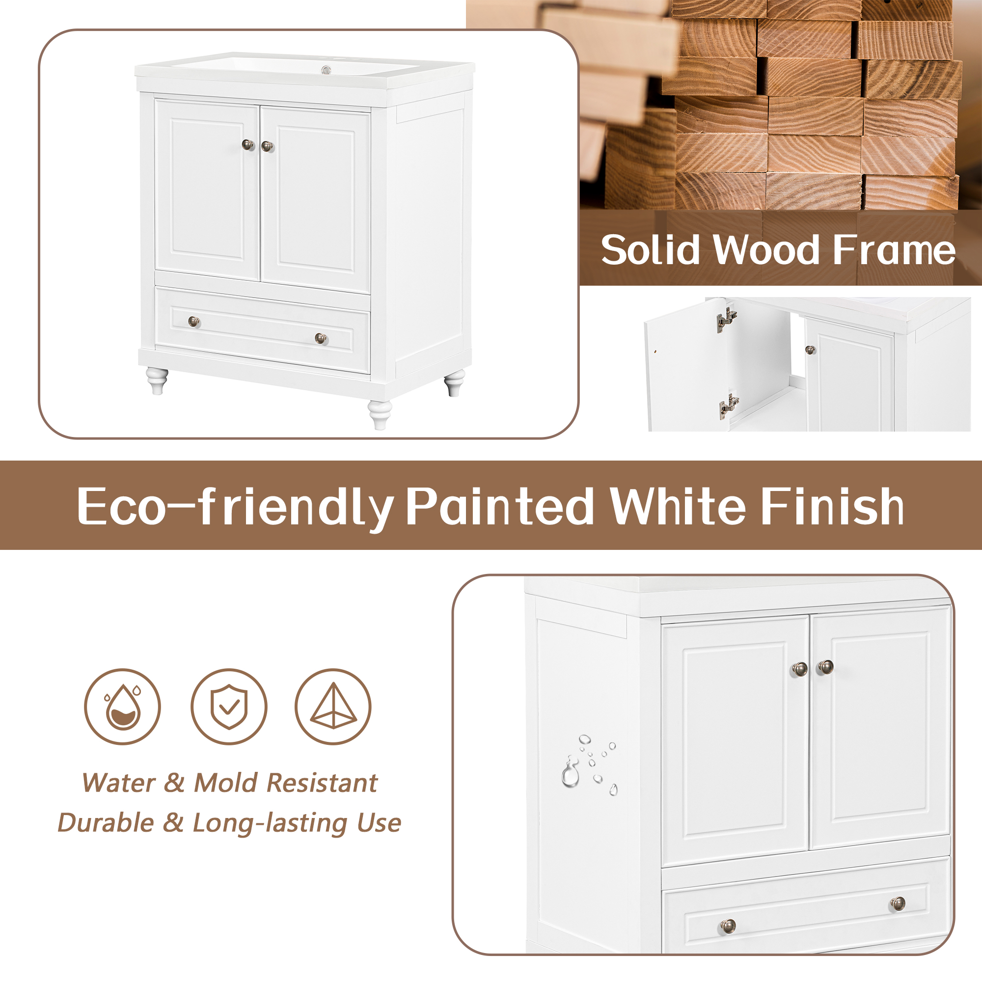 30" Bathroom Vanity with Sink, Combo, Cabinet with Doors and Drawer, Solid Frame and MDF Board, White