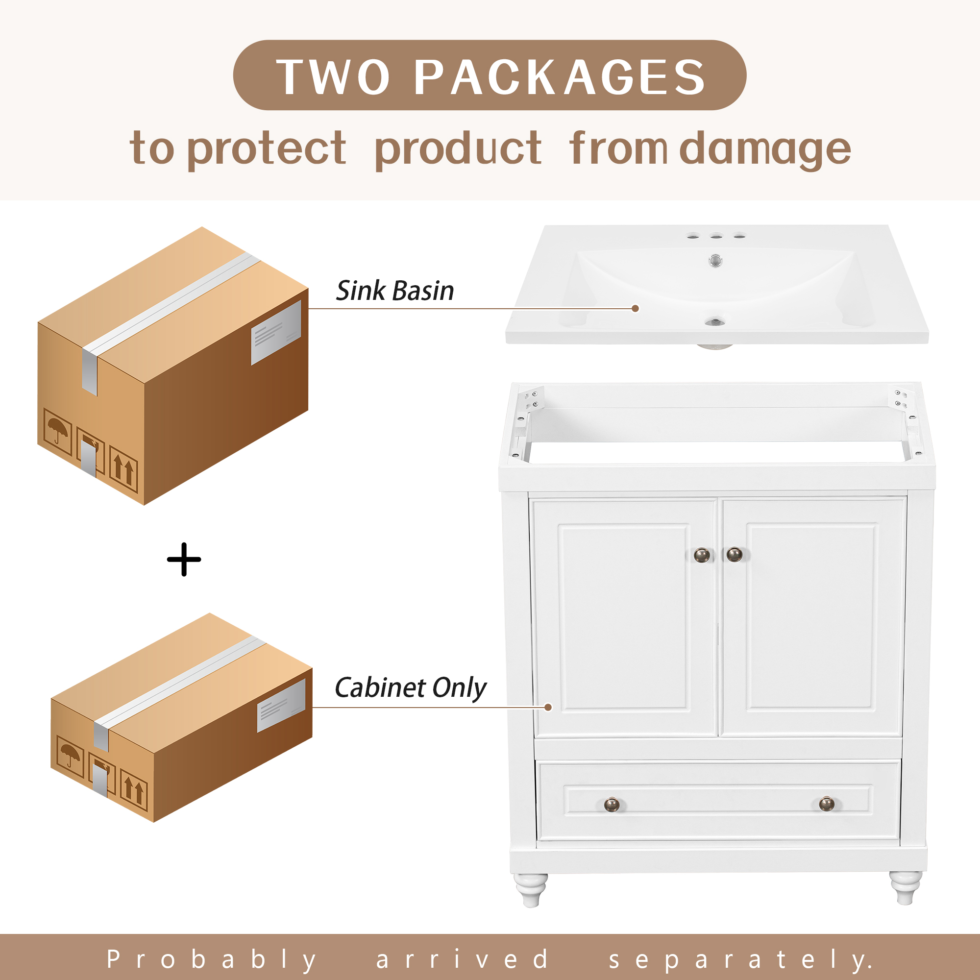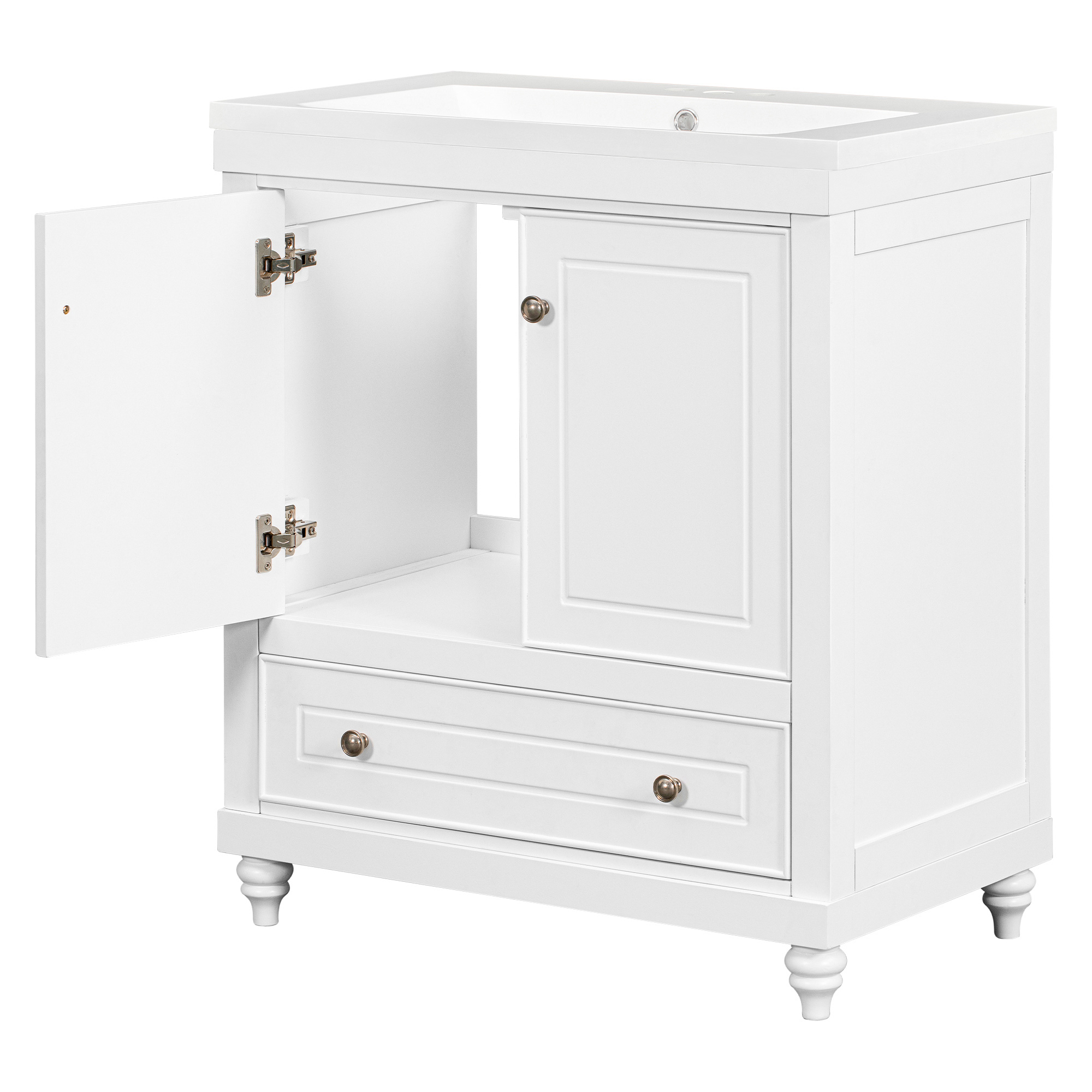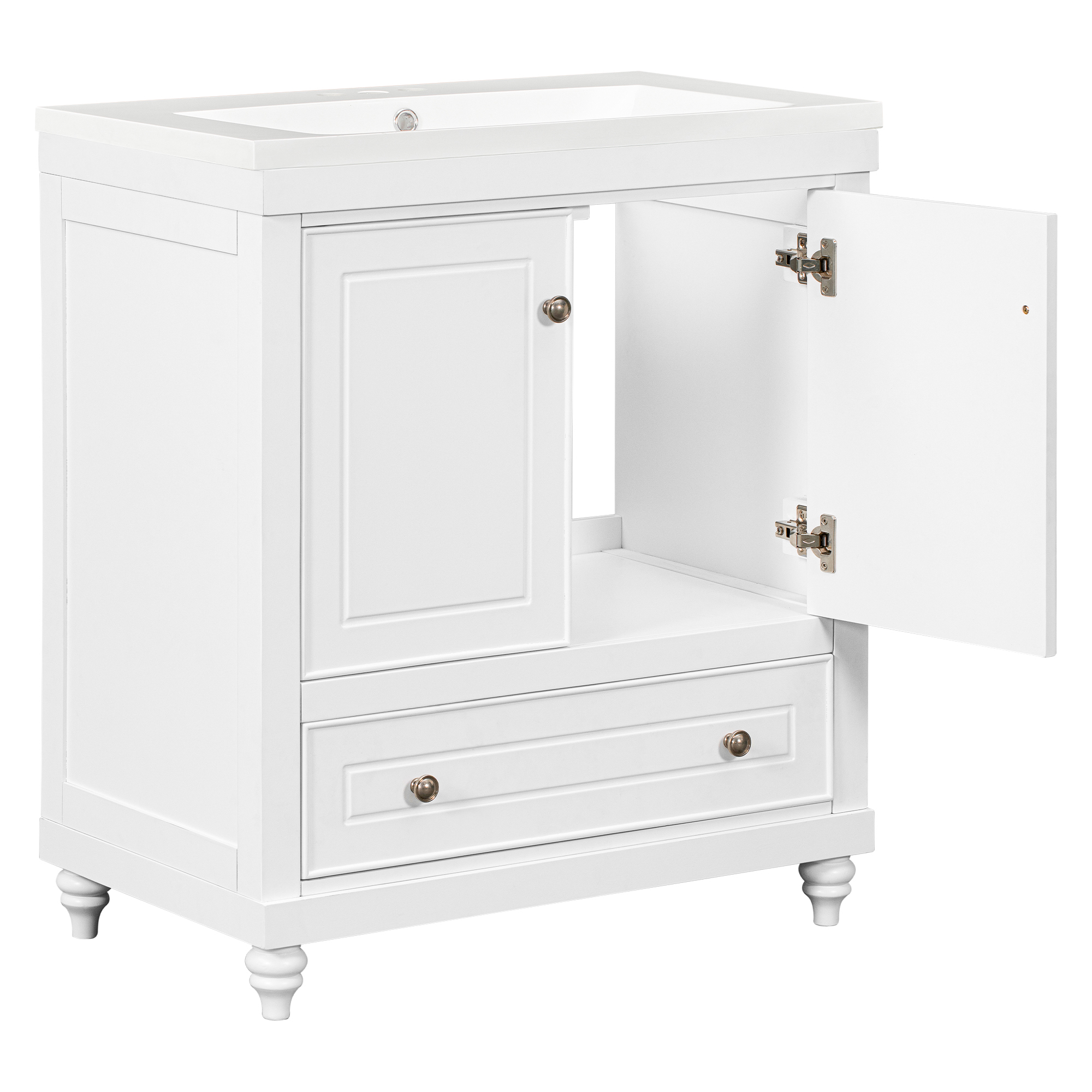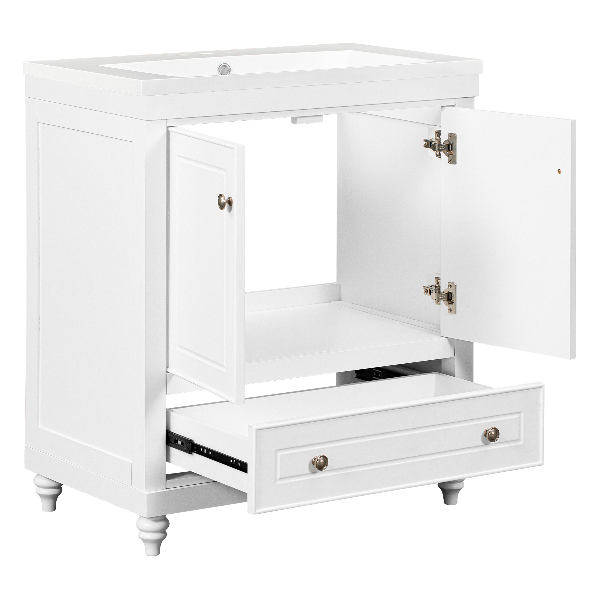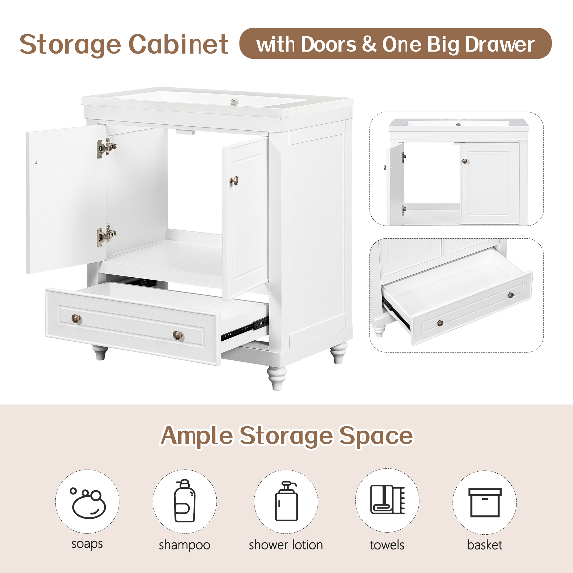 30" Bathroom Vanity with Sink, Combo, Cabinet with Doors and Drawer, Solid Frame and MDF Board, White