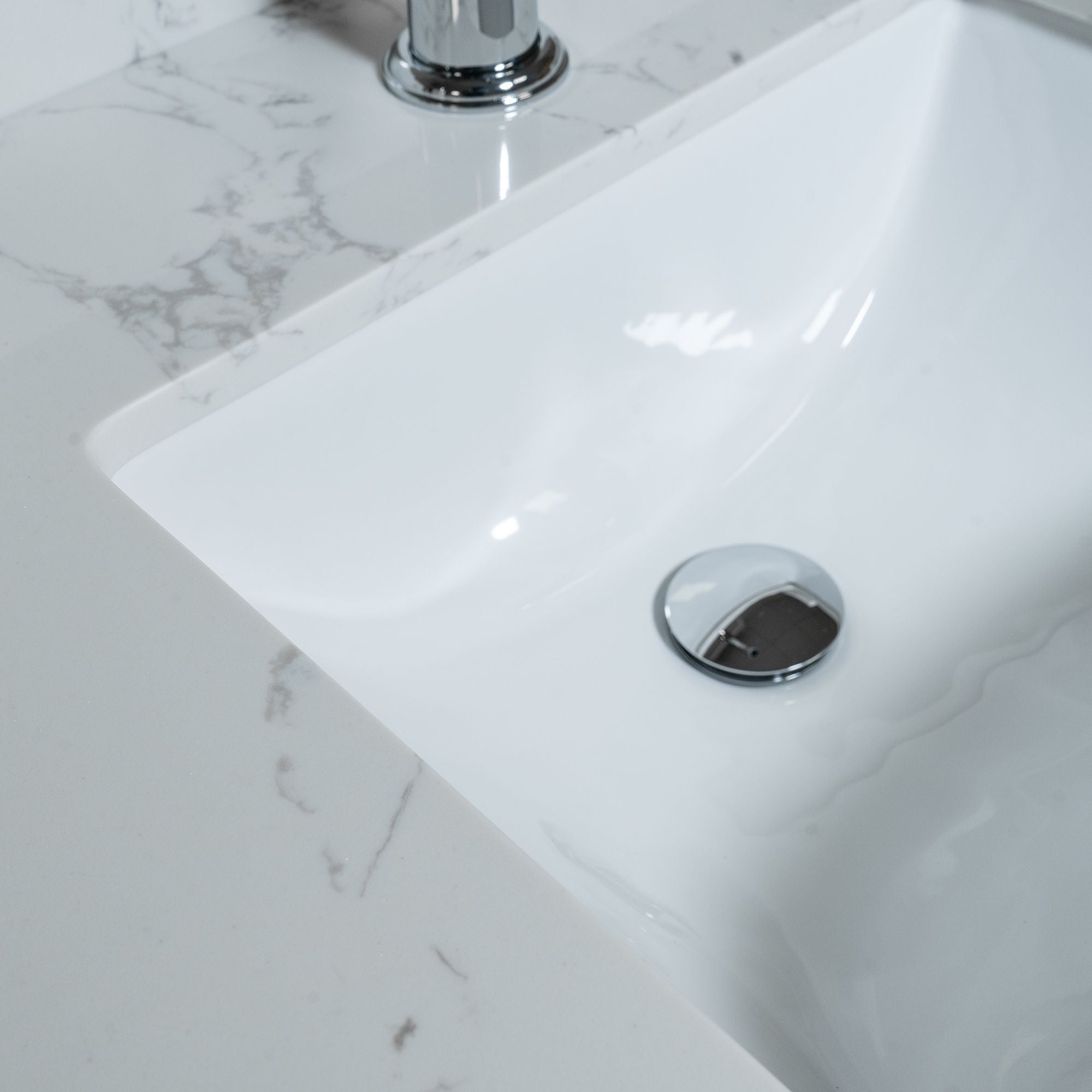 31 inch bathroom stone vanity top engineered white marble color with undermount ceramic sink and single faucet hole with backsplash