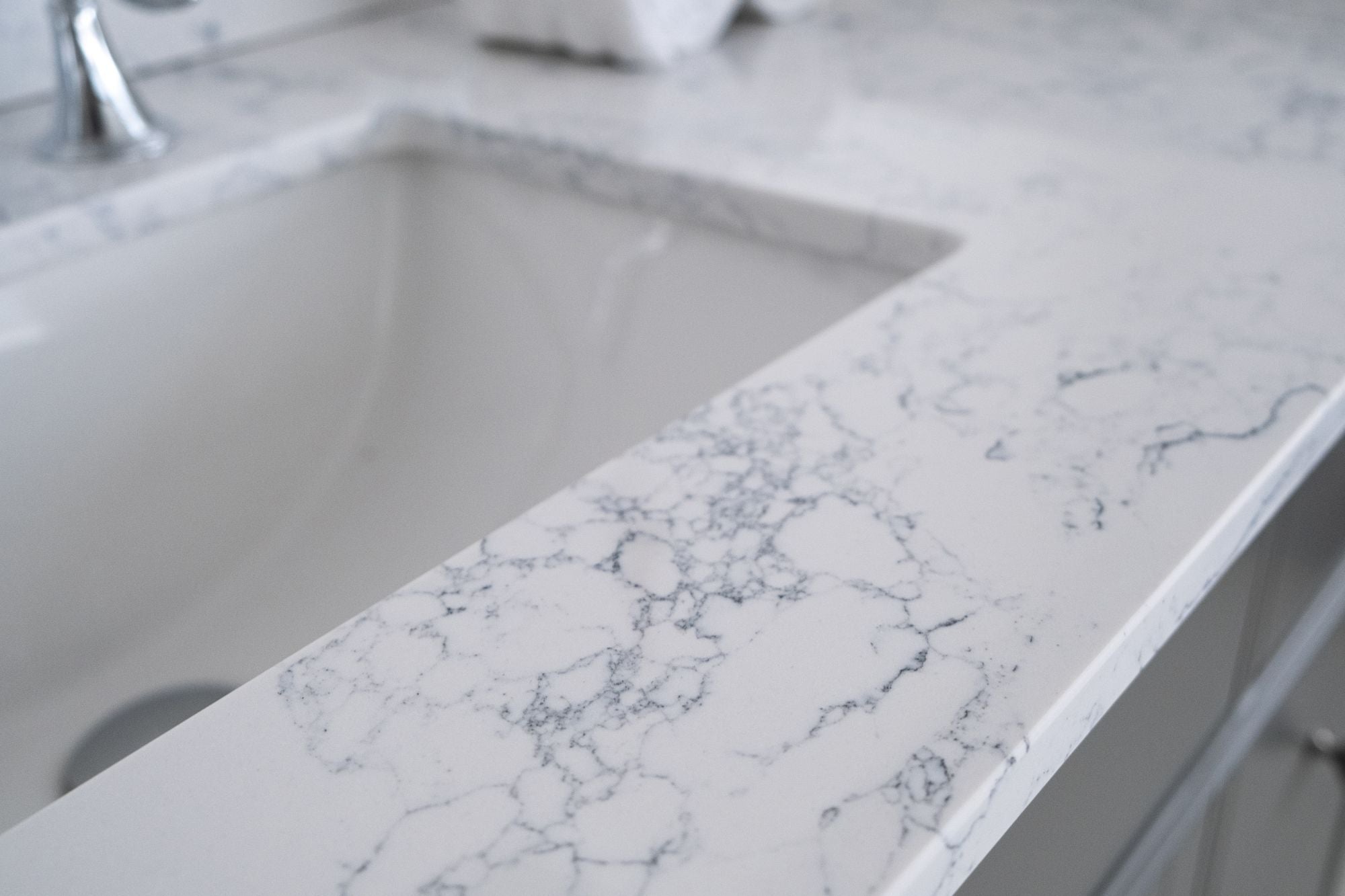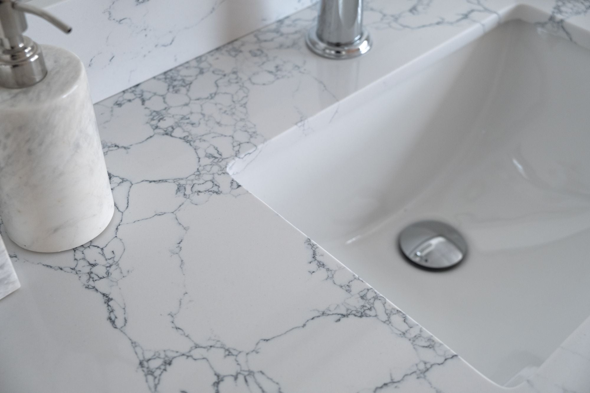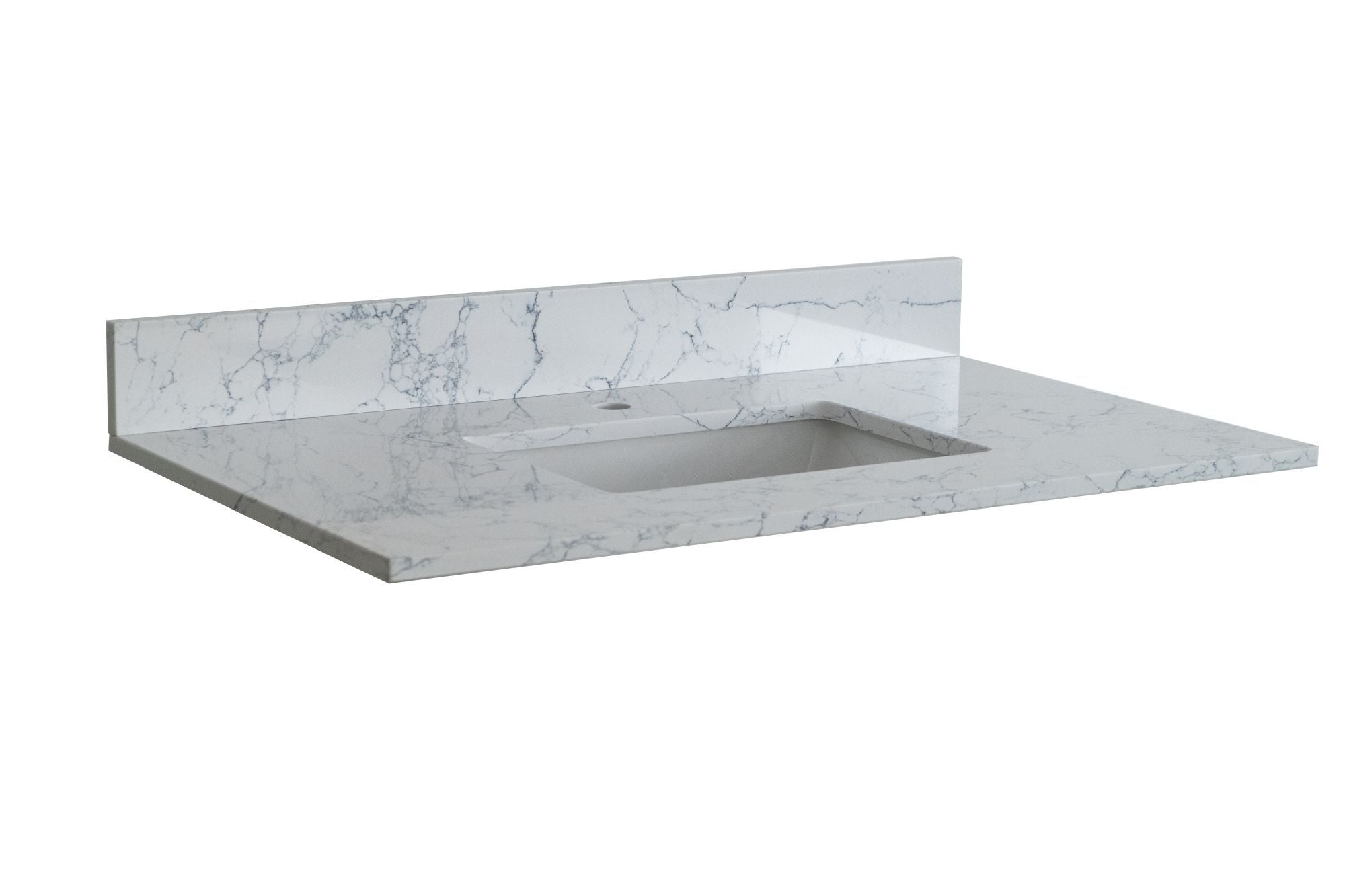 31"x 22" bathroom stone vanity top Carrara jade engineered marble color with undermount ceramic sink and single faucet hole with backsplash