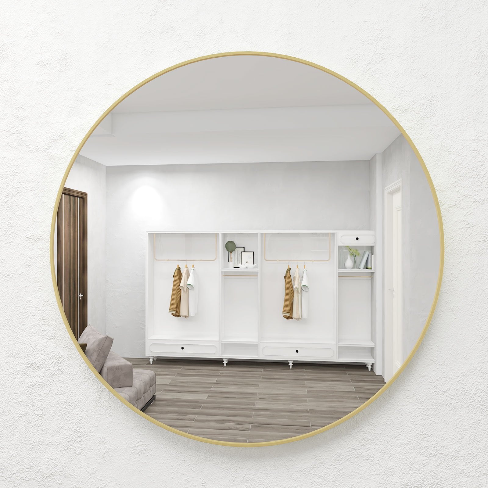 32" Wall Circle Mirror Large Round Farmhouse Circular Mirror(Black/Gold)