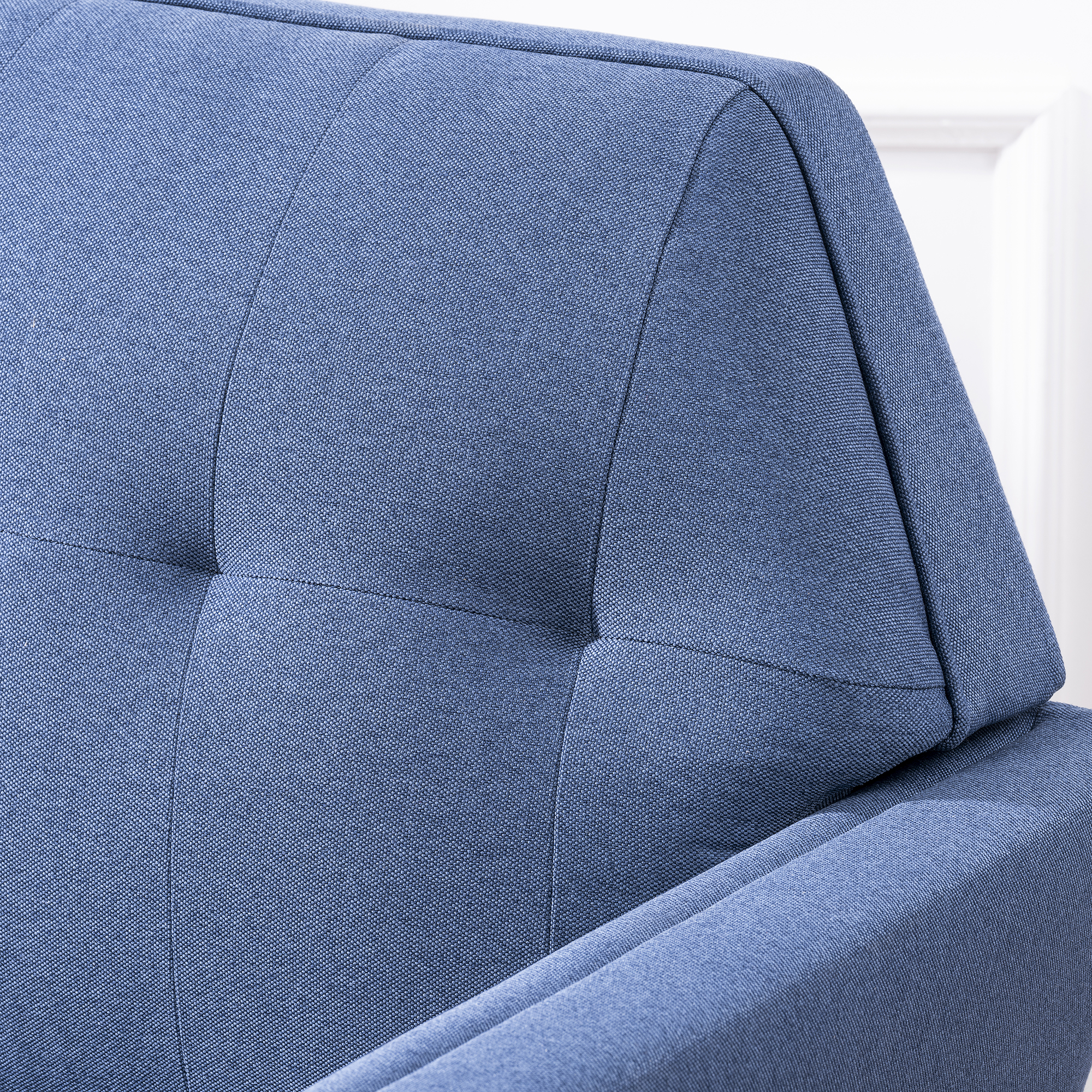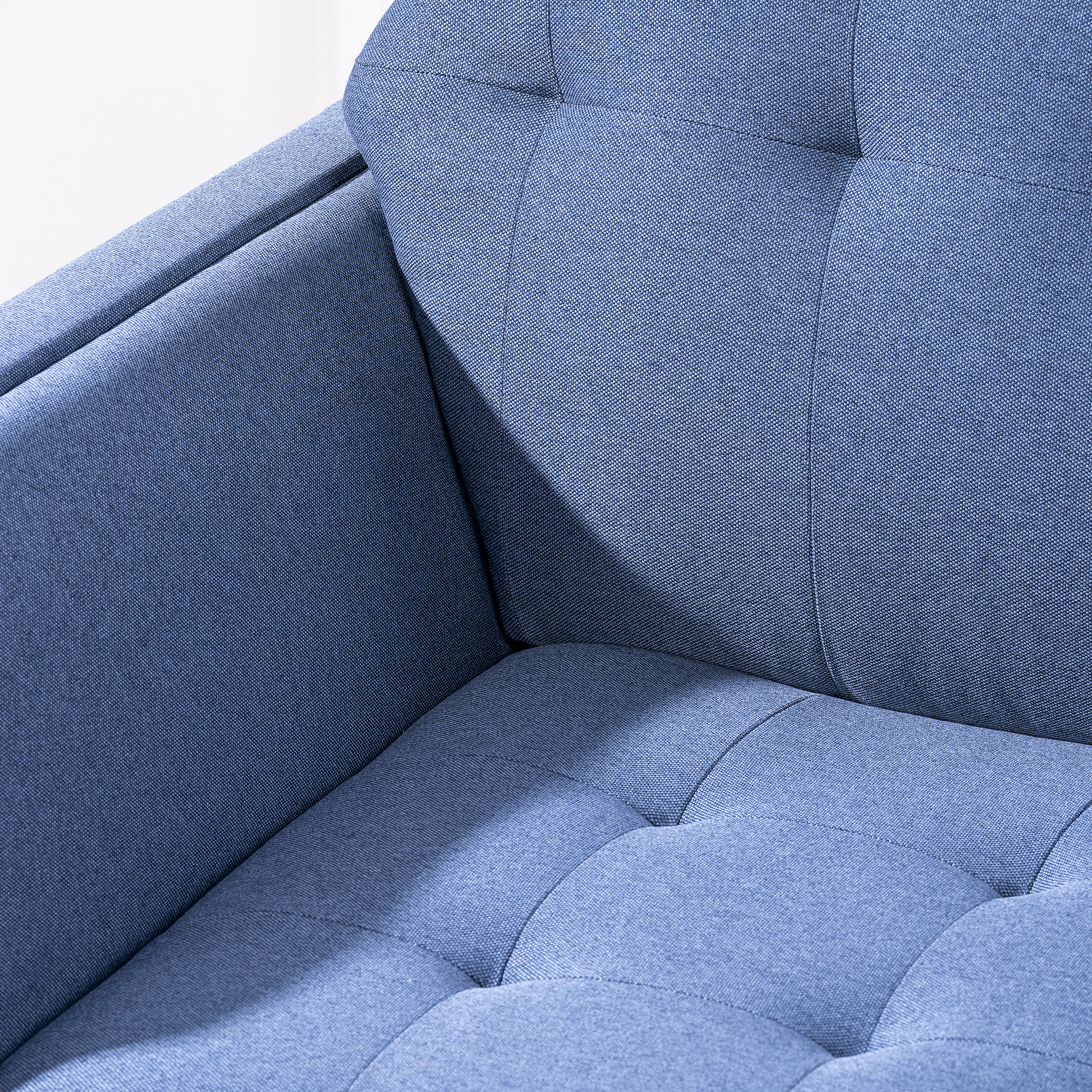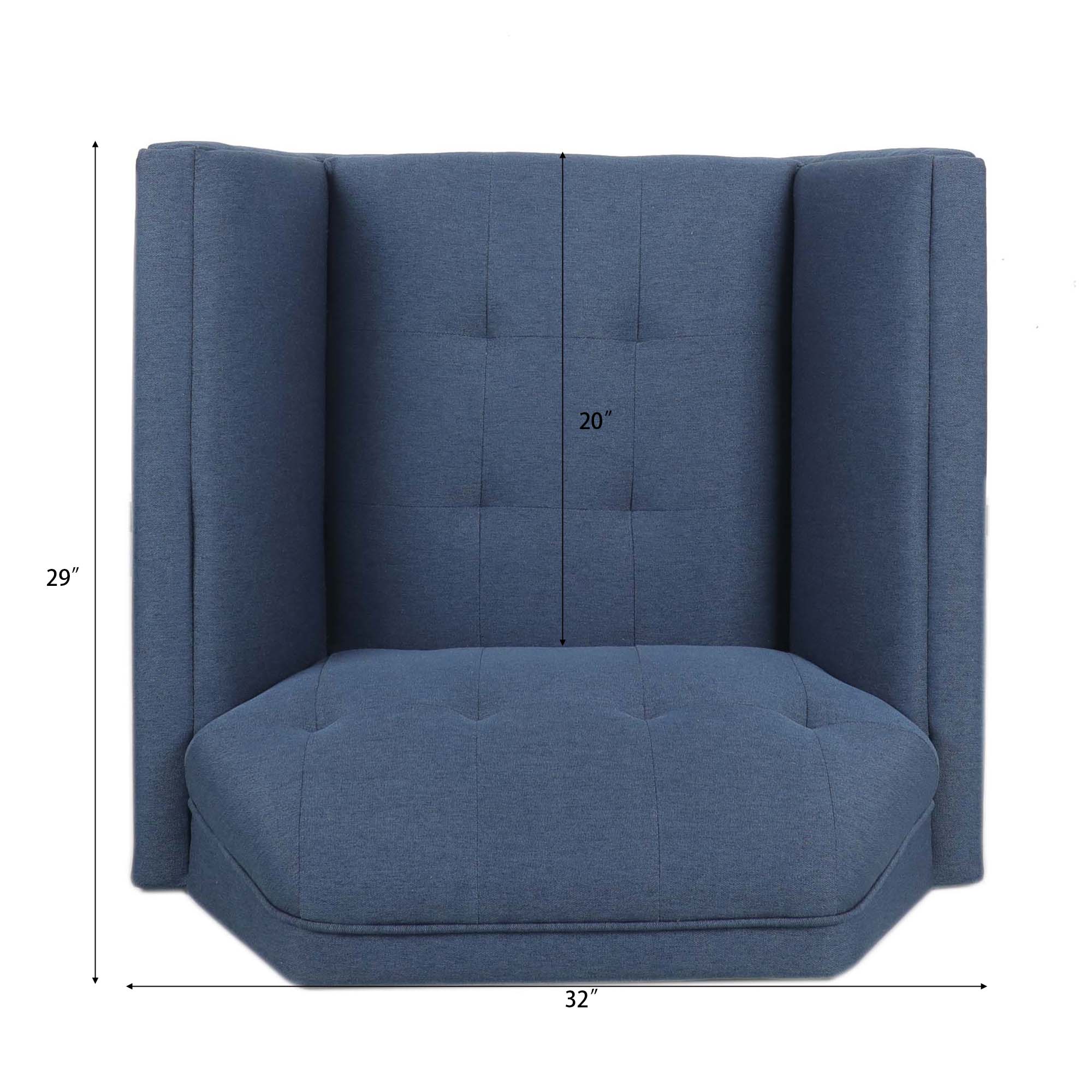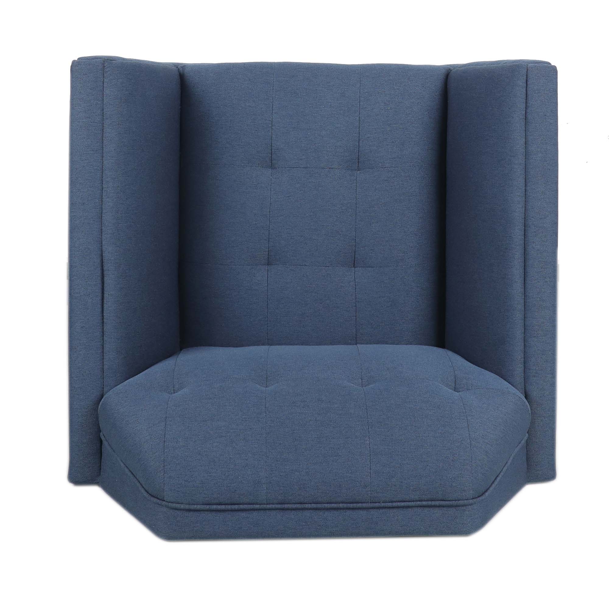 This armchair brings boxy lines to your bedroom or living space. It's made with solid wood and plywood frame and rests on solid wood legs in a warm color finish. Wrapped in 100% polyester upholstery, its foam-filled, sinuous spring cushions give you just the right. Amount of support and prevent sagging over time. It strikes an angular, hexagonal silhouette with flared arms and splayed legs for a mid-century modern feel. Button-tufted cushions add a tailored touch, effortlessly elevating your surrounding design scheme.