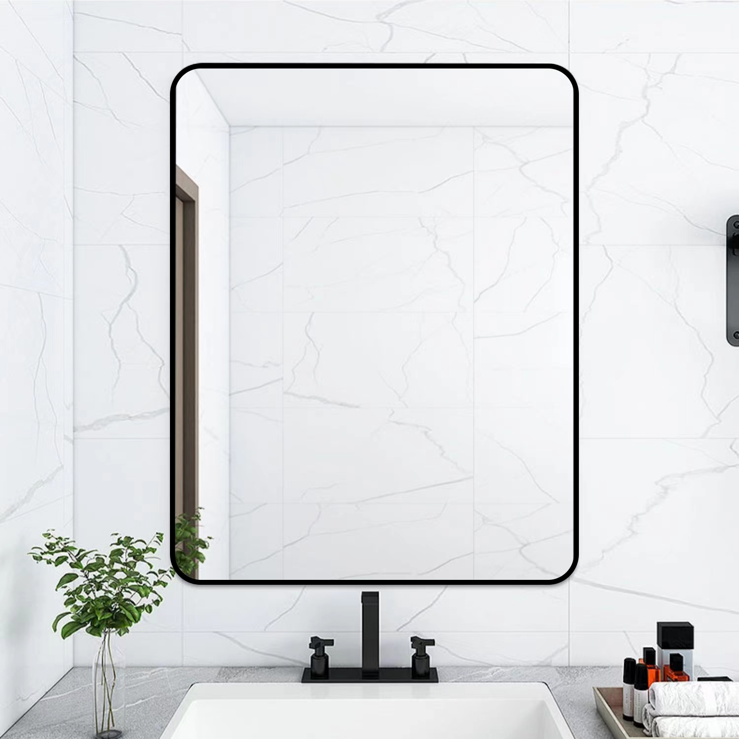 32 x 24 Inch Black Bathroom Mirror for Wall Vanity Mirror with Non-Rusting Aluminum Alloy Metal Frame Rounded Corner for Modern Farmhouse Home Decor