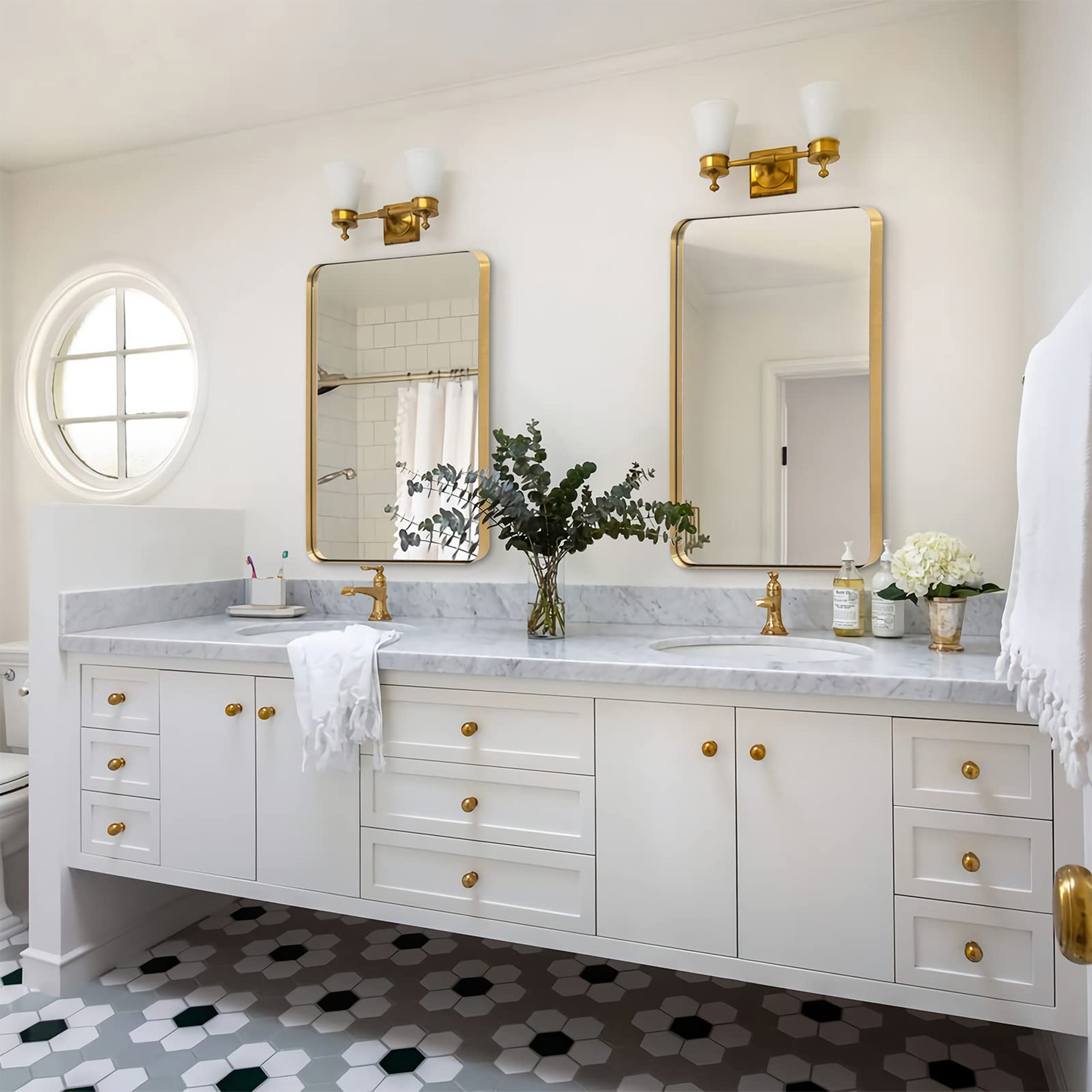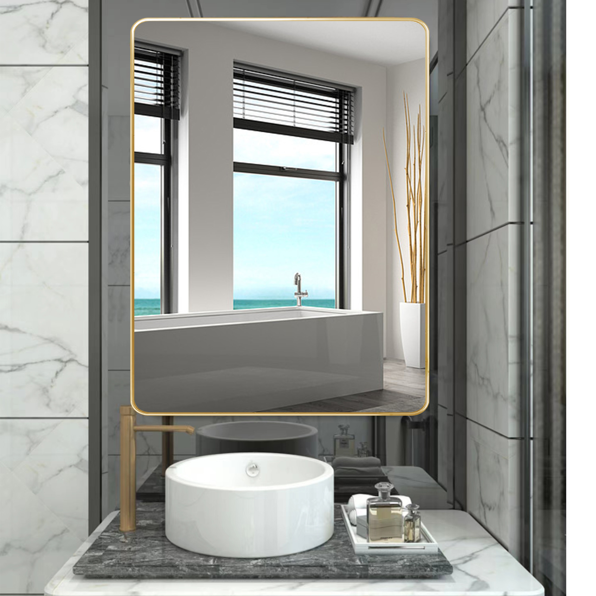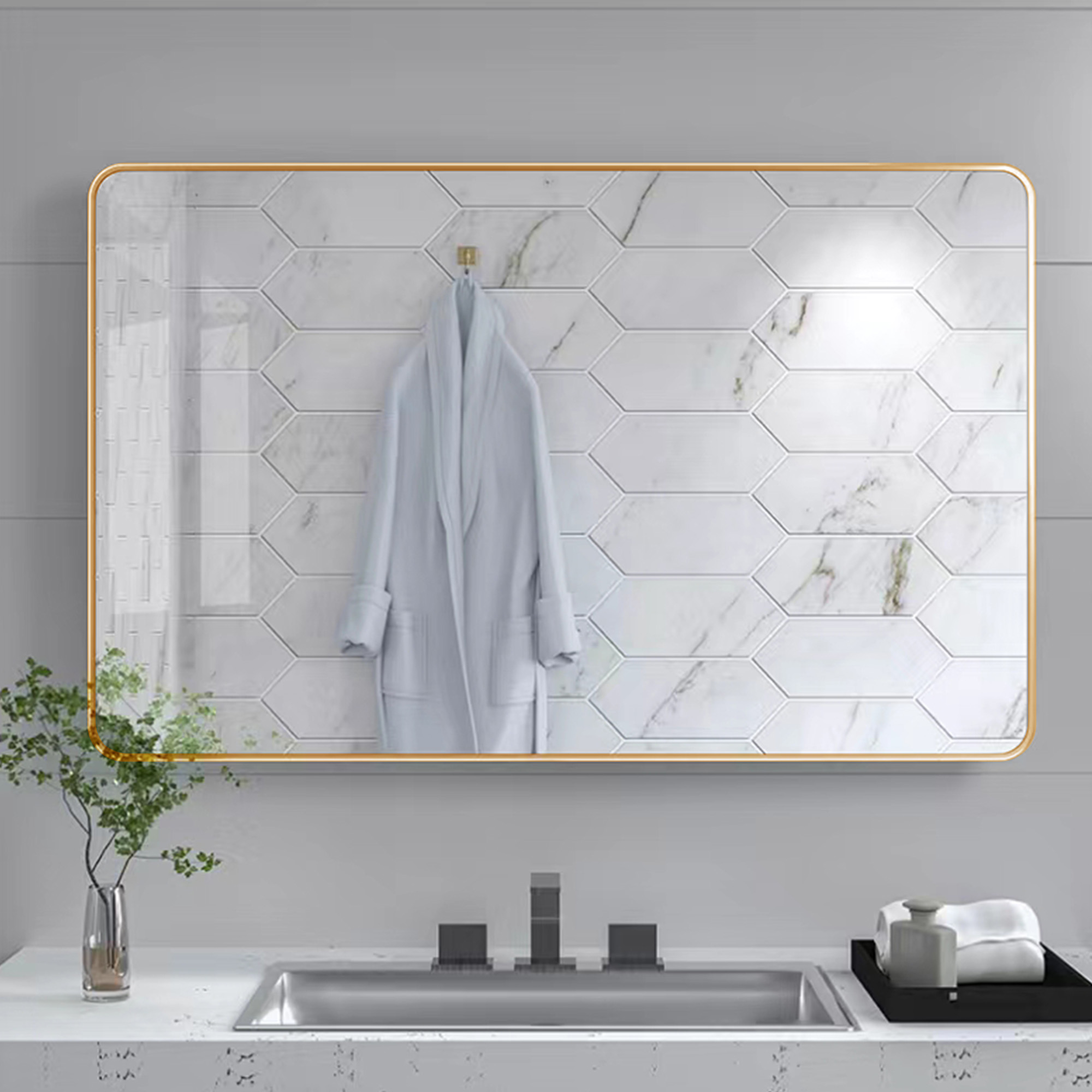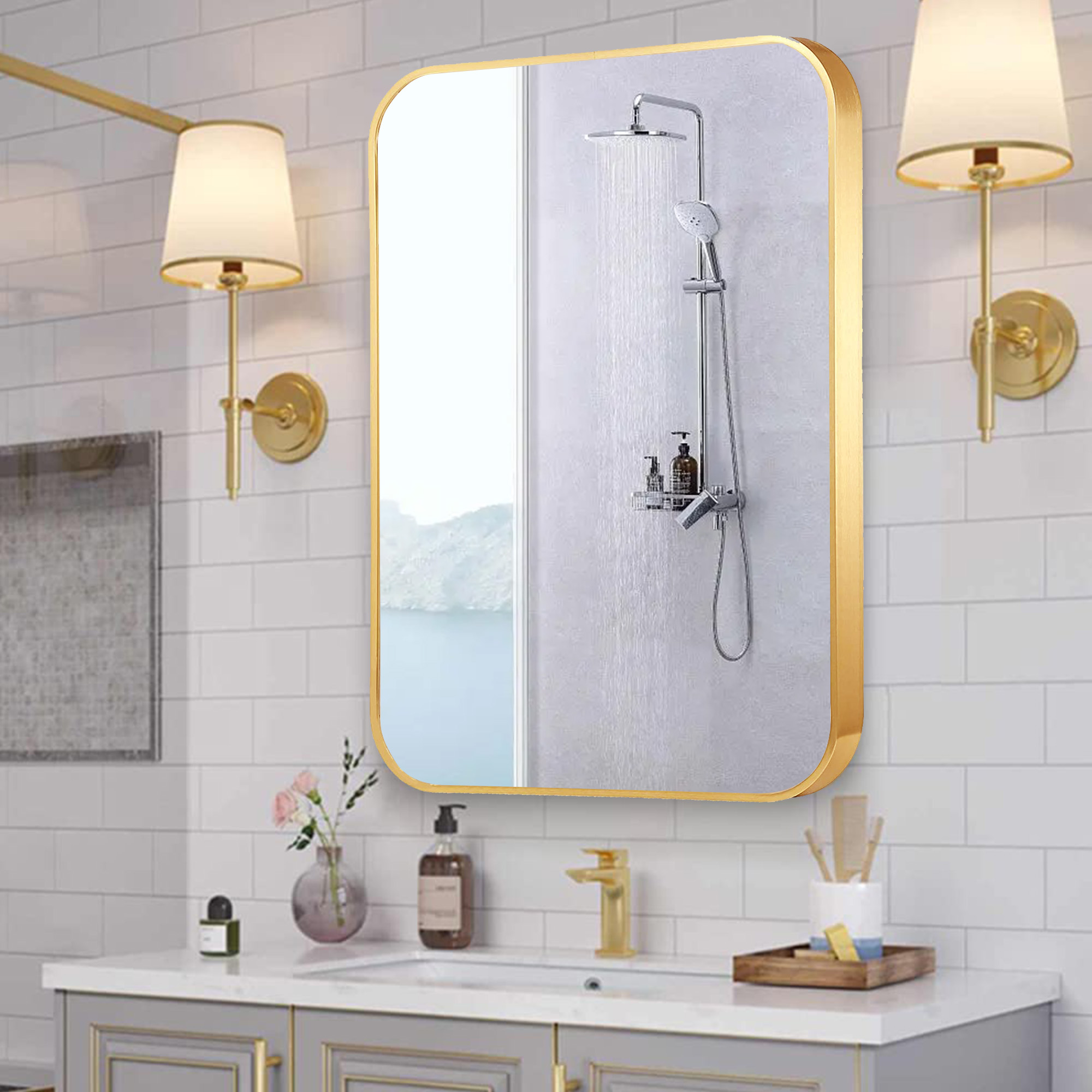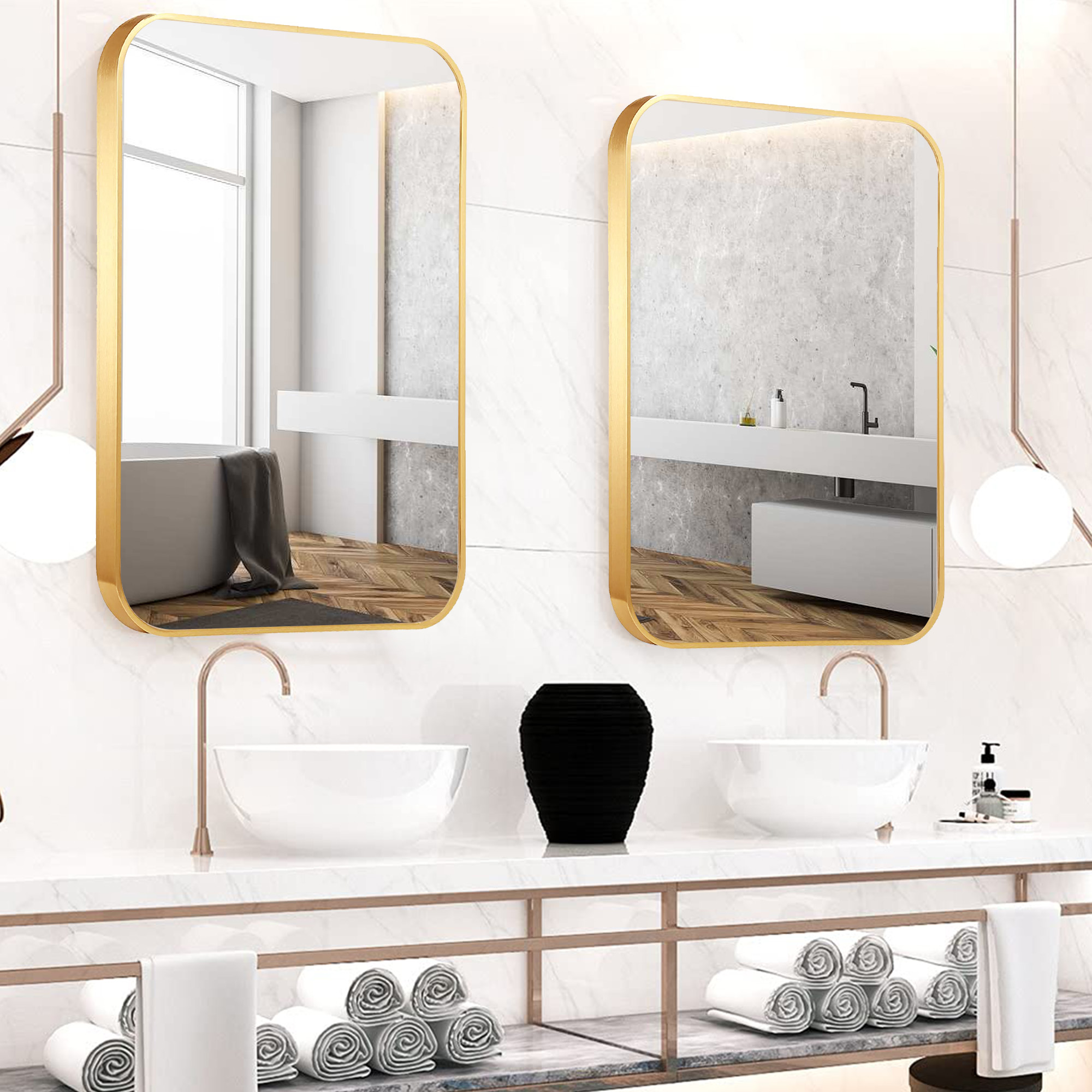 Our bathroom mirror adopts 4-layer float technology to ensure 1:1 restoration of the real image, no distortion, and fast dispersion of fog. The metal frame is made of high-quality aluminum alloy and thick baking paint.