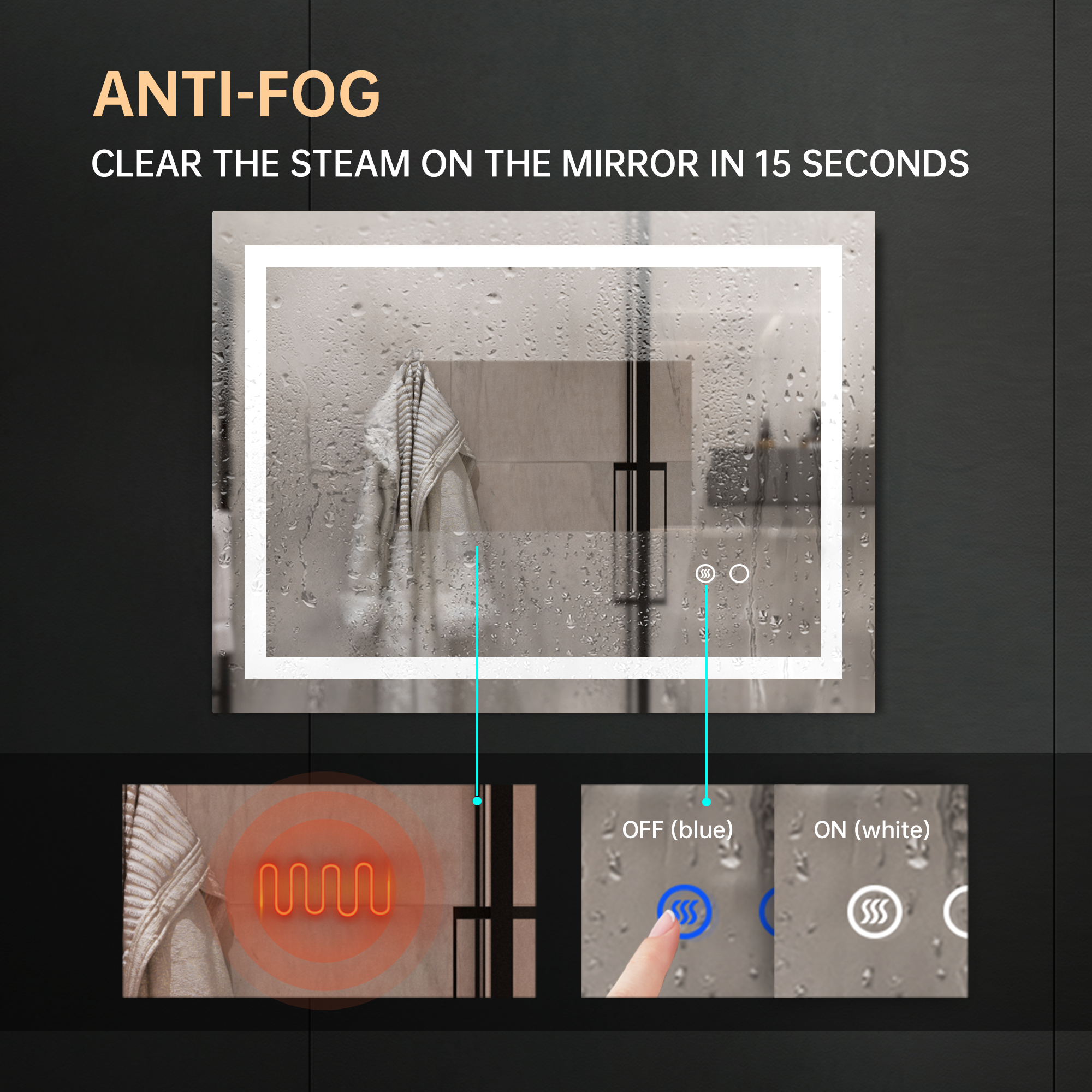 [Unique design]: The mirror power switch and anti-fog switch are separate control. Turn on the anti-fog switch when necessary, safe and energy-saving. This built in anti-fogging function means no need to constantly treat your mirrors with fog free spray, or rinse them multiple times per shower.
