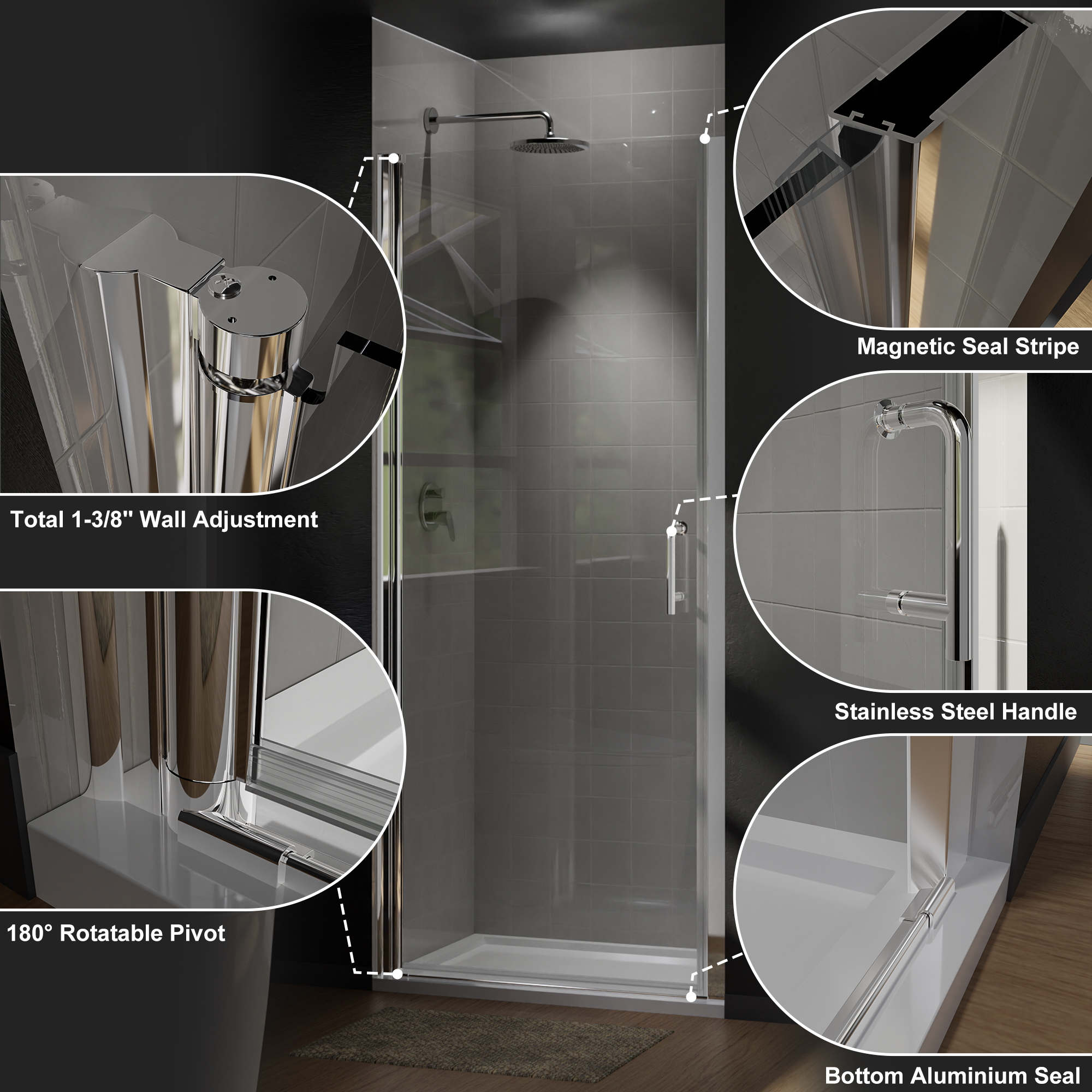 34*72" Semi-Frameless Pivot Shower Door in Chrome