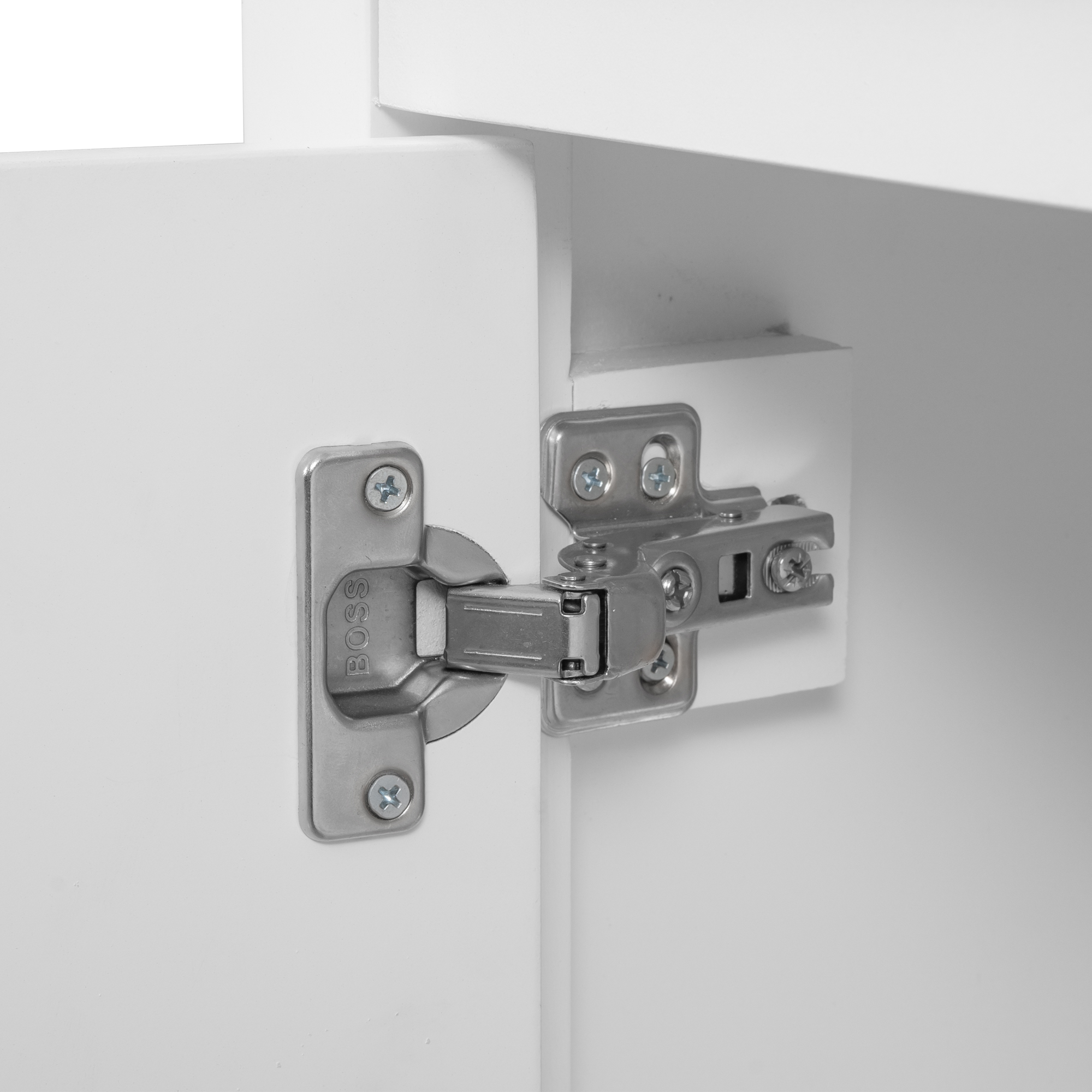 Demonstrate beauty and grace with the 36" white bathroom vanity base to your room. The vanity's frame is crafted out of solid pine wood and features a painted finish, with raised groove pattern design, tapered feet, and zinc alloy hardware for an added element of beauty and grace. Fully finished inside and out ensures that the vanity is water and moisture-resistant. The storage cabinet with two doors and drawers allows a big space to store your essentials.