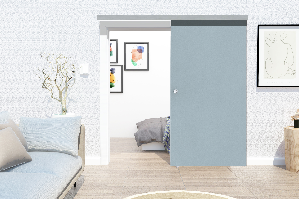 This sliding door offers a humbly fashionable way to create the illusion of more space. The frosted glass add the privacy for the room divide