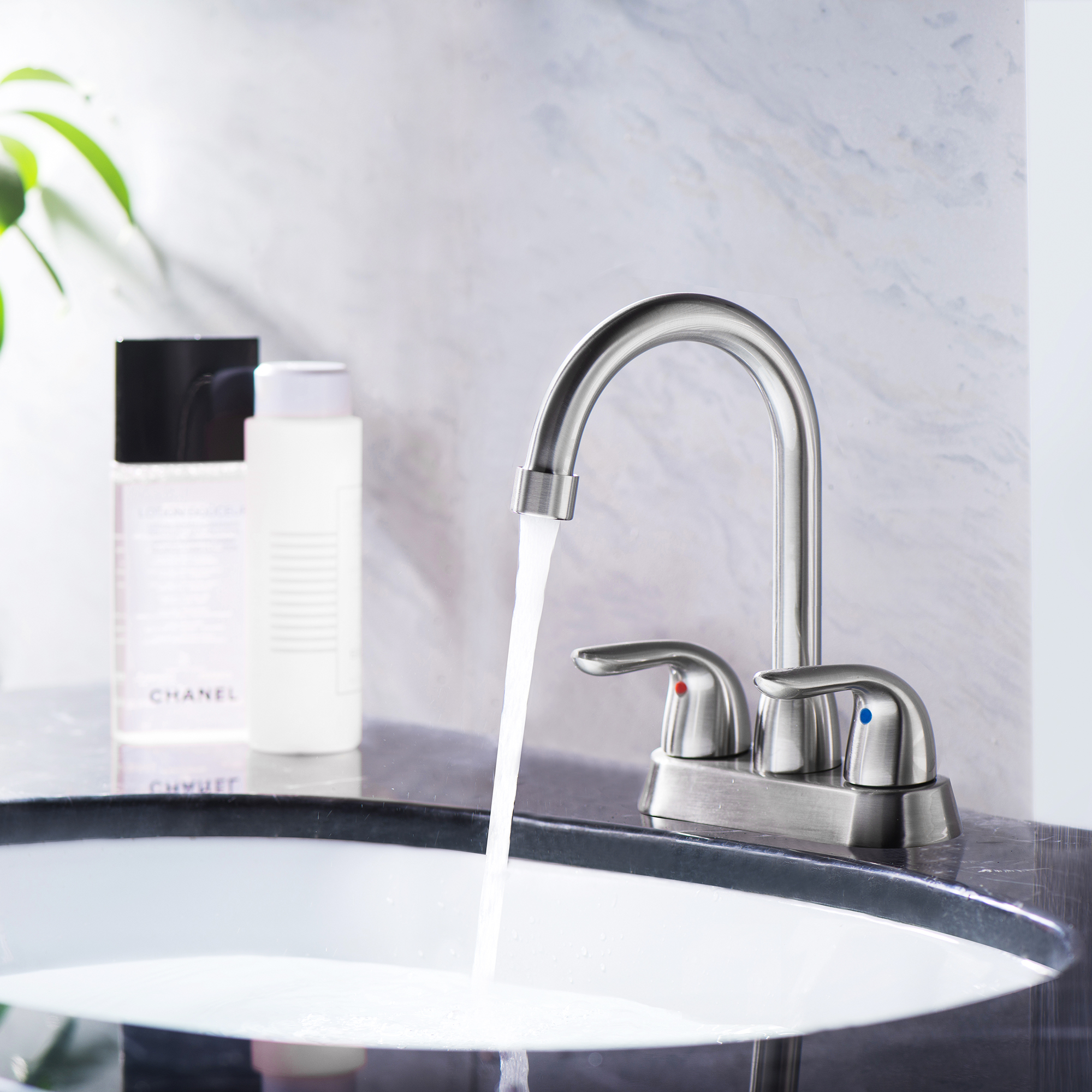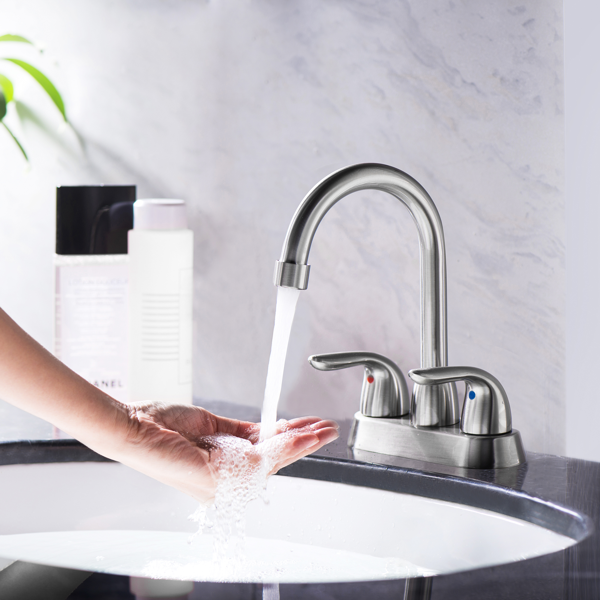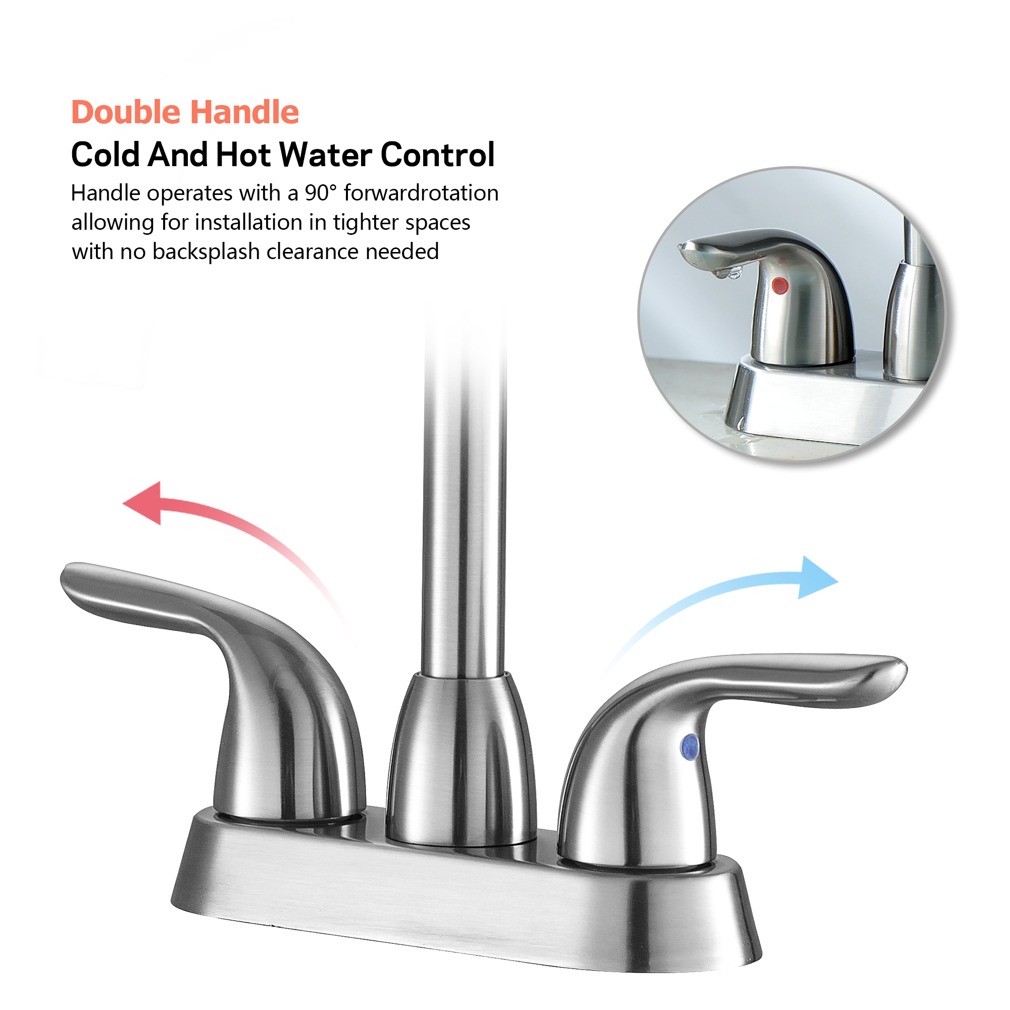 4 Inch 2 Handle Centerset Bathroom Faucet, with Pop up Drain and 2 Water Supply Lines, Brushed Nickel