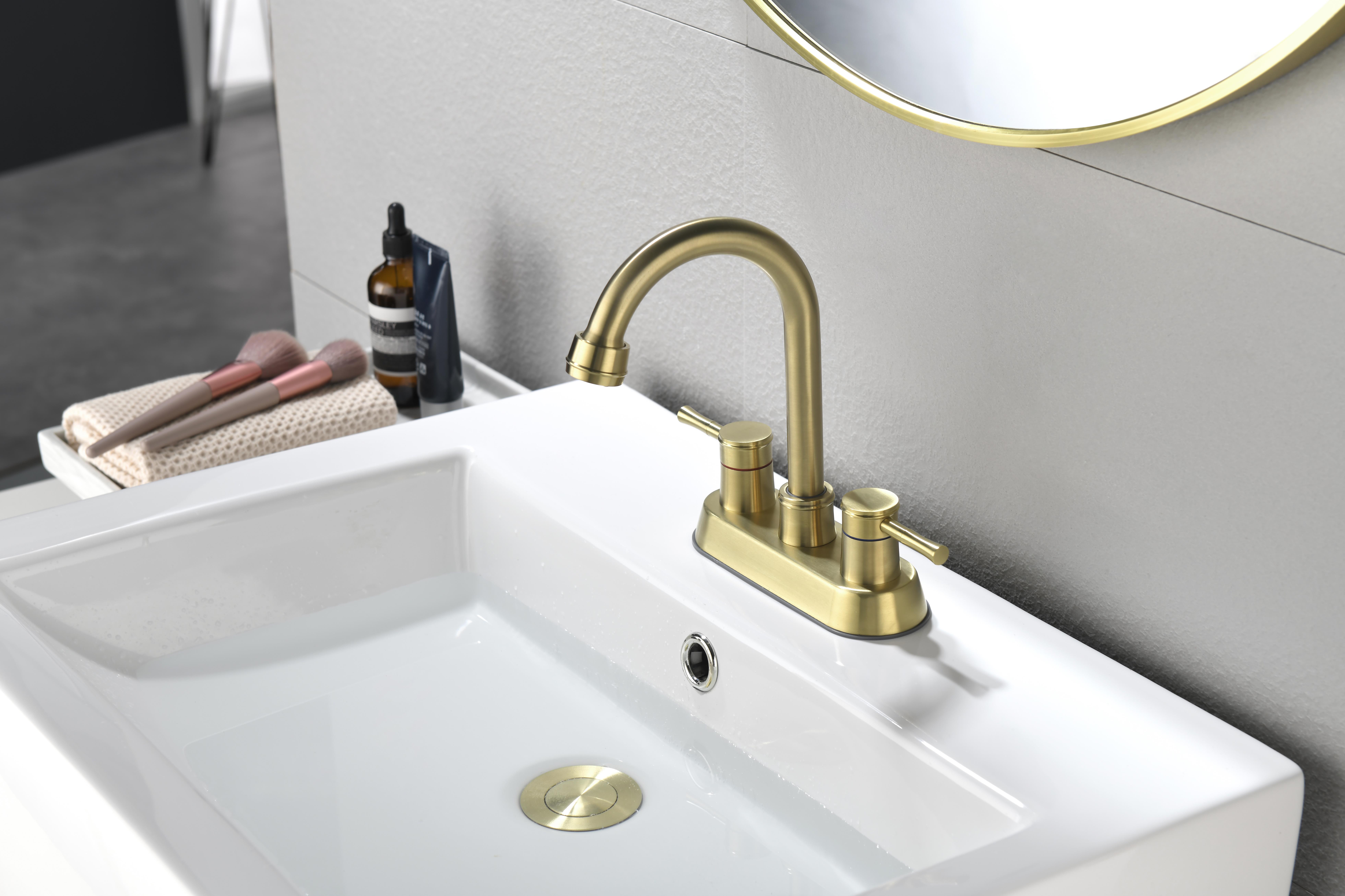 4 Inch 2 Handle Centerset Bathroom Faucet, with Copper Pop Up Drain and 2 Water Supply Lines