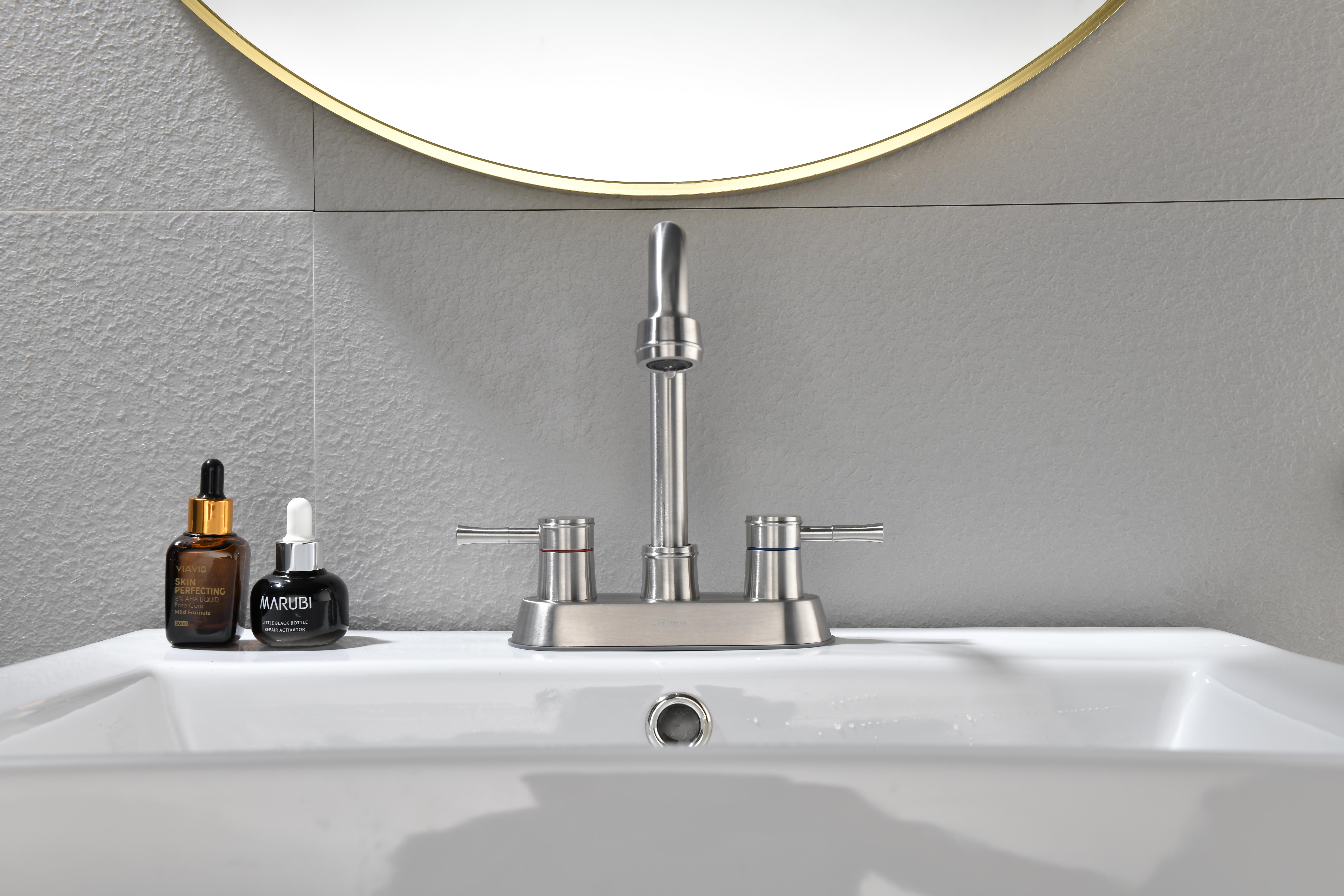 2-Handle 3-Hole Mount With 4-inch Centerset Design For Easy Installation❤ —— Centerset Design is easy to install by yourself without a plumber! SAVE PLUMBING INSTALLTION FEE WITH FAUCET!