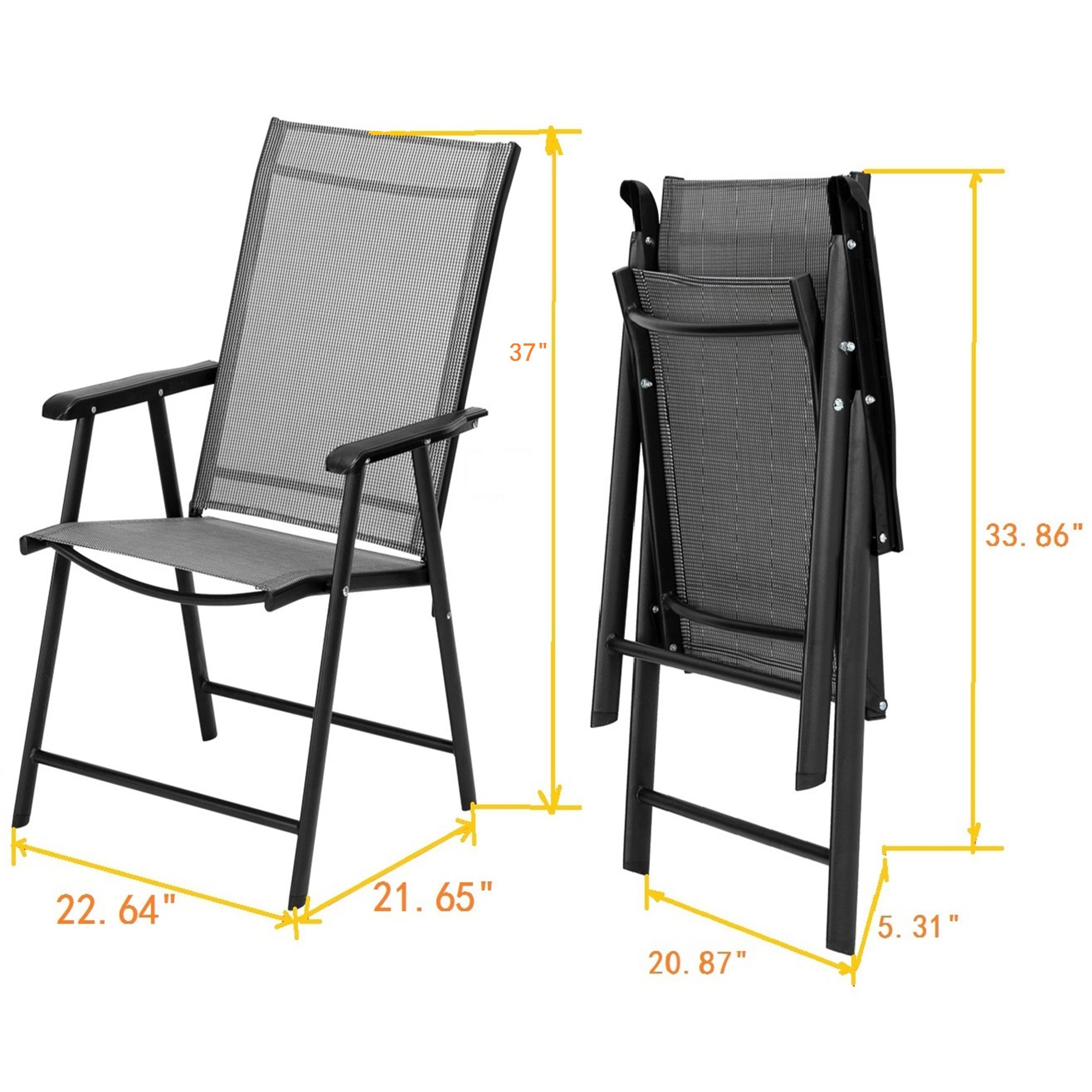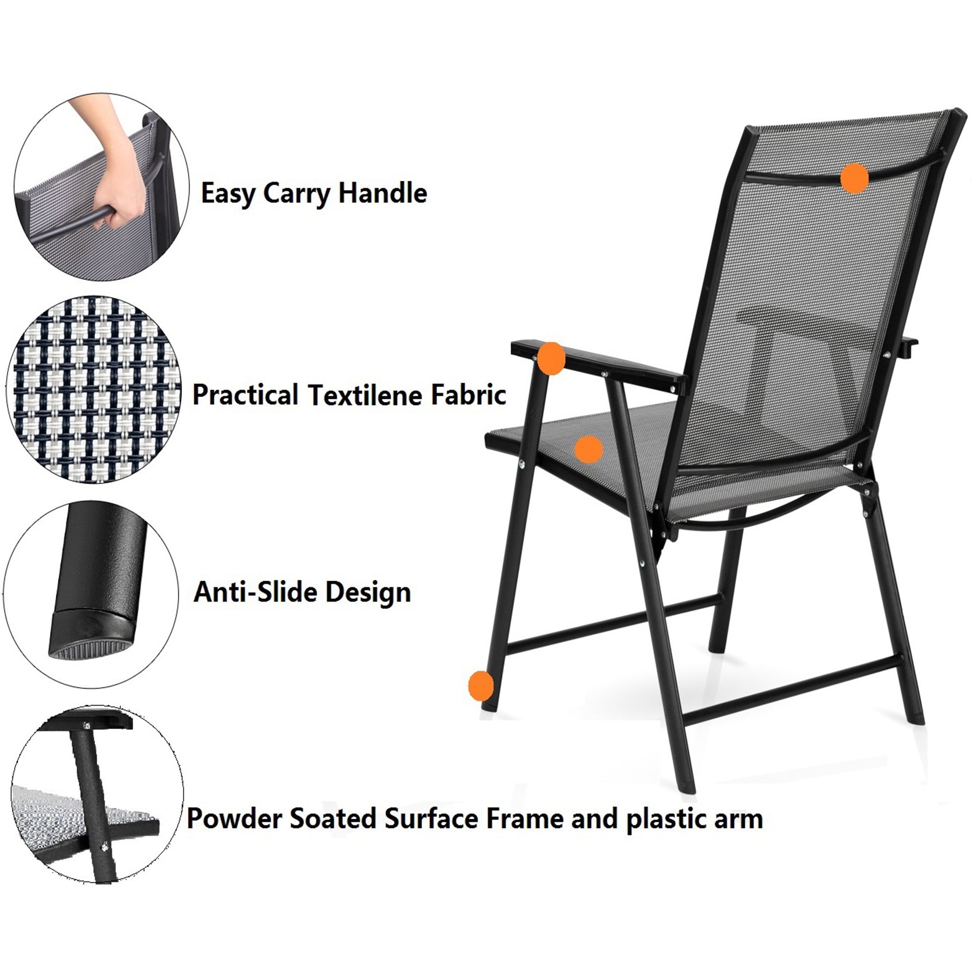 Sturdy & Durable: The chair is constructed by strong steel frame, which enhance the stability and sturdiness of the chair set. In addition, the powder coated surface and plastic arms can prevent chair from rusting for long term use. Beside, the anti-slide on the feet will make the chair more stable when sitting on.