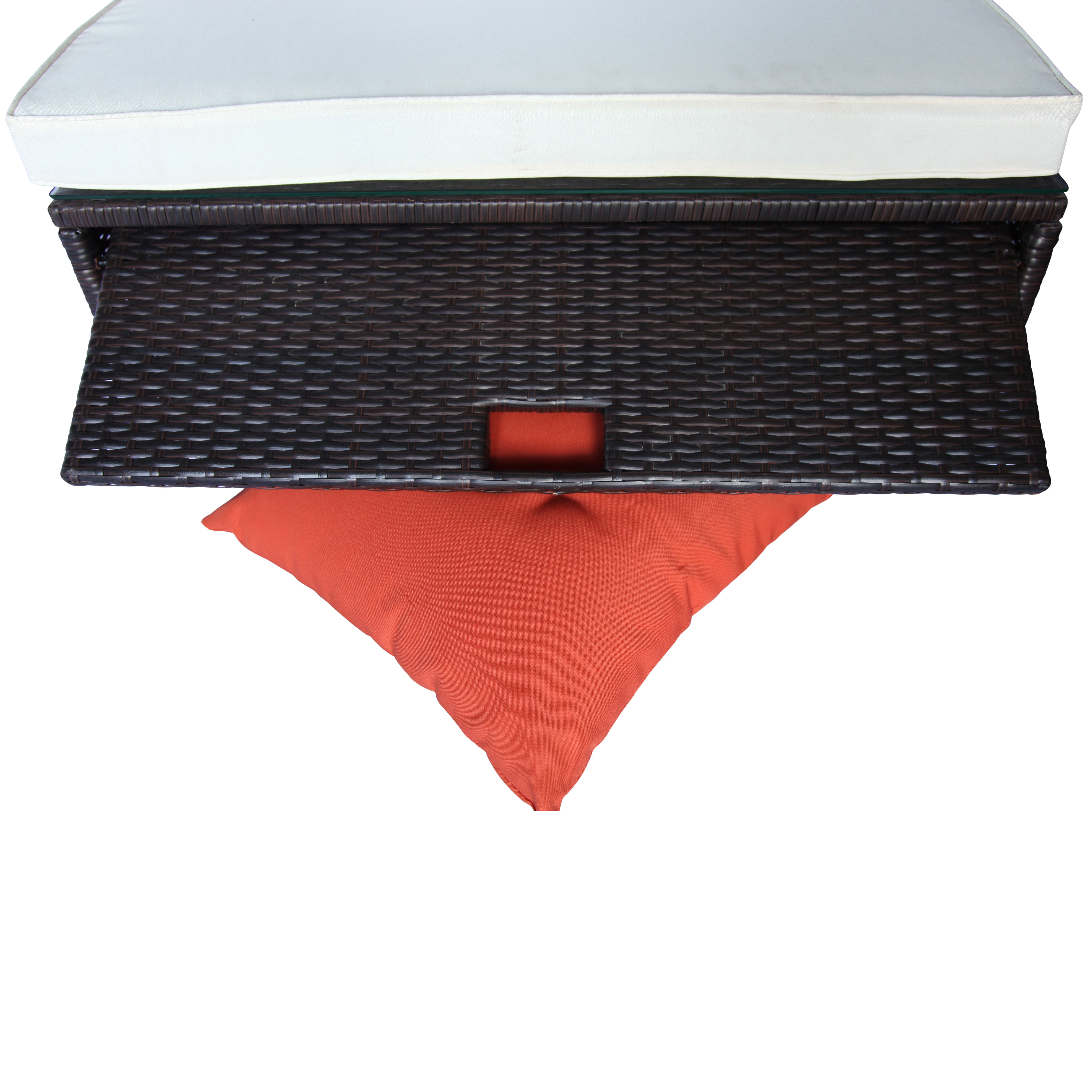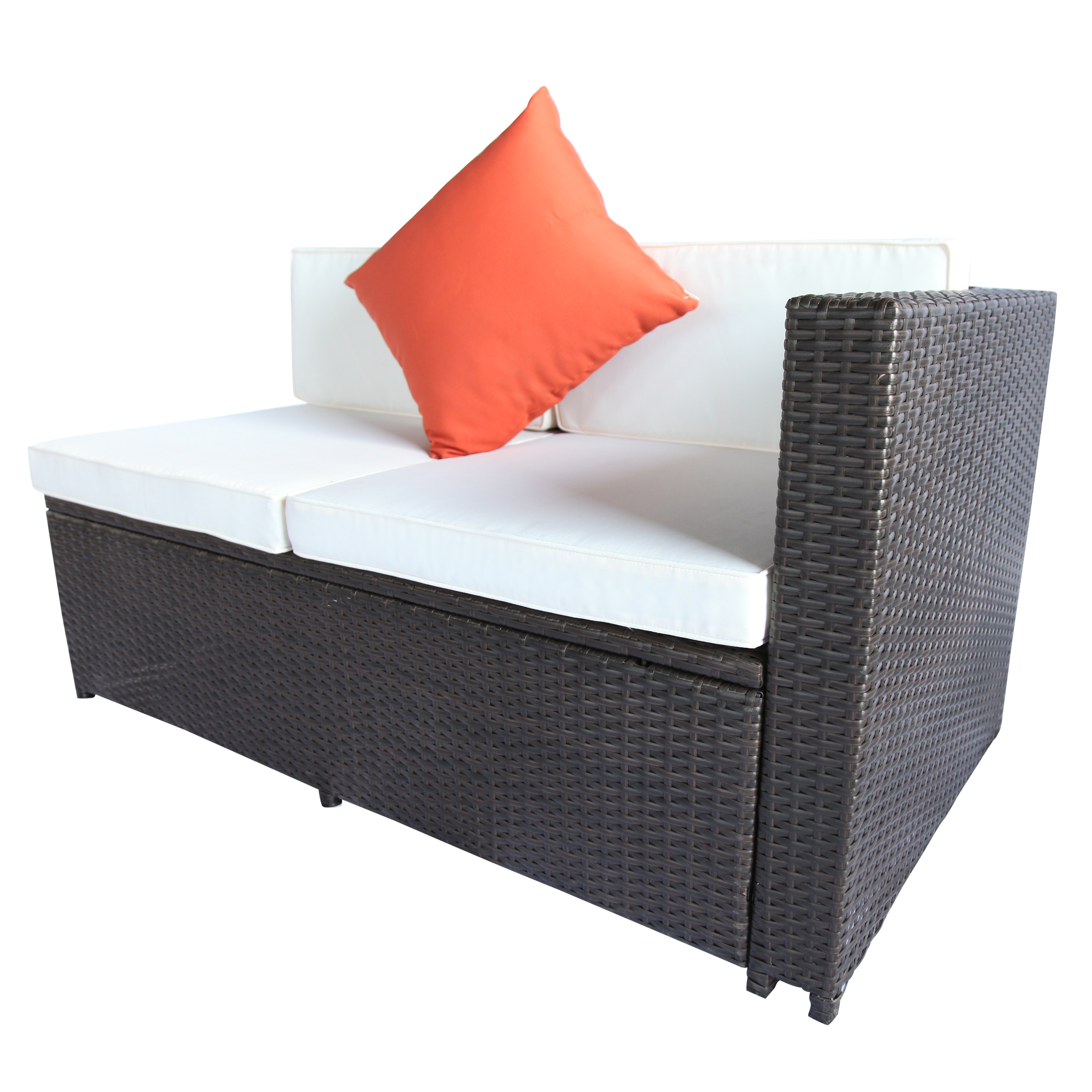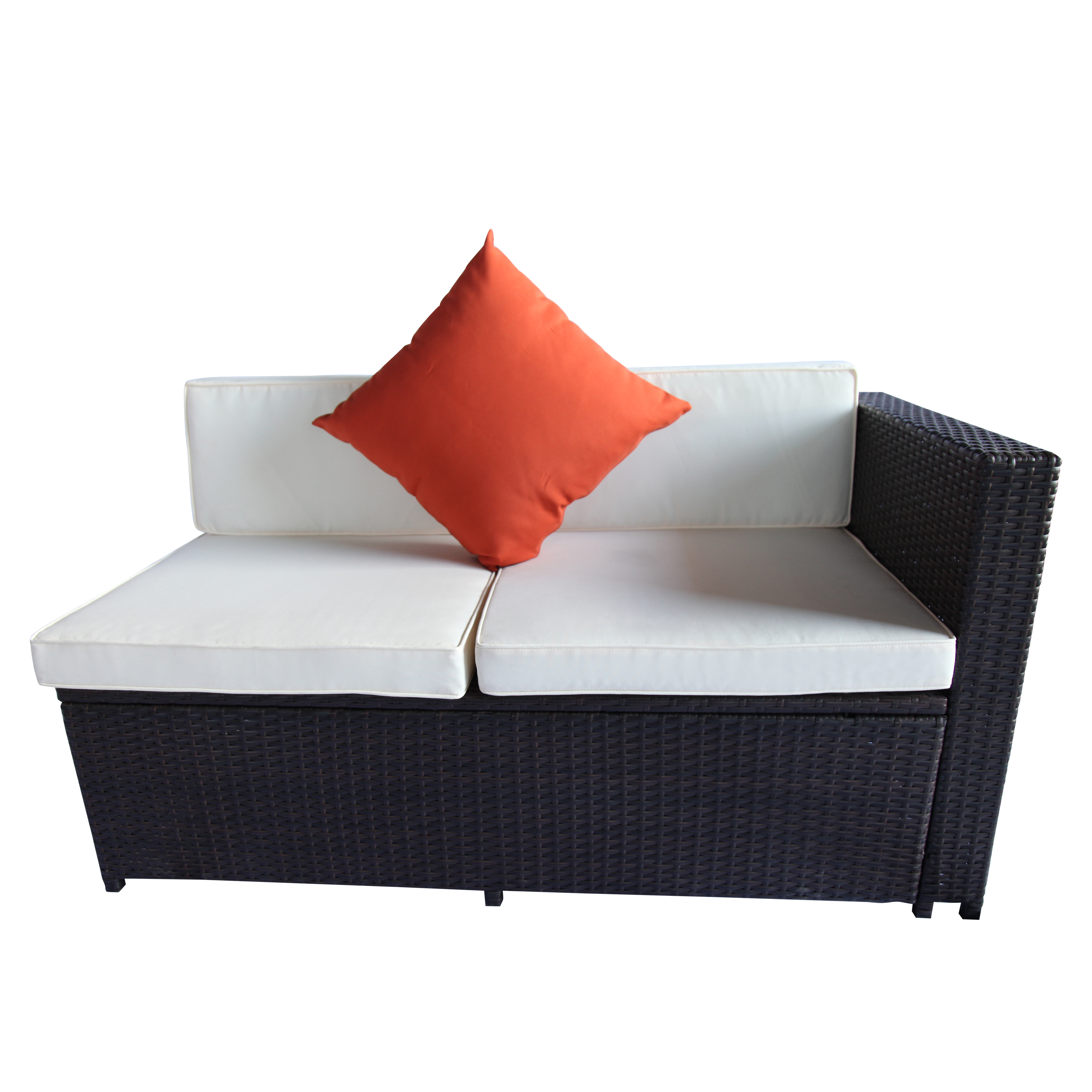 Color | Brown rattan+beige cushion+orange throw pillows |