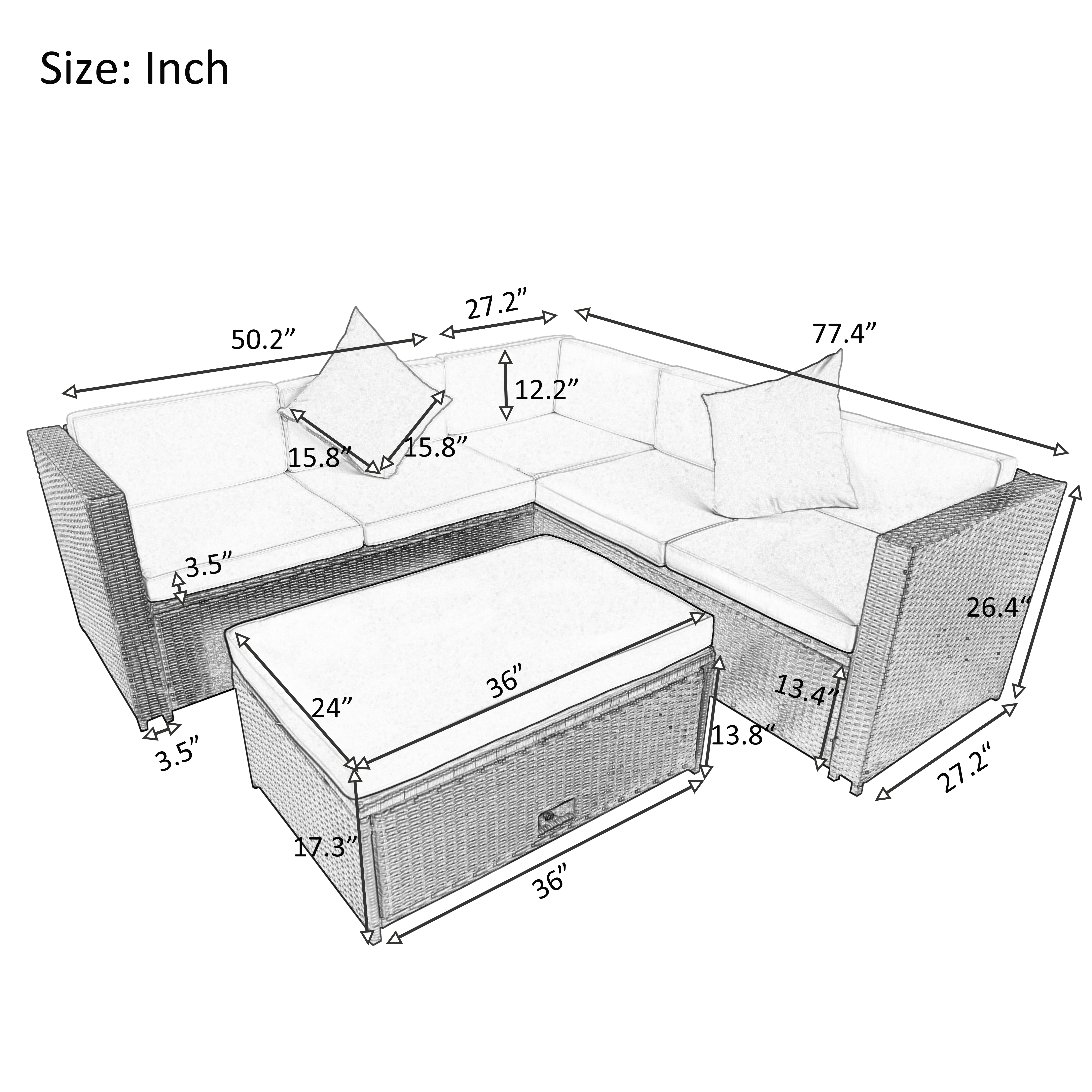 | Cushions : Seat cushion: 23.23 x 23.23 inch; Back cushion: 2-person sofa cushion: 23.23 x 12.2inch corner sofa cushion:20.5 x 12.6 inch ; Ottoman cushion:36 x 24 inch ; Throw Pillow:15.8x 15.8 inch |