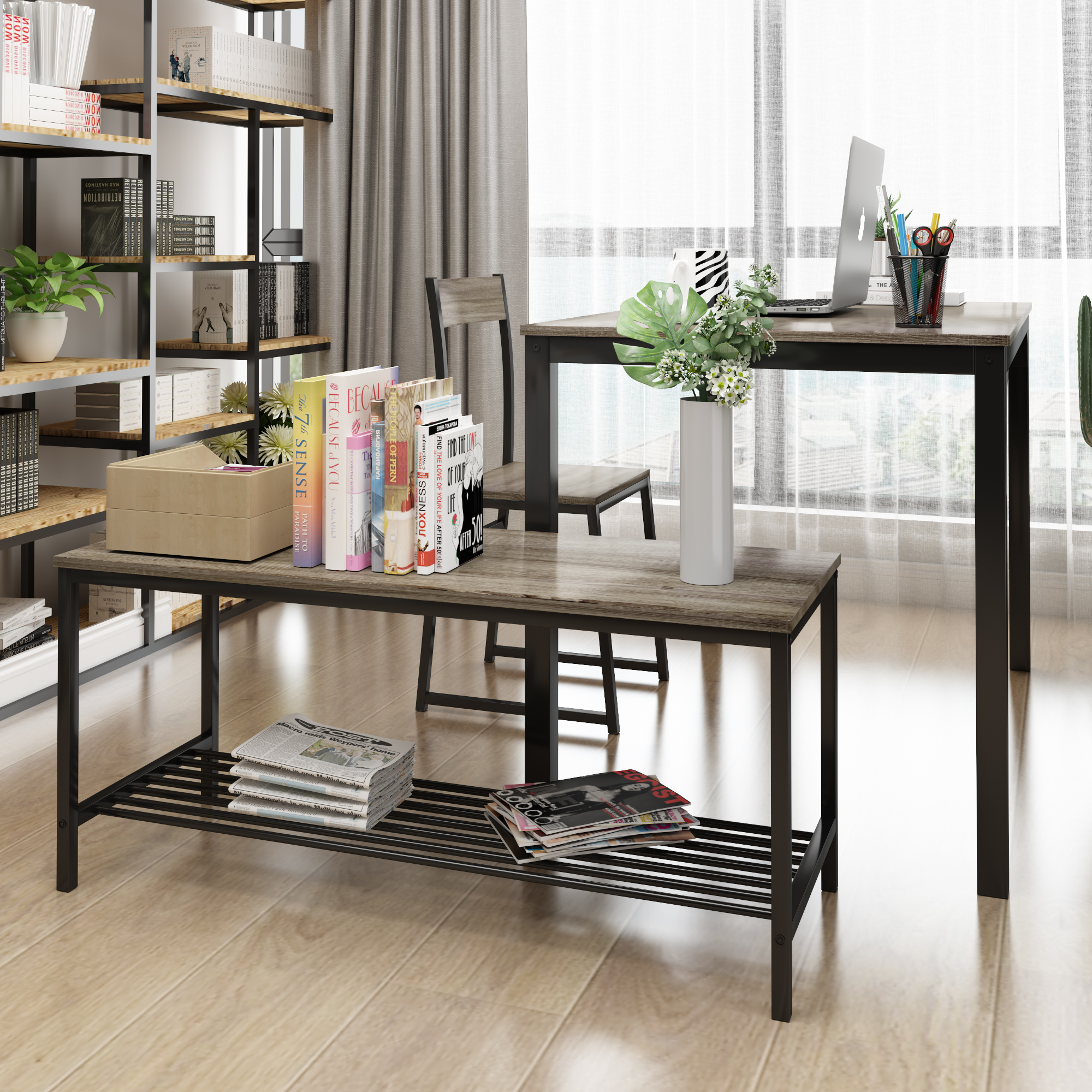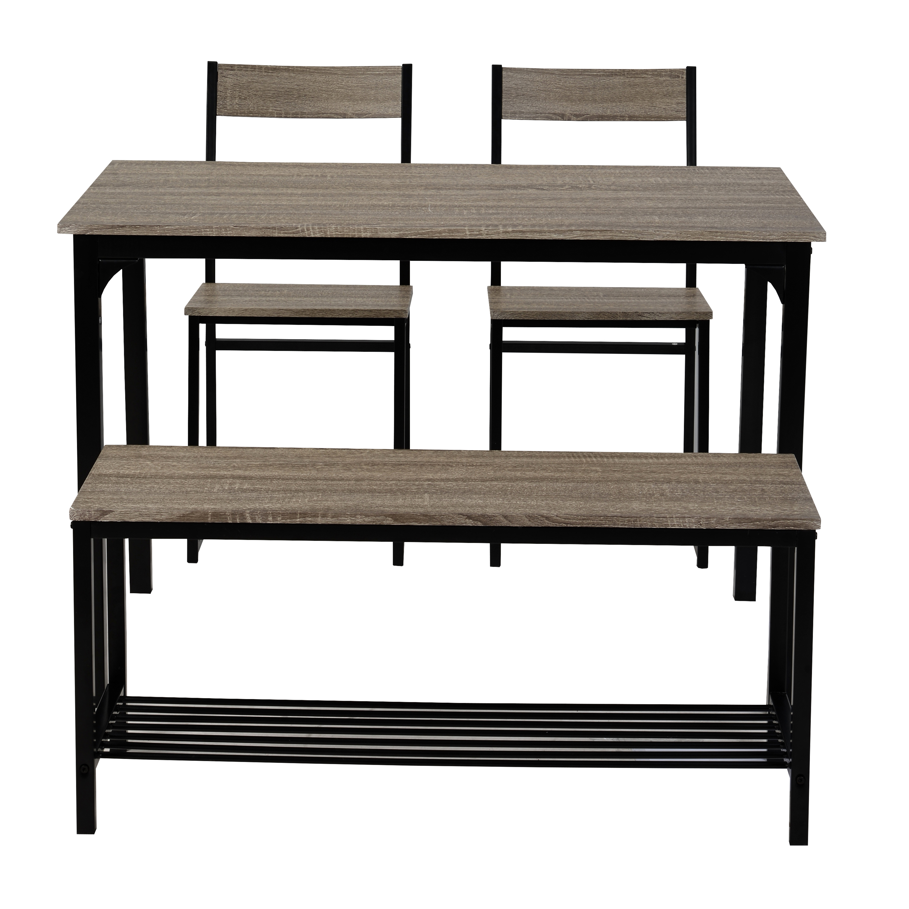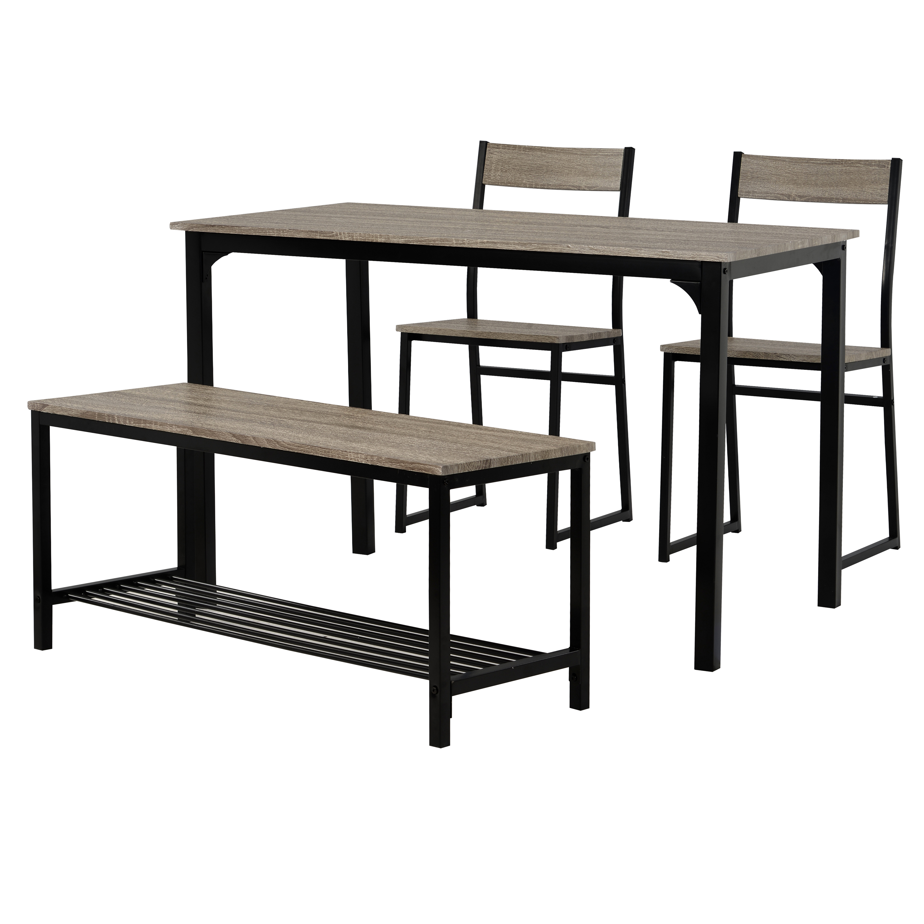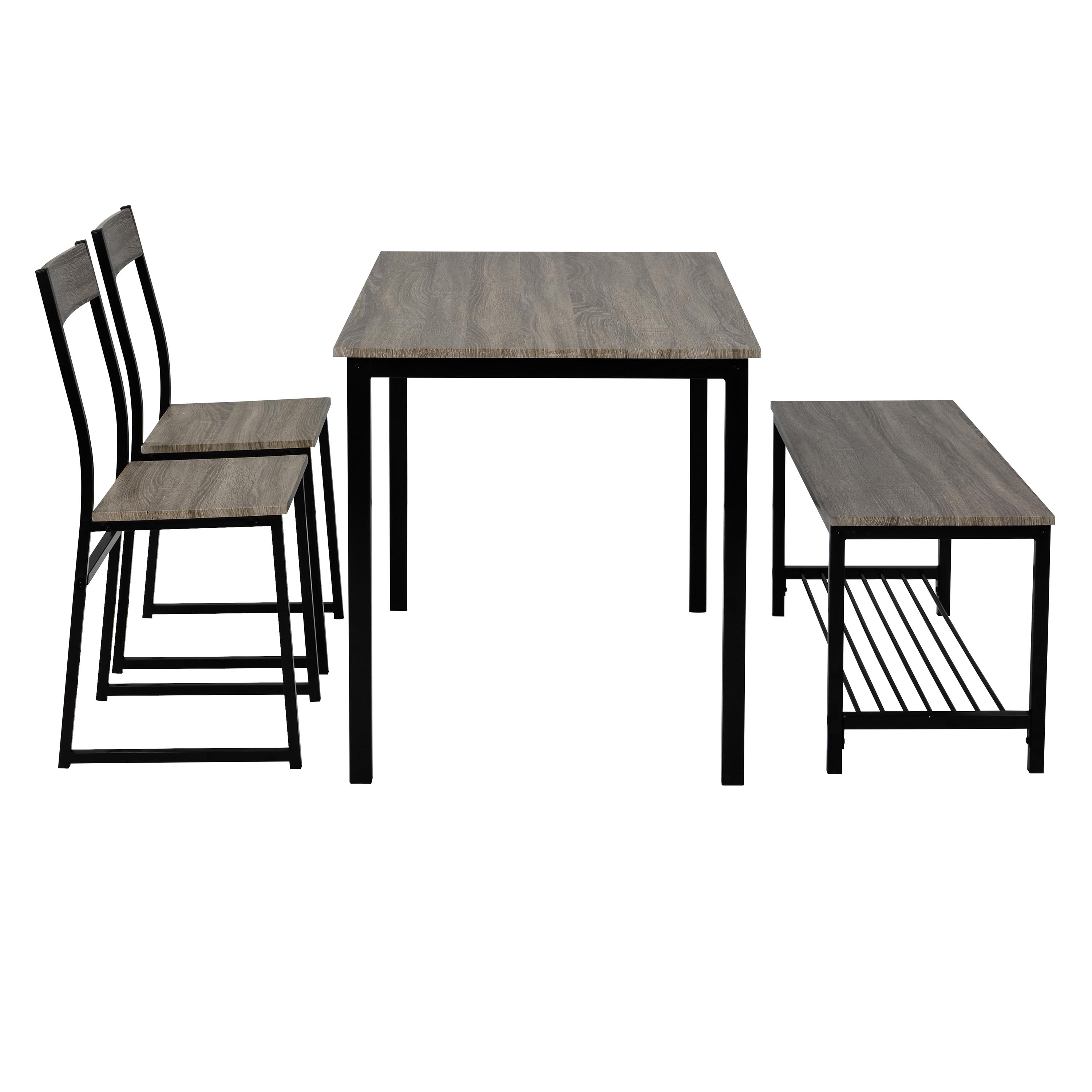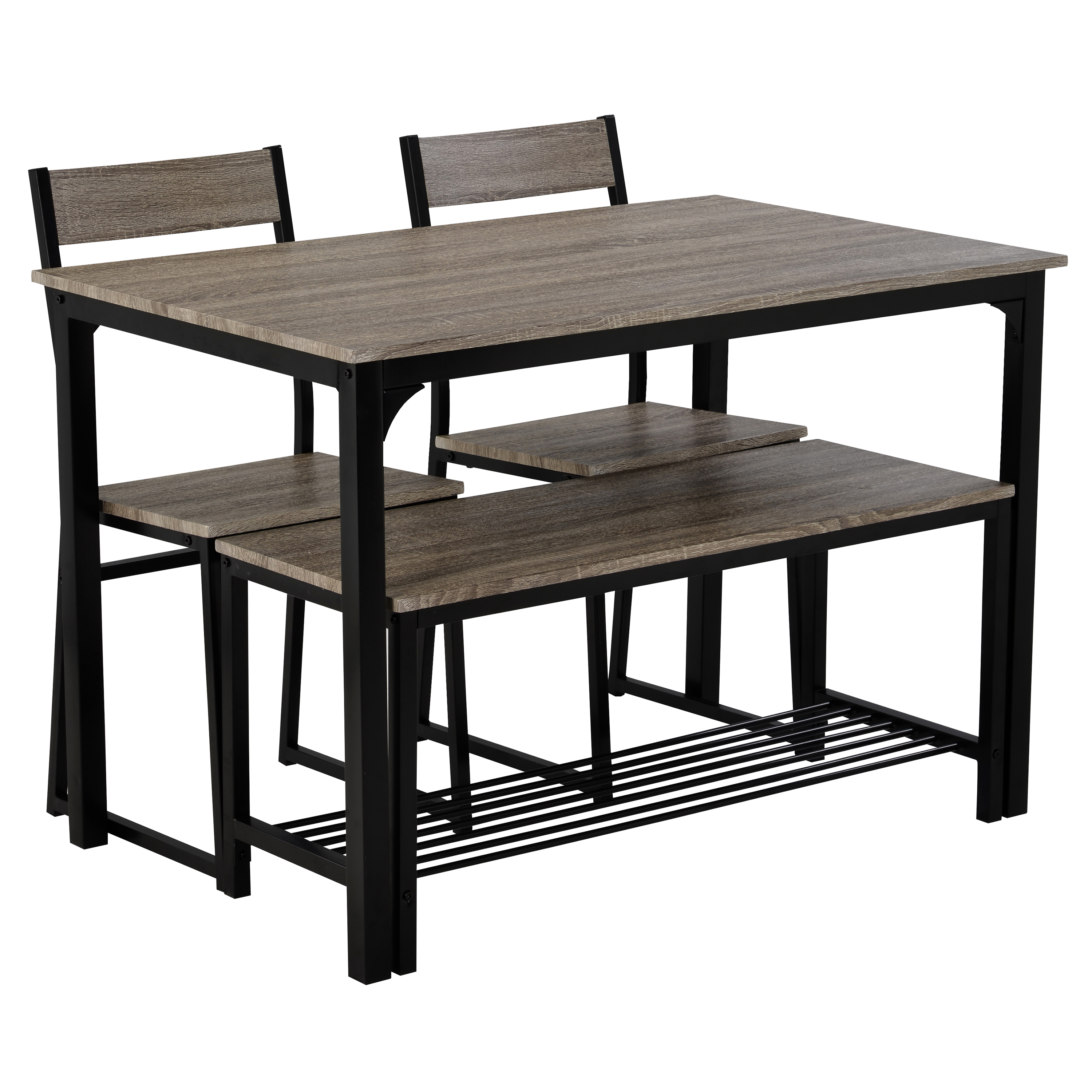 4 Piece Dining Set for 4 Kitchen Table Set Computer Desk with 2 Chairs and Bench for Home Dining Room, Gray