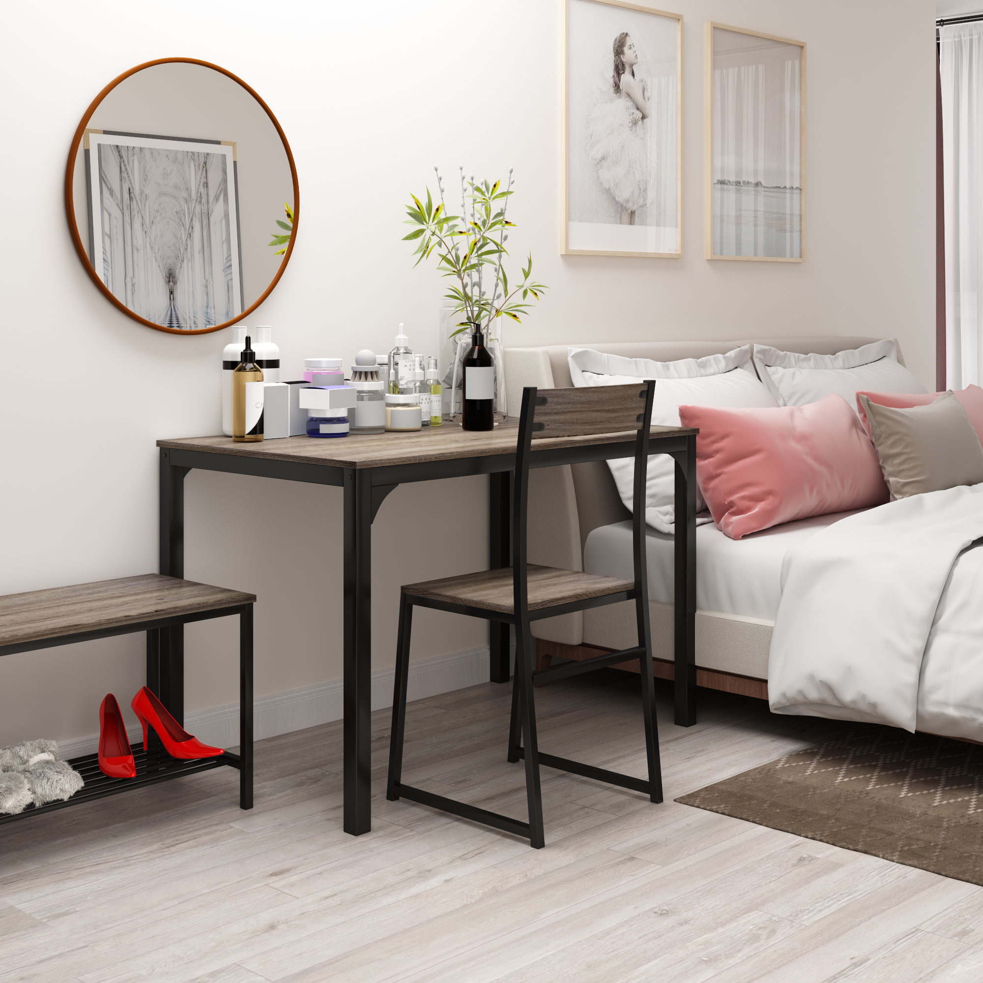 Not only Dining Set---With its suitable size, the table set can be used as not only a dining set but computer desk or vanity table in a workstation or bedroom while dressing up. All of the benches and chairs can be stuck under the table to save space when not in use.