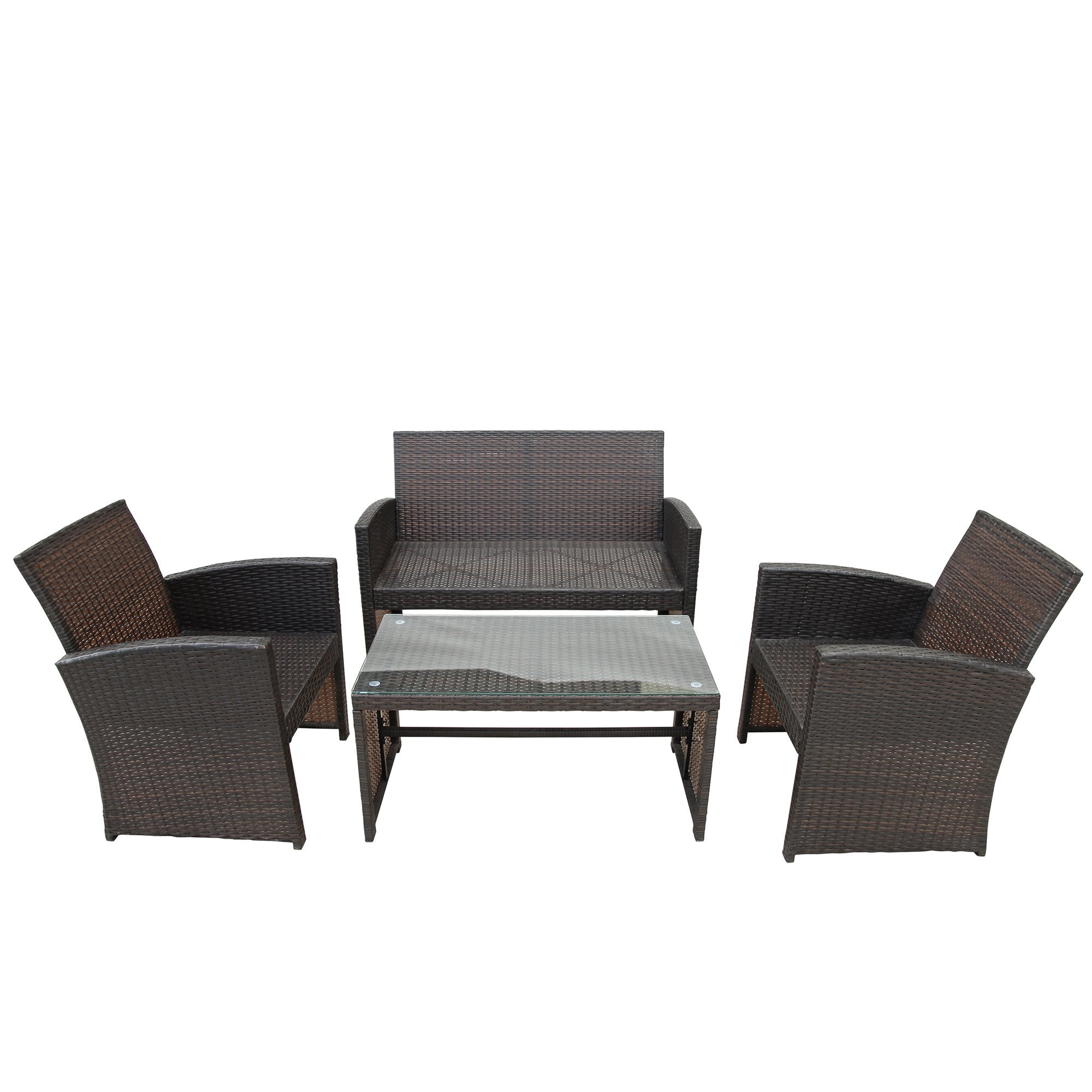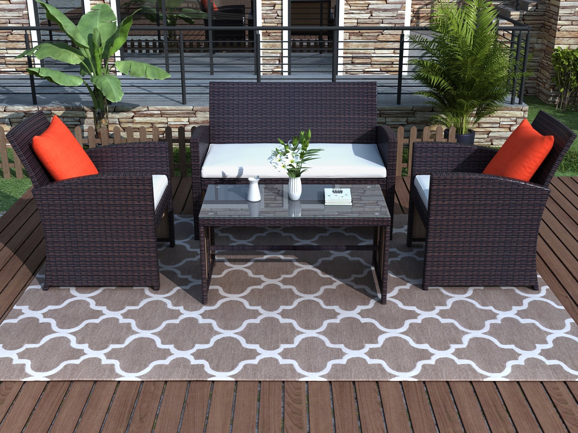 Exceptionally Stunning Outdoor Lounging: Our 4-piece cushioned patio set offers a clean-lined silhouette, contemporary flavor and versatile rattan shades that are a great addition to any home decor. Two chairs, one loveseat and one coffee table are easy to set up and are perfect for gatherings of family or friends.