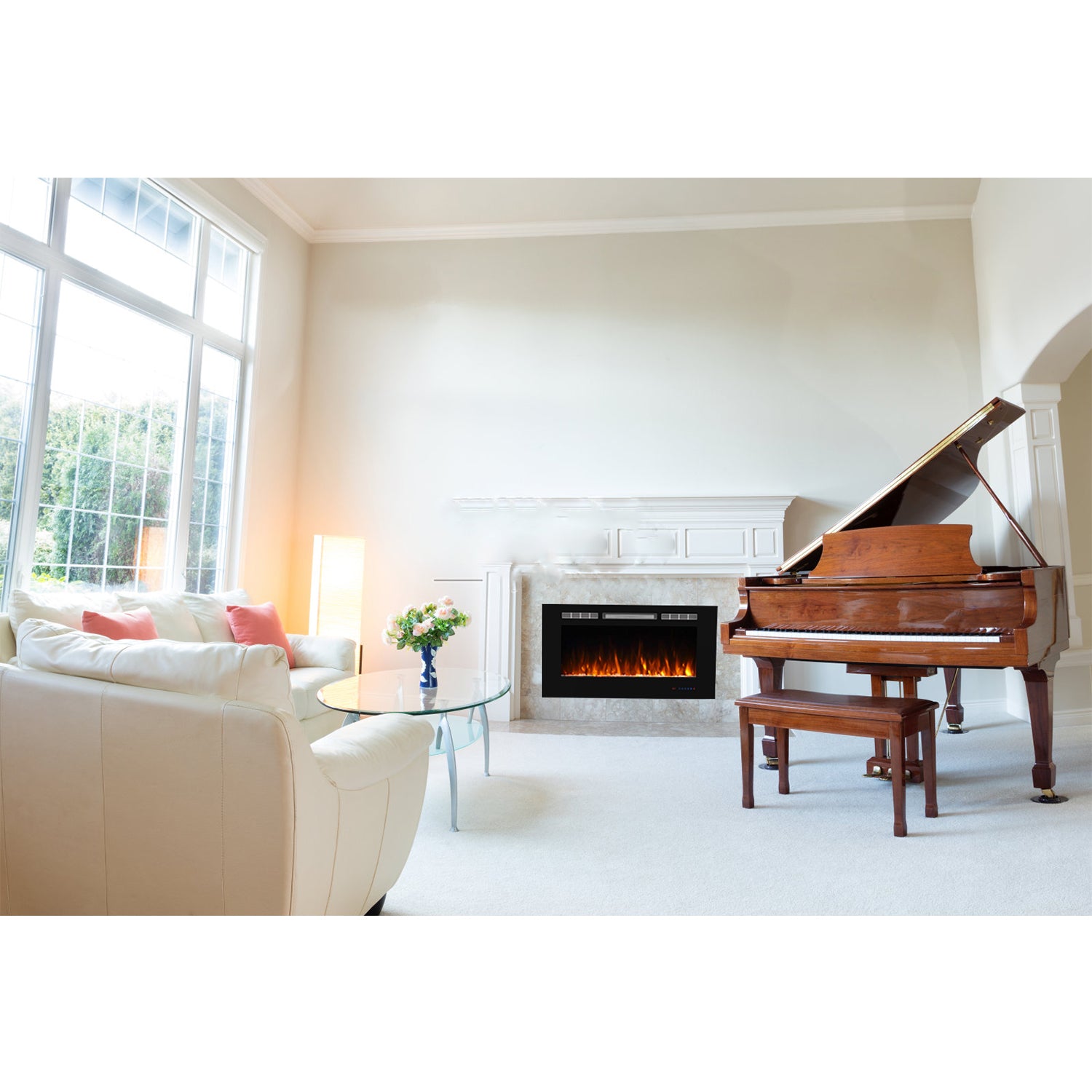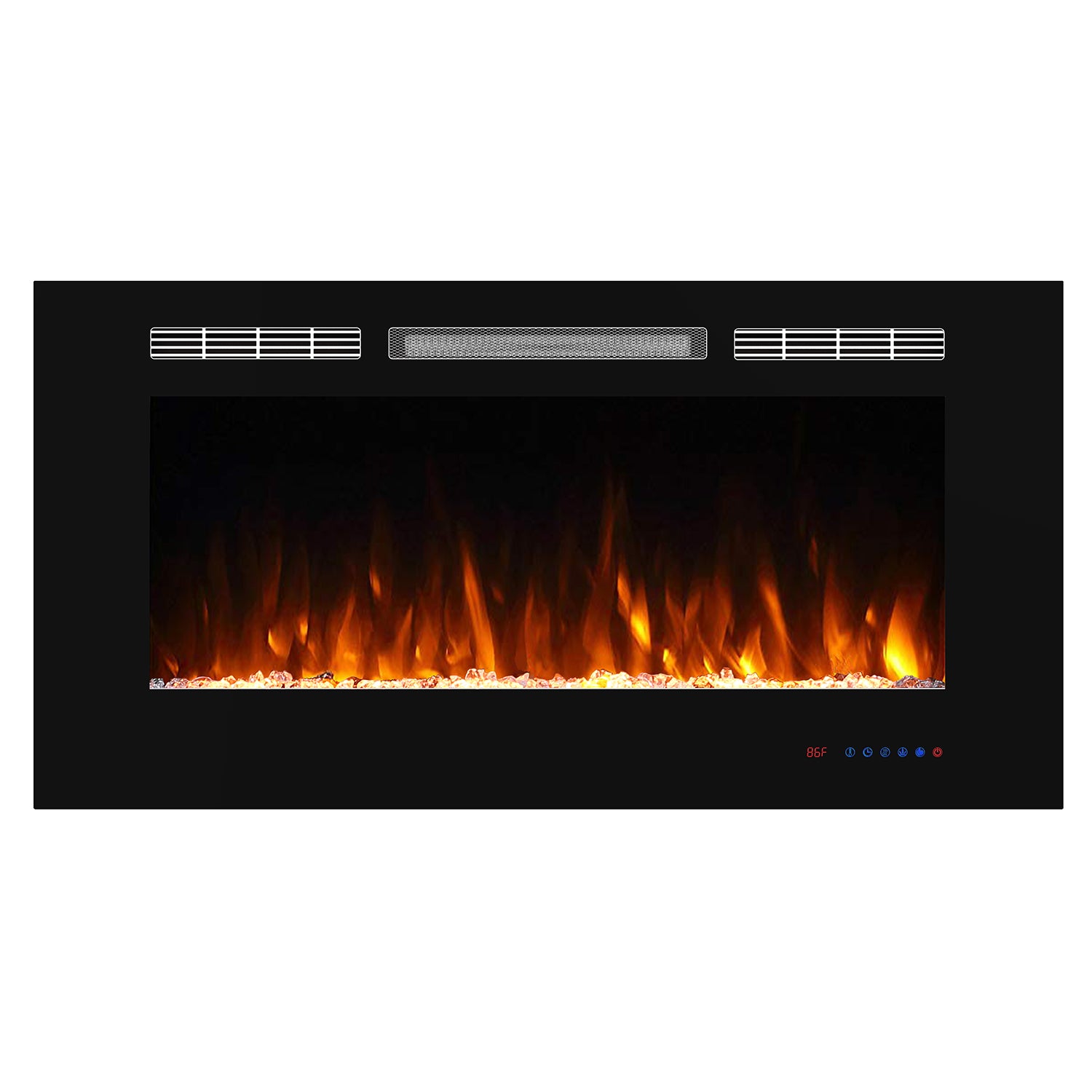 - Fuel bed: faux fire logs and crystals resembles burning coals, creating an authentic feel and look of a traditional fireplace.3 flame colors can be set according to your preference.