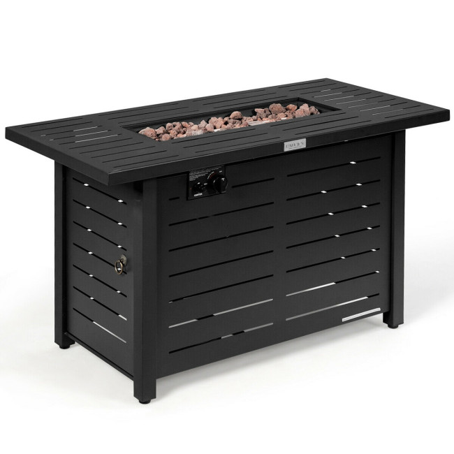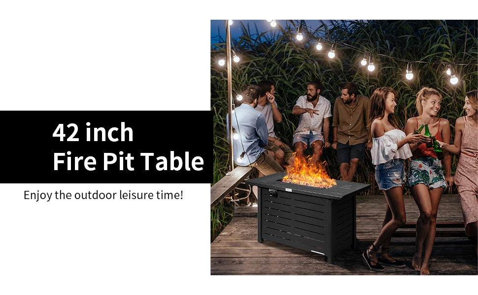 ● Modern Appearance and Dimensions: The stylish appearance with a well-designed surface and lava rock can match with any outdoor furniture, which will be a perfect addition to your outdoor space. Dimension of fire pit table: 42" x 20" x 25" (L x W x H), net weight of fire pit table: 53 lbs. Propane stove capacity: 20 lbs.