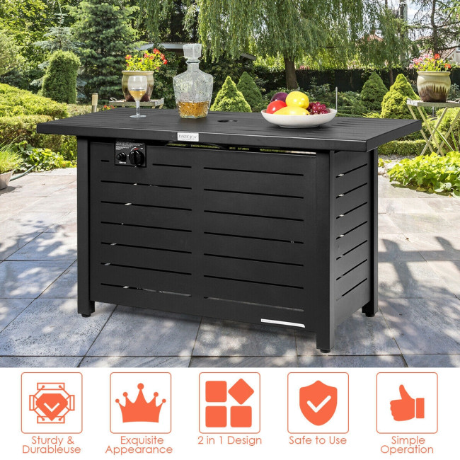 This outdoor fire table is made of sturdy steel material for durability and stability. Coming with a waterproof PVC cover, the table surface will not easy to be damaged and can stand the test of time. And complete with a high-efficiency burner, you can enjoy all the pleasures of a warm fire without worrying about messy ashes. What’s more, the table lid allows you to close the surface top and use it as a normal table. The stylish and simple appearance can perfectly match your garden, courtyard, and terrace. You can have a party or gather with family members even on a cold winter evening.