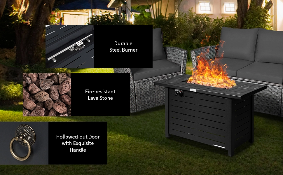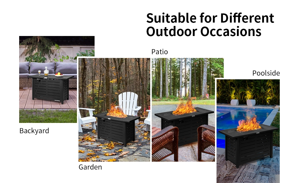 ● Warm and Healthy Bonfire Experience: Complete with a 60,000 BTU stainless steel burner, this fire table provides plenty of warmth for you in the outdoors. Besides, this outdoor fire pit table uses propane gas to support stable and clean-burning, which is both good for the environment and your health.