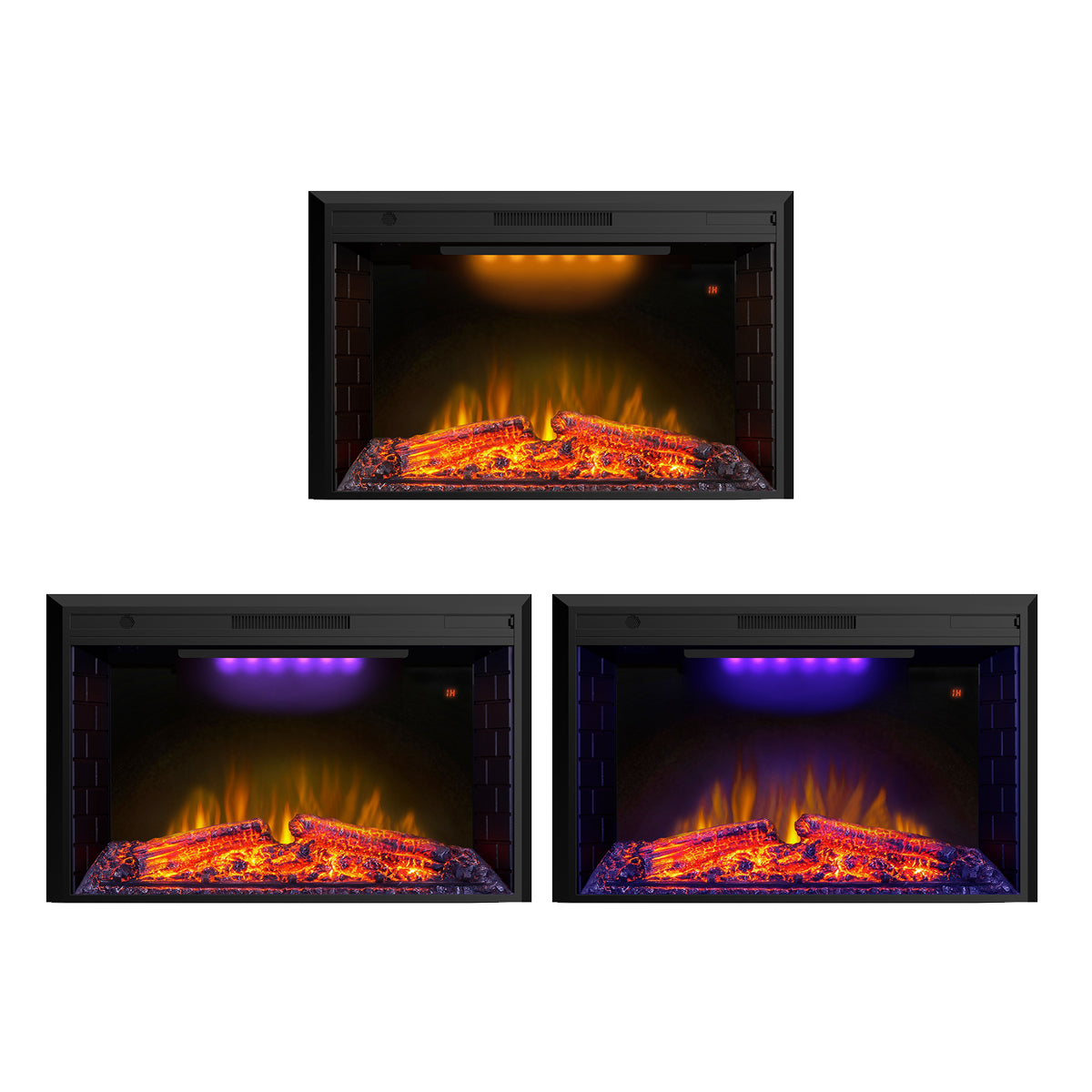 - Fuel bed: faux fire logs and crystals resemble burning coals, creating an authentic feel and look of a traditional fireplace.3 flame colors can be set according to your preference.