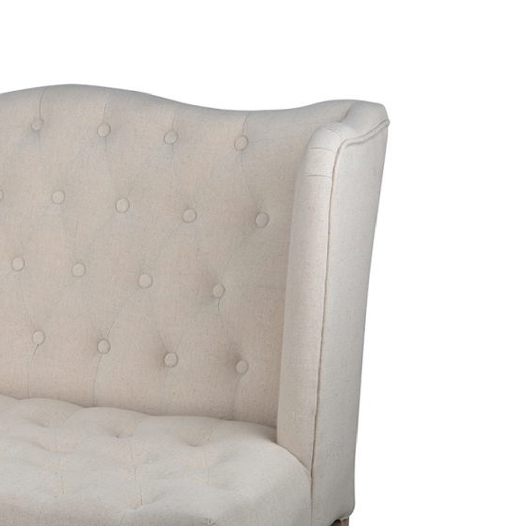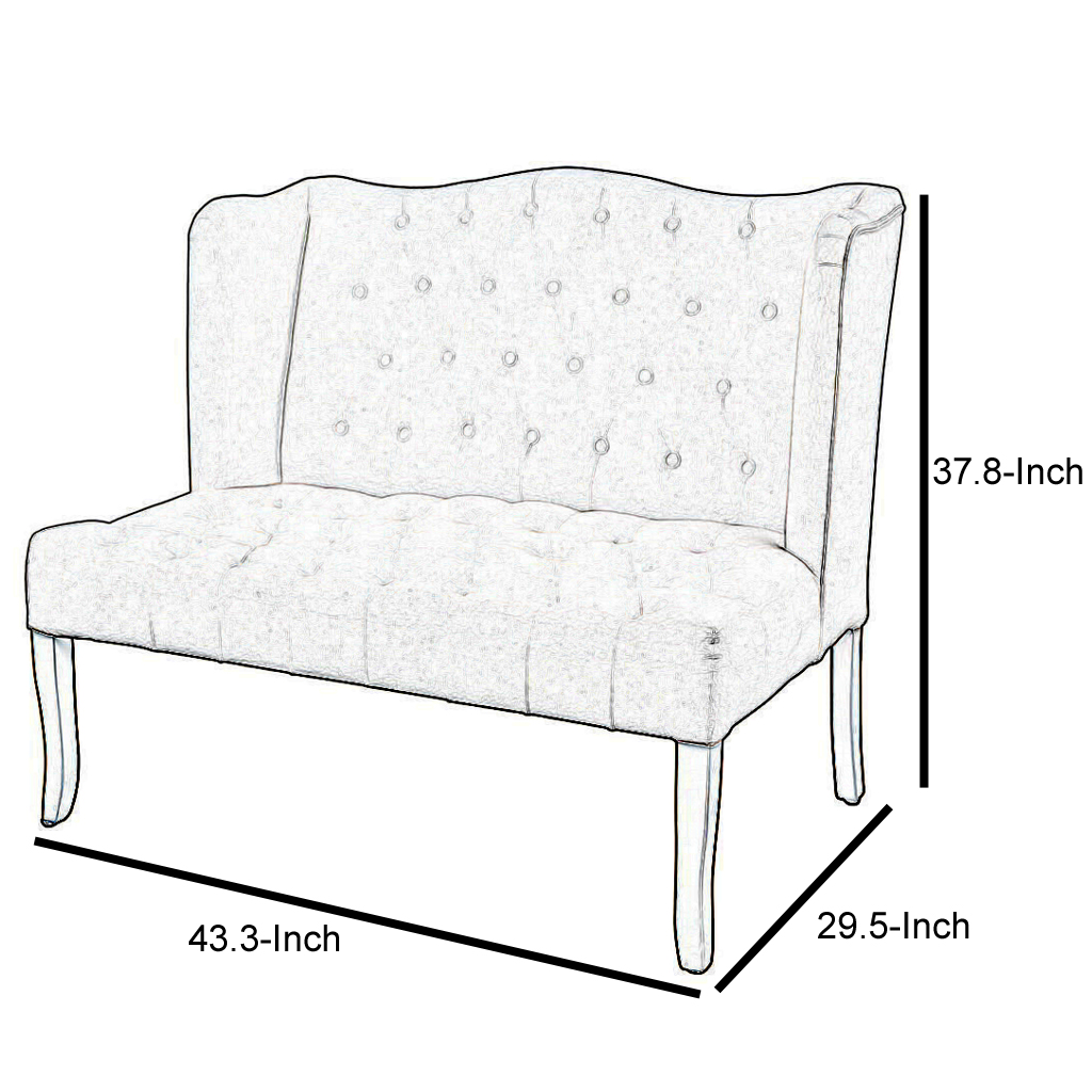 43 Inch Traditional Loveseat, Wingback, Button Tufting, Cream Fabric