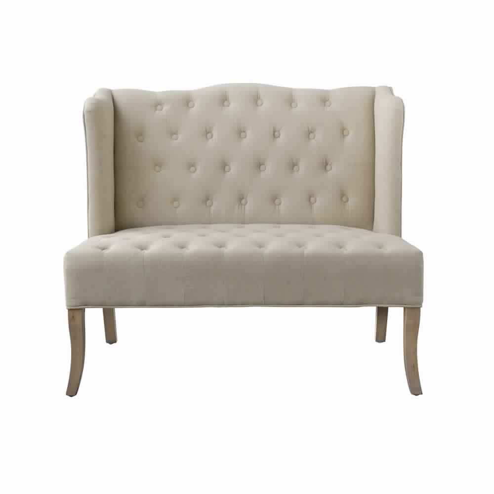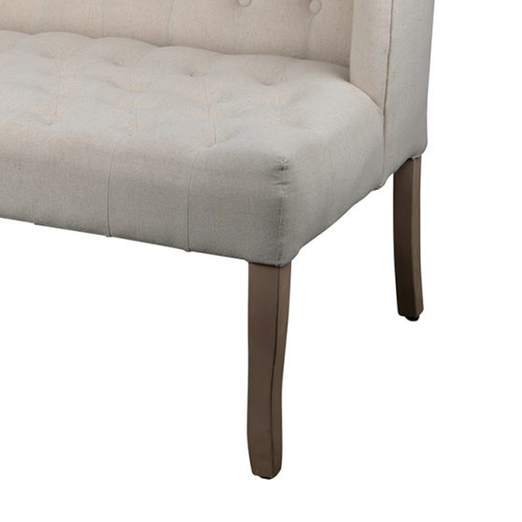 Keeping it decent but poised, this traditional loveseat features a cultured style with tufted buttons on the back and seat. This settee is structured with a high winged back to comfortably rest your back along with slightly curved supporting legs.
