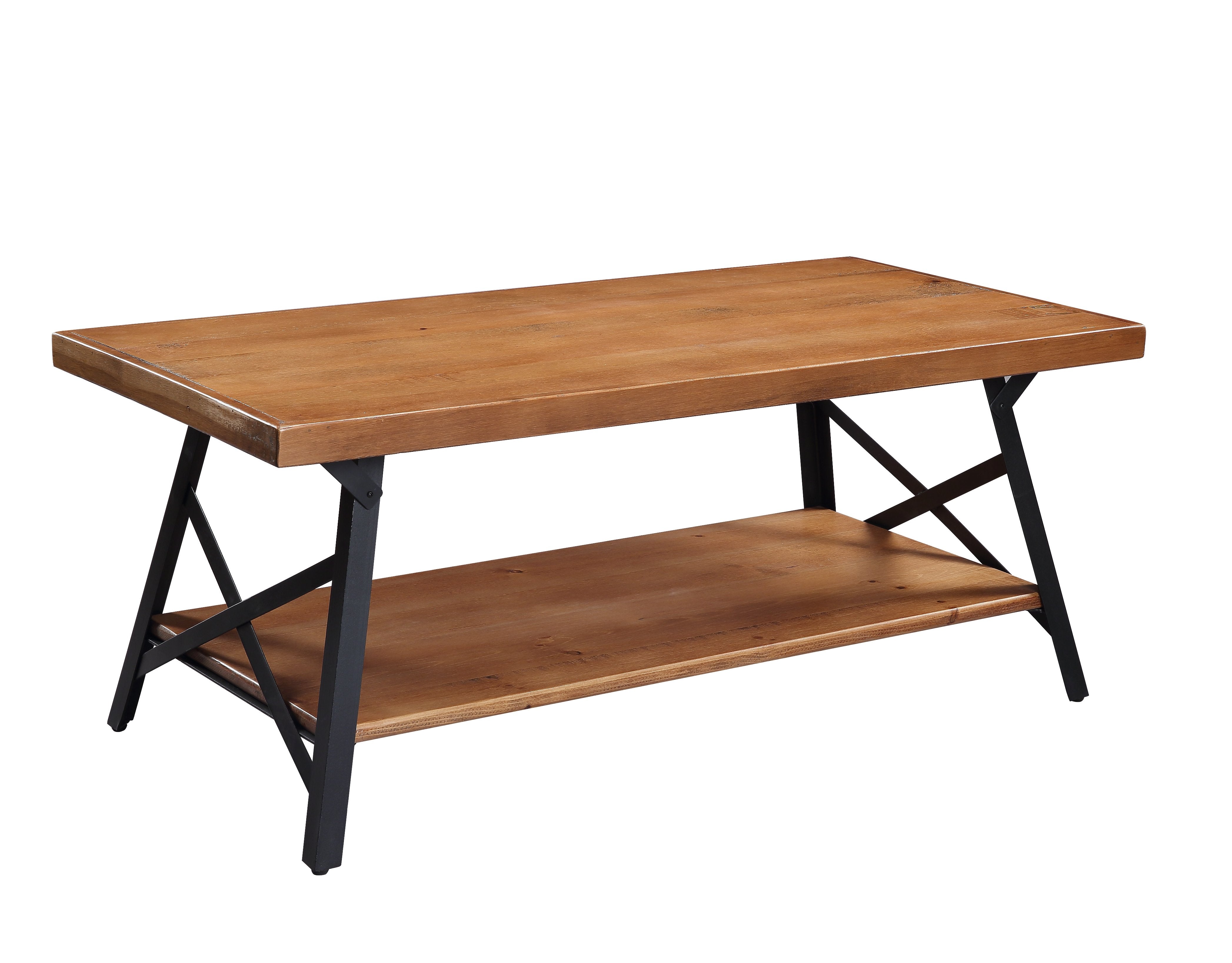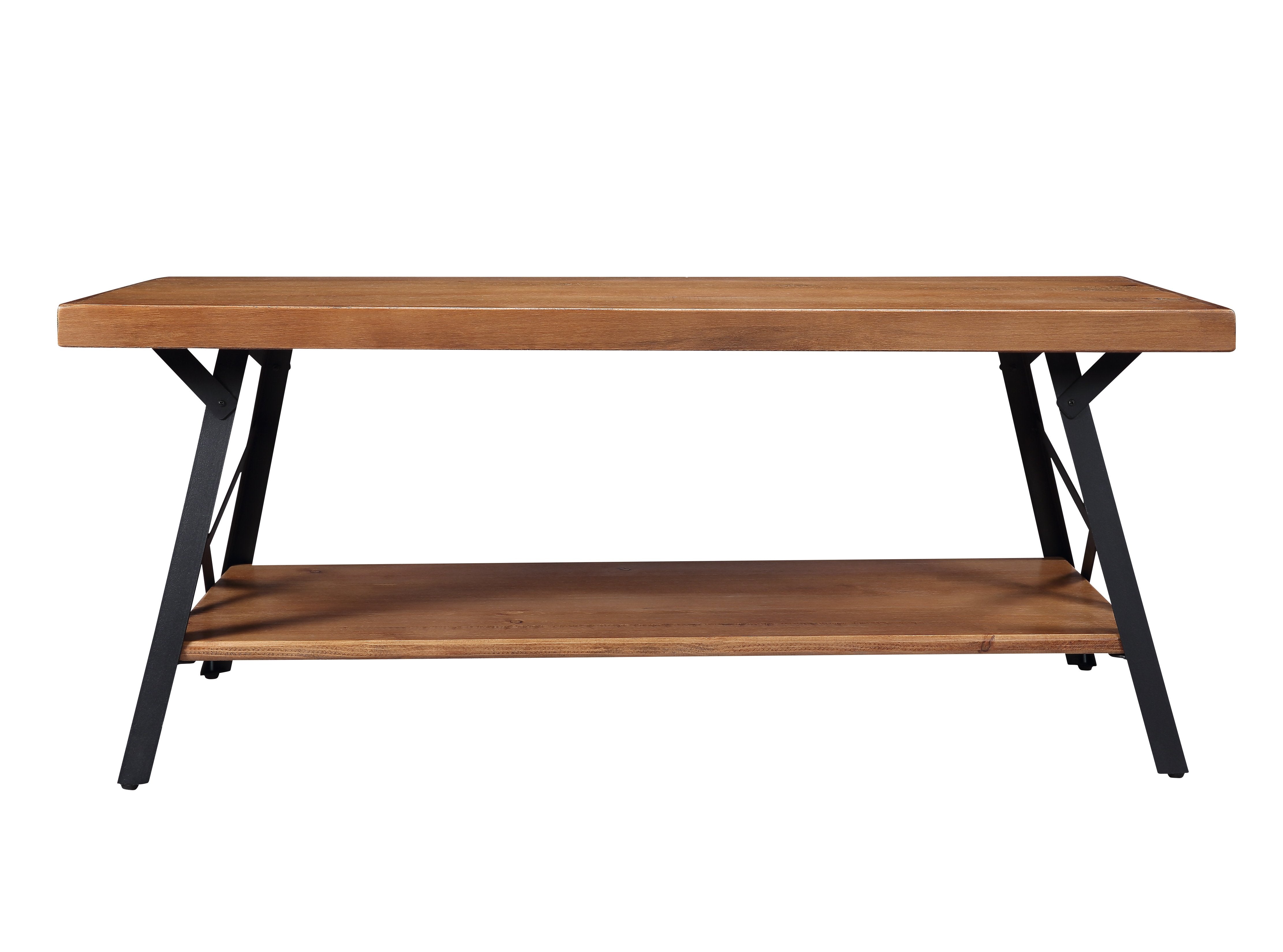 43" Metal Legs Rustic Coffee Table, Solid Wood Tabletop