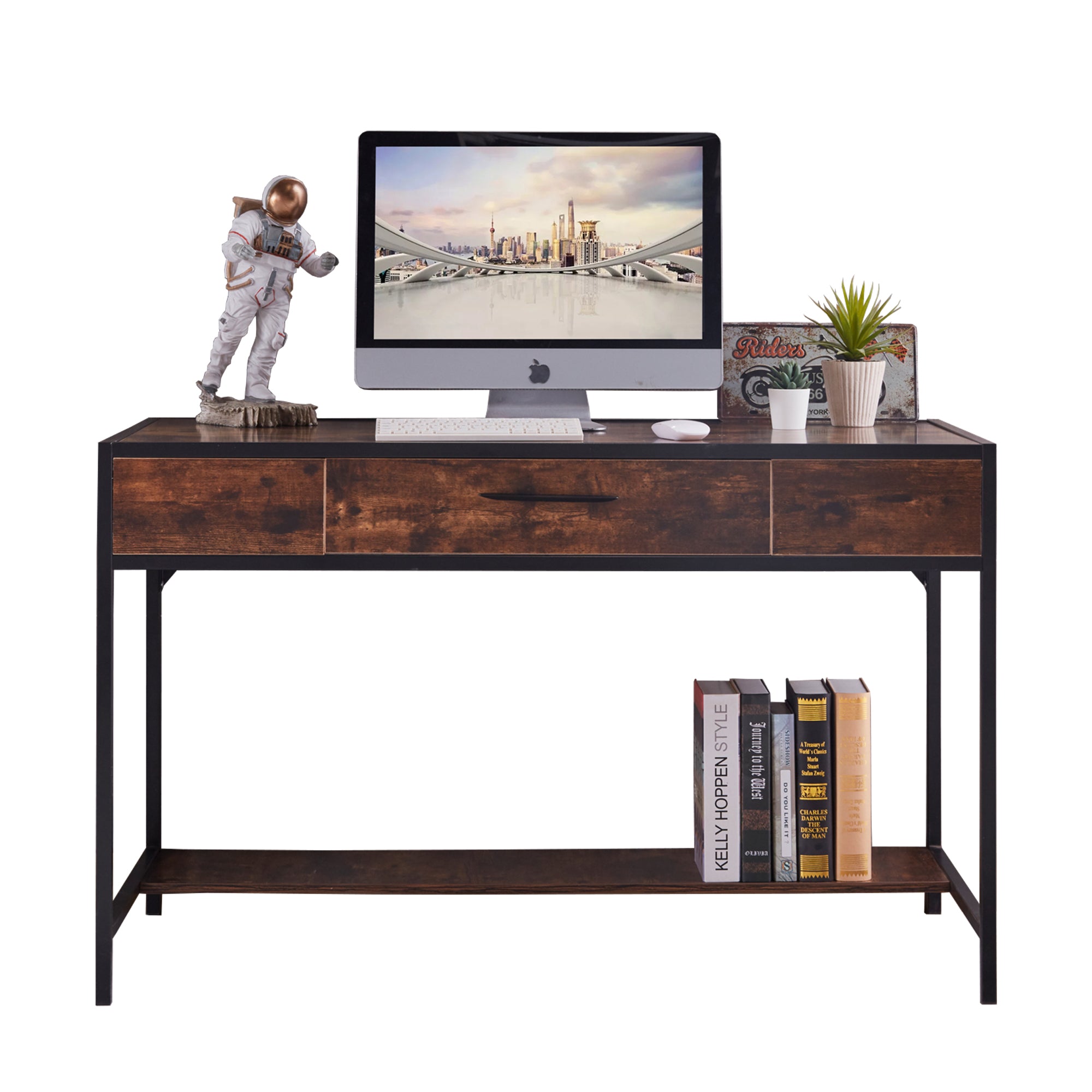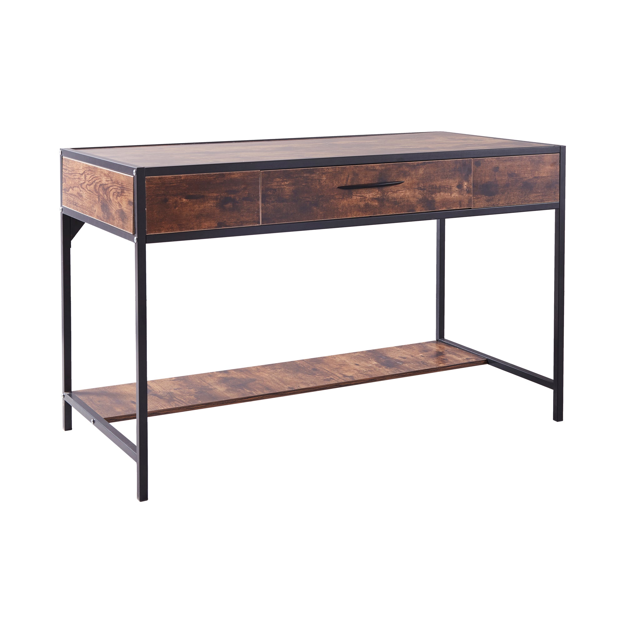 - Rich and easy clean finish: hand-applied durable laminate accent oak brown finish and powder-coated metal hardware easy to clean, sturdy and can be used as a computer desk, learning table, game table, secretarial desk