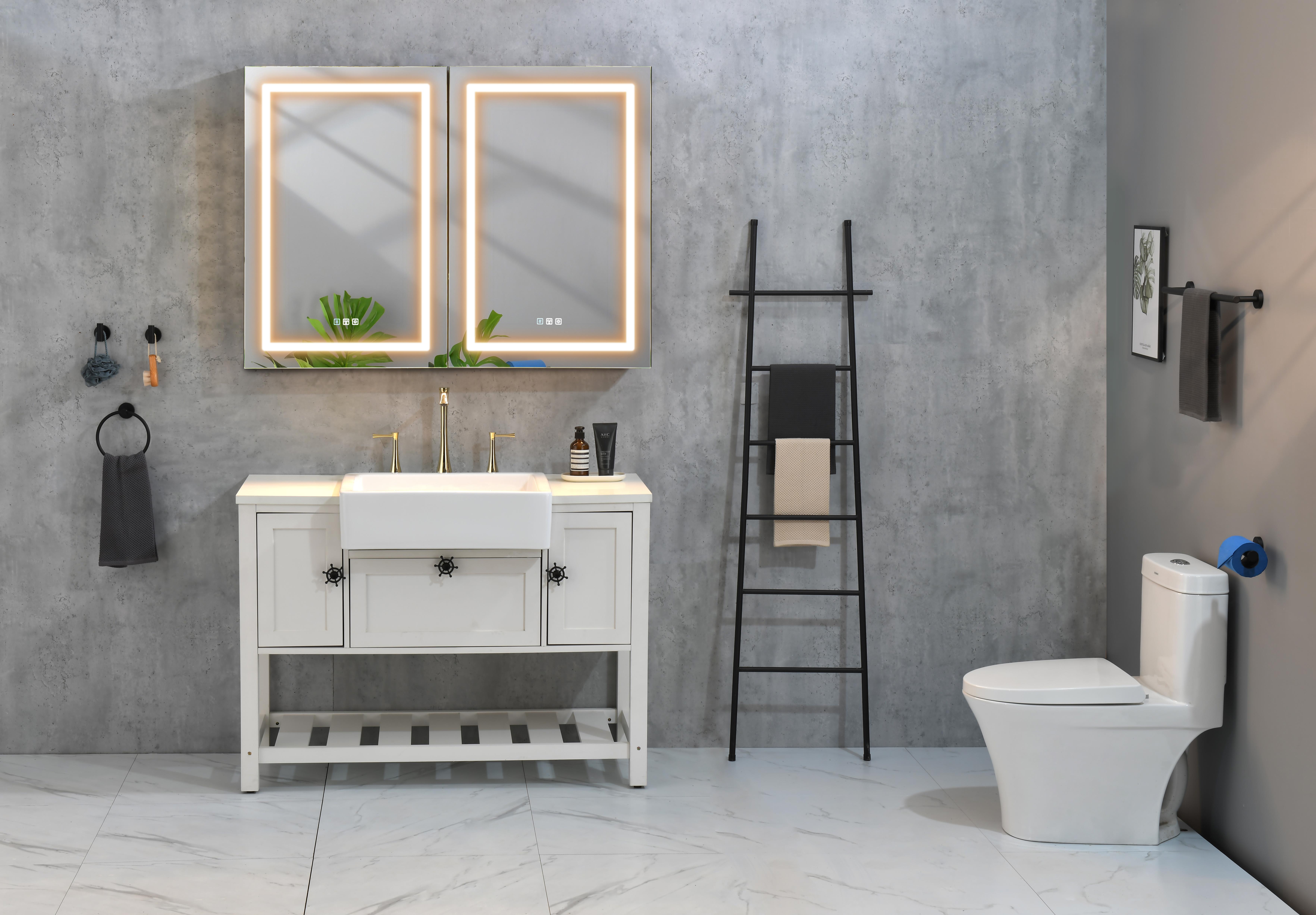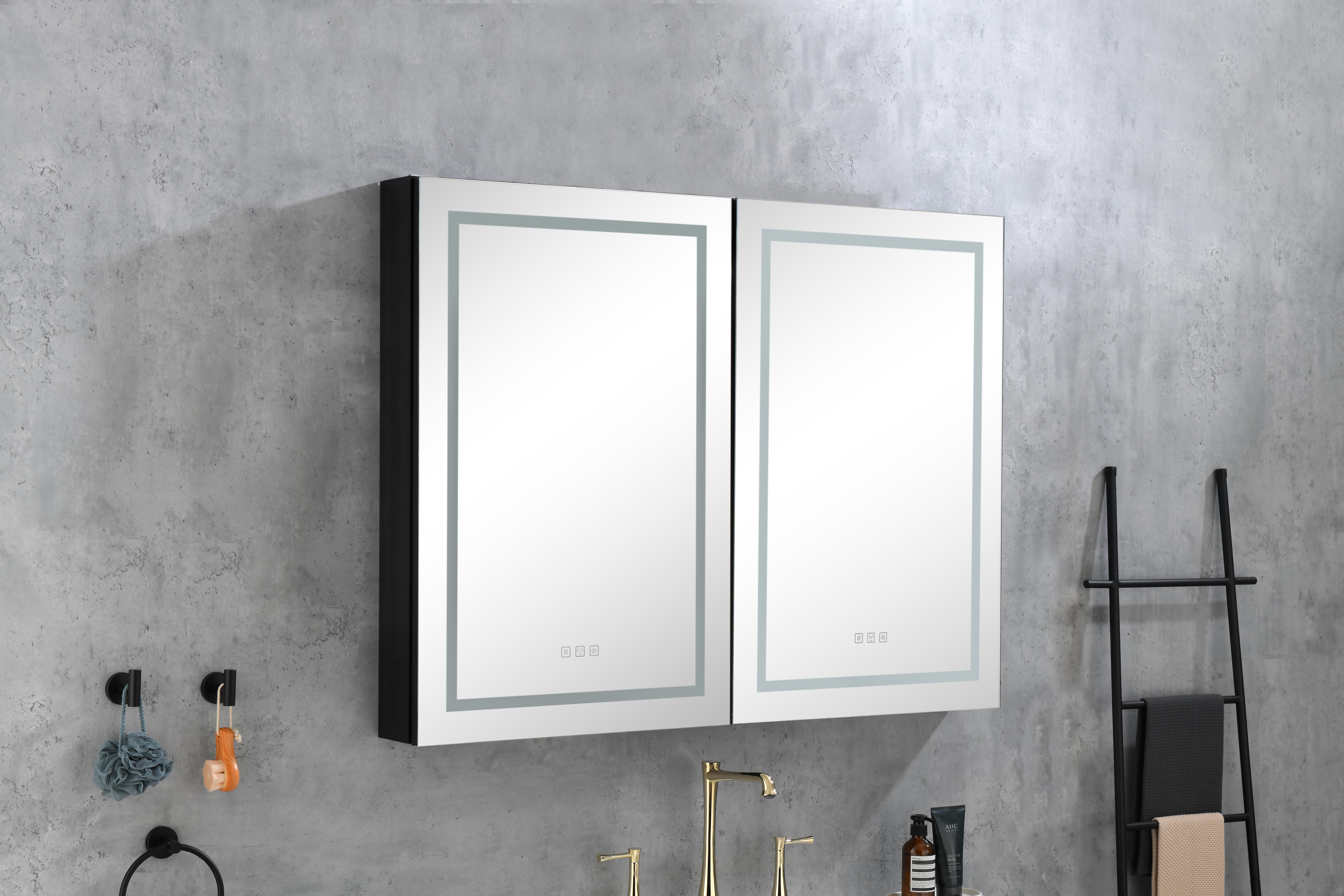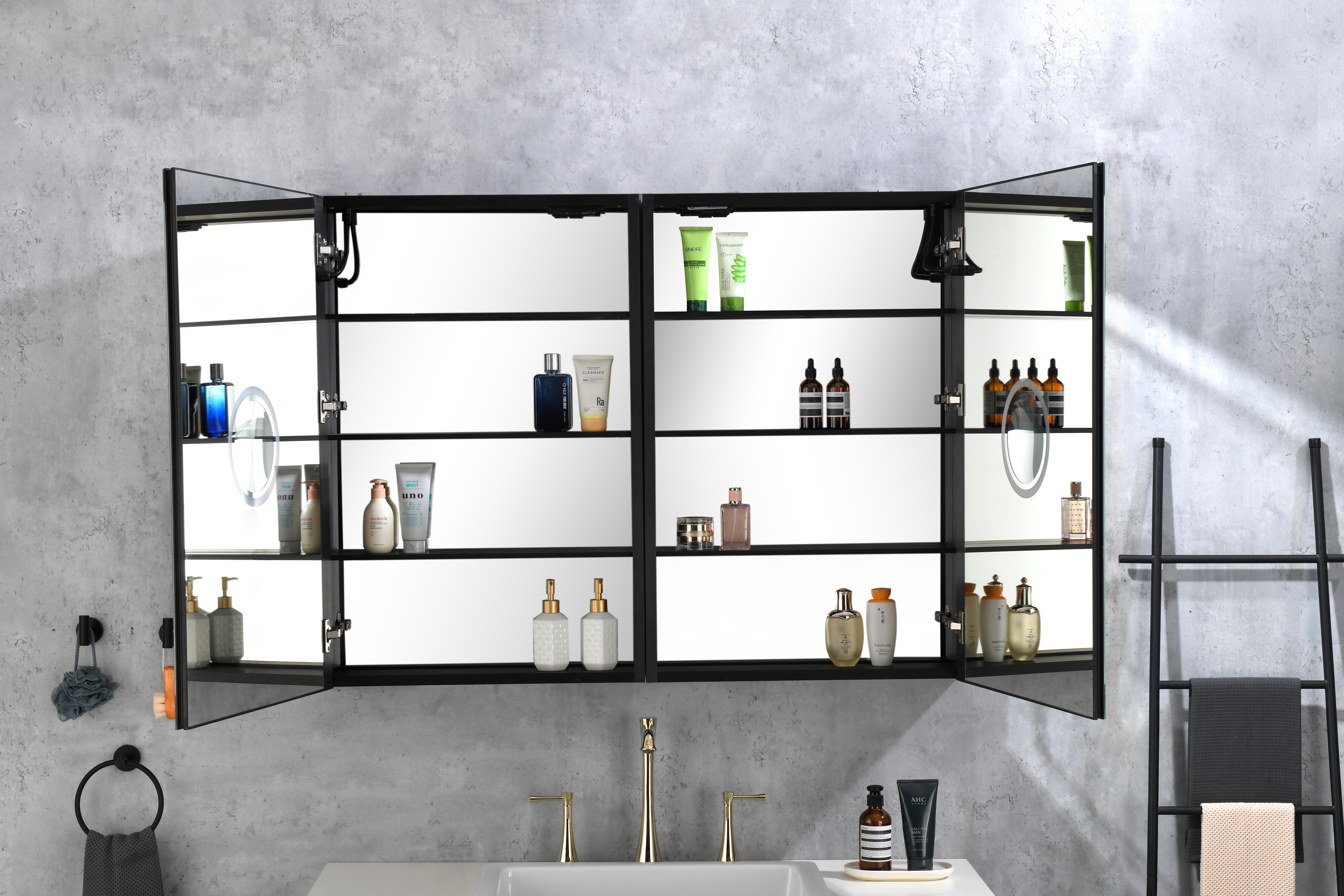 Medicine Cabinets with MirrorsRecessed or Surface Lighted Mirror Medicine Cabinet with Lights, LED Medicine Cabinet w/Defogger, Dimmer, 3X Makeup Mirror, Outlets & USBTHREE SOFT TOUCH SWITCH makes this LED Medicine Cabinet simple and easy to turn ON/OFF, adjust brightness and change color temperature. fogless makeup time is just one touch away. provides you three levels of brightness options: 5%,50%, 100%. COLOR TEMPERATURE ranges from 3000K - 6000K offers you choices of different light colors for different purposes. All these features make it the perfect led mirror medicine cabinet.Mirrors on both sides of the door, interior walls & both side panels, which makes it a bathroom cabinet with mirror on all sides.Three medicine cabinet shelf.Built-in 20Amp dual outlet and USB 2.0 port for phone or shavers charging inside this bathroom mirror medicine cabinet.3 TIMES AMPLIFY MIRROR makes it super easy for makeup tasks. and convenience to your bathroom.Smart memory function remembers your favorite setting, no need to adjust every time you turn on the mirror.CRI 90+ light source reproduces high-quality task lights perfect for making up. 5 mm COPPER FREE silver medicine cabinet mirror prevents black edges in the harsh bathroom environment.Guaranteed 50,000 hours lifetimes and 100,000 times switch touch.High-end hardware brandsoft close hinges and provides strong support for large medicine cabinet. rated Anodized Aluminum Frame for extra durability. Scratch-free painting finish. Grooved door edges and corners for safe use.48*30Inch bathroom medicine cabinet recessed or surfaced.Surface mount medicine cabinet, recessed medicine cabinet with lights and outlet. PLEASE BE AWARE, any LED medicine cabinet on the market cannot be served as the only lighting power source, additional lighting source may be necessary.