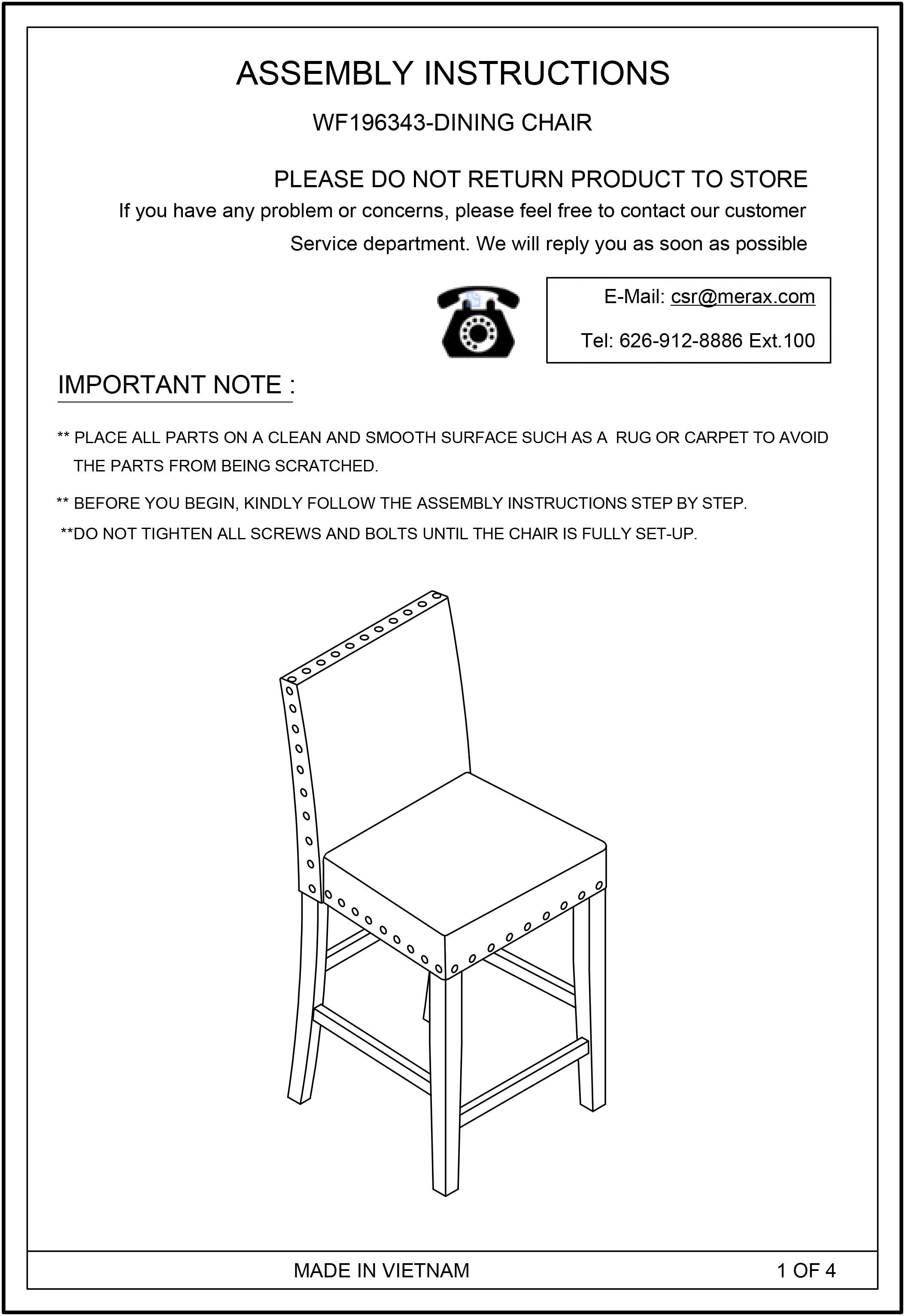 Easy assembly with clear instructions included. If you have any questions, comments or concerns, please feel free to contact our customer service team.