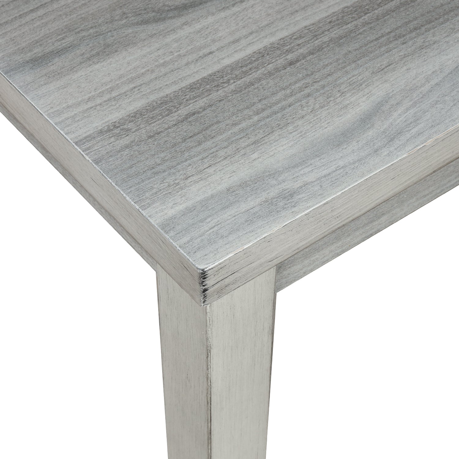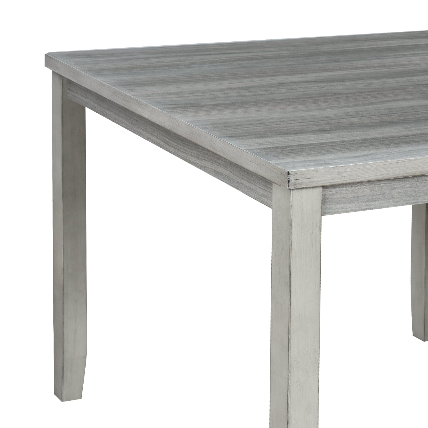 Classic gray tones effortlessly compliment the distressed wood grain surface detailing for a unique vintage look that will add a homey feel perfect for a dining room, restaurant or bistro. Wood surface has been lacquered and smoothed to perfection with a natural matte finish