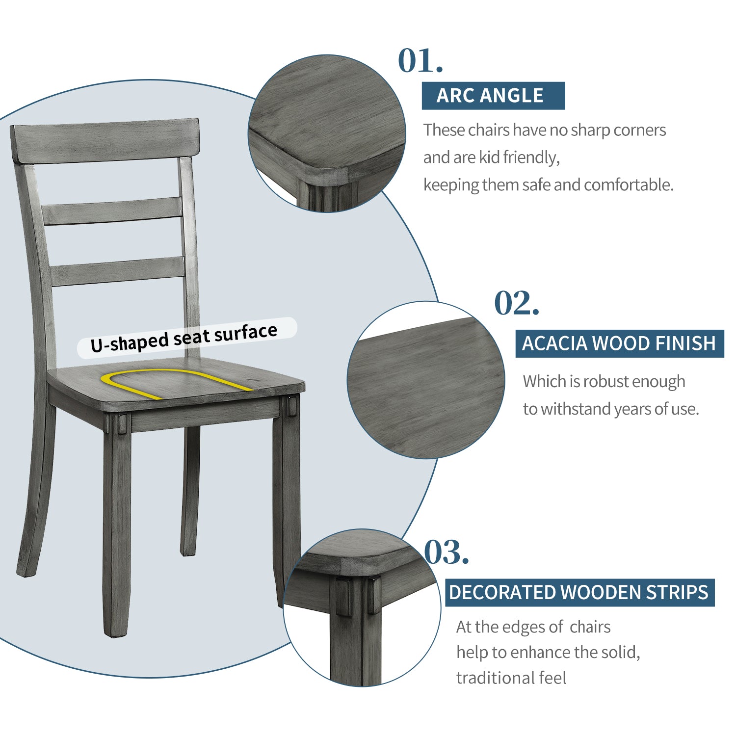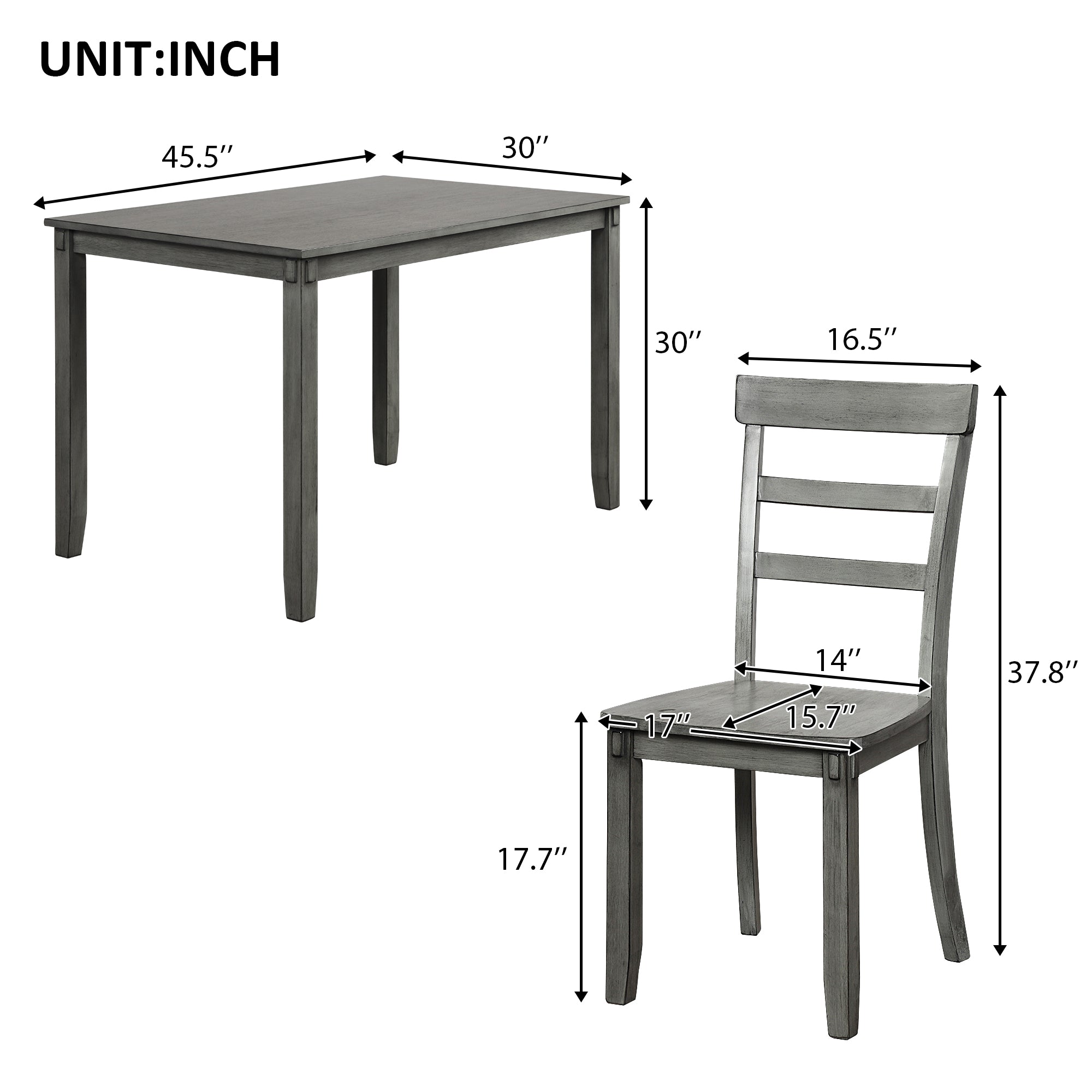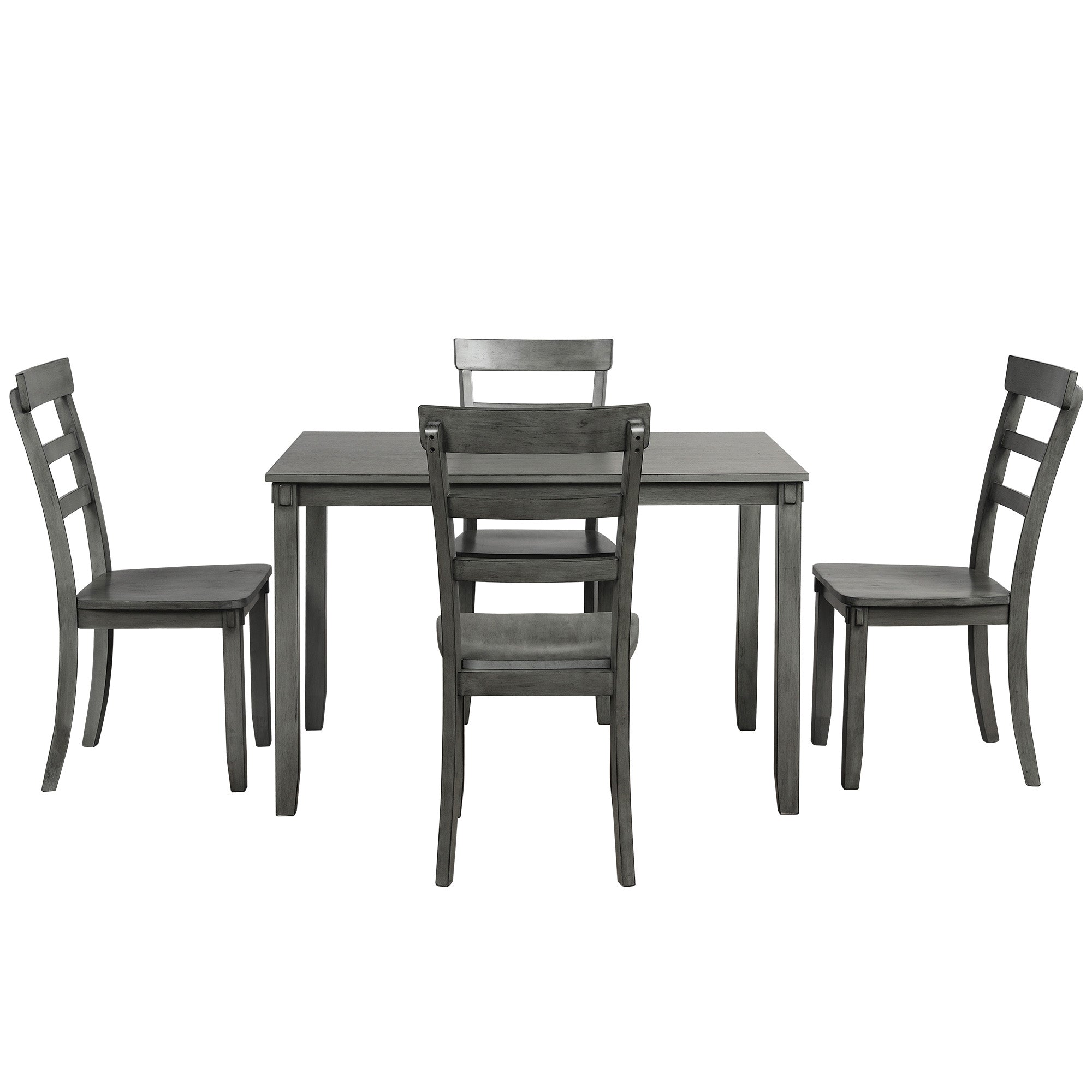 5-piece Kitchen Dining Table Set Wood Table and Chairs Set (Grey)